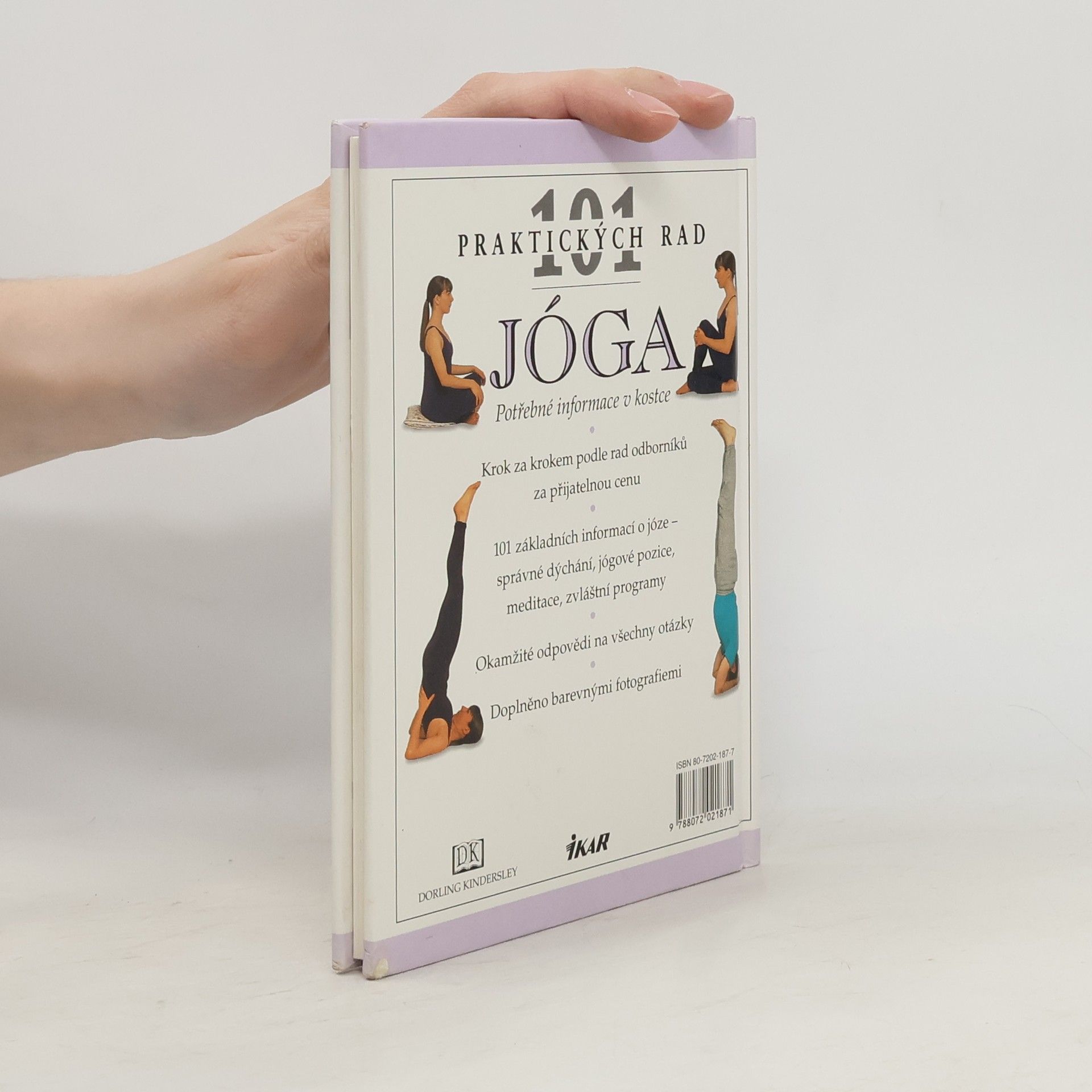 Přehledně zpracované informace v kostce, návody krok za krokem, názorné barevné fotografie ke každému cviku, nauka správného dýchání, jógové pozice, meditace, zvláštní programy atd.