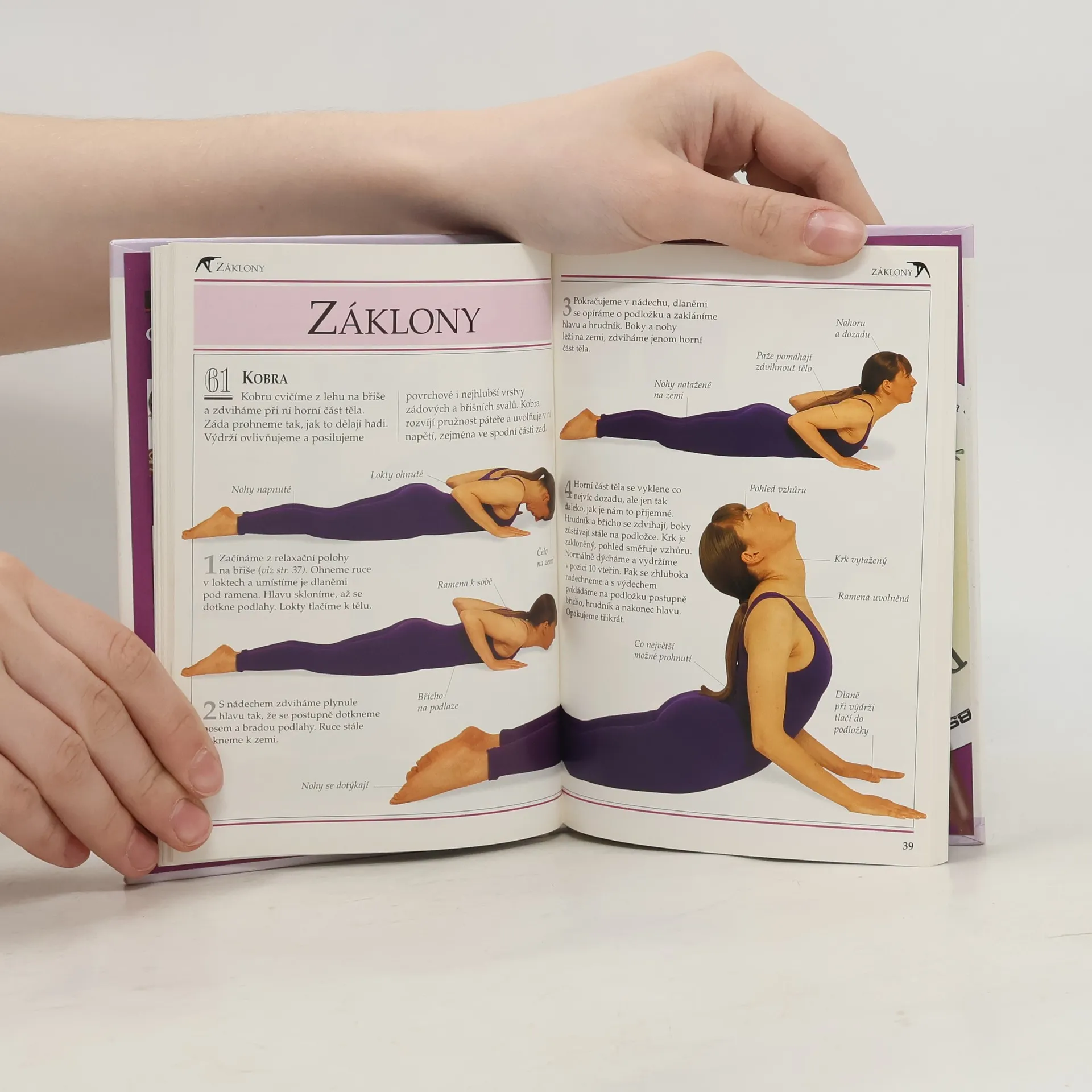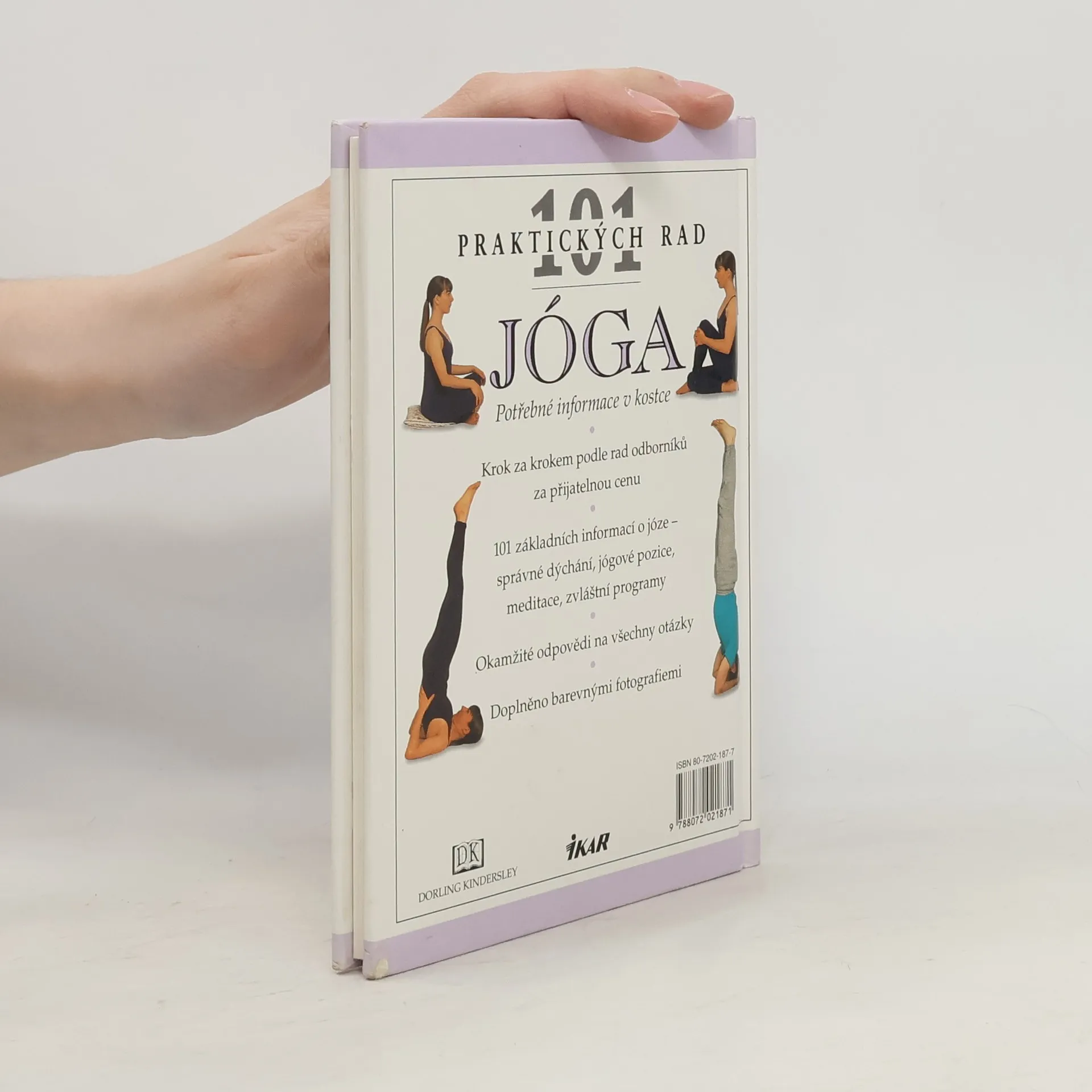 Přehledně zpracované informace v kostce, návody krok za krokem, názorné barevné fotografie ke každému cviku, nauka správného dýchání, jógové pozice, meditace, zvláštní programy atd.