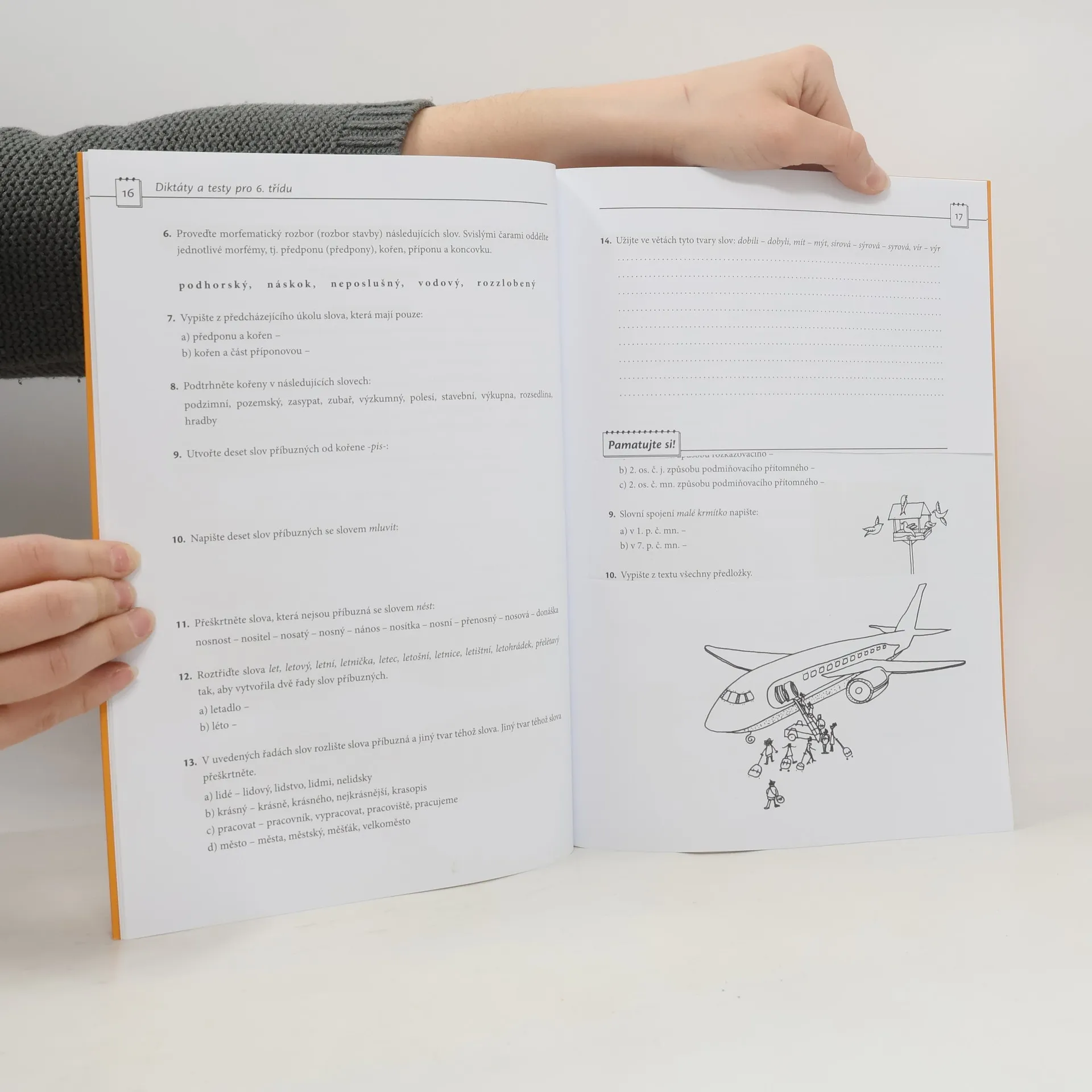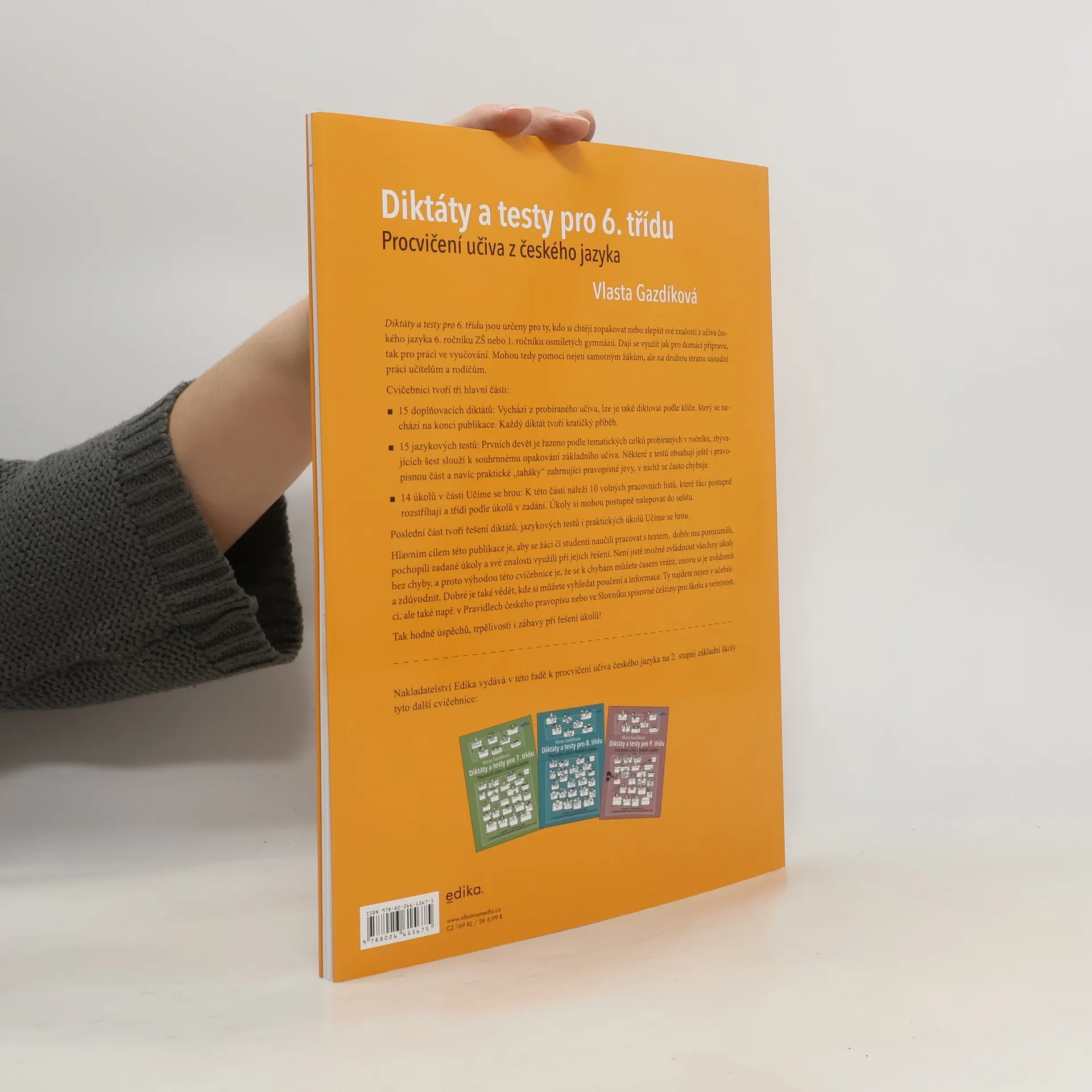 Cvičebnice je určena žákům 6. ročníku ZŠ a 1. ročníku osmiletých gymnázií, kteří si chtějí zopakovat nebo zlepšit znalosti českého jazyka. Lze ji využít jak pro domácí přípravu, tak pro práci ve vyučování. Cvičebnici tvoří 3 hlavní části: 15 doplňovacích diktátů, 15 jazykových testů (prvních devět je řazeno podle tematických celků probíraných v 6. ročníku, zbytek slouží k souhrnnému opakování učiva) 14 úkolů na volných pracovních listech.Na konci je řešení diktátů, jazykových testů i praktických úkolů.