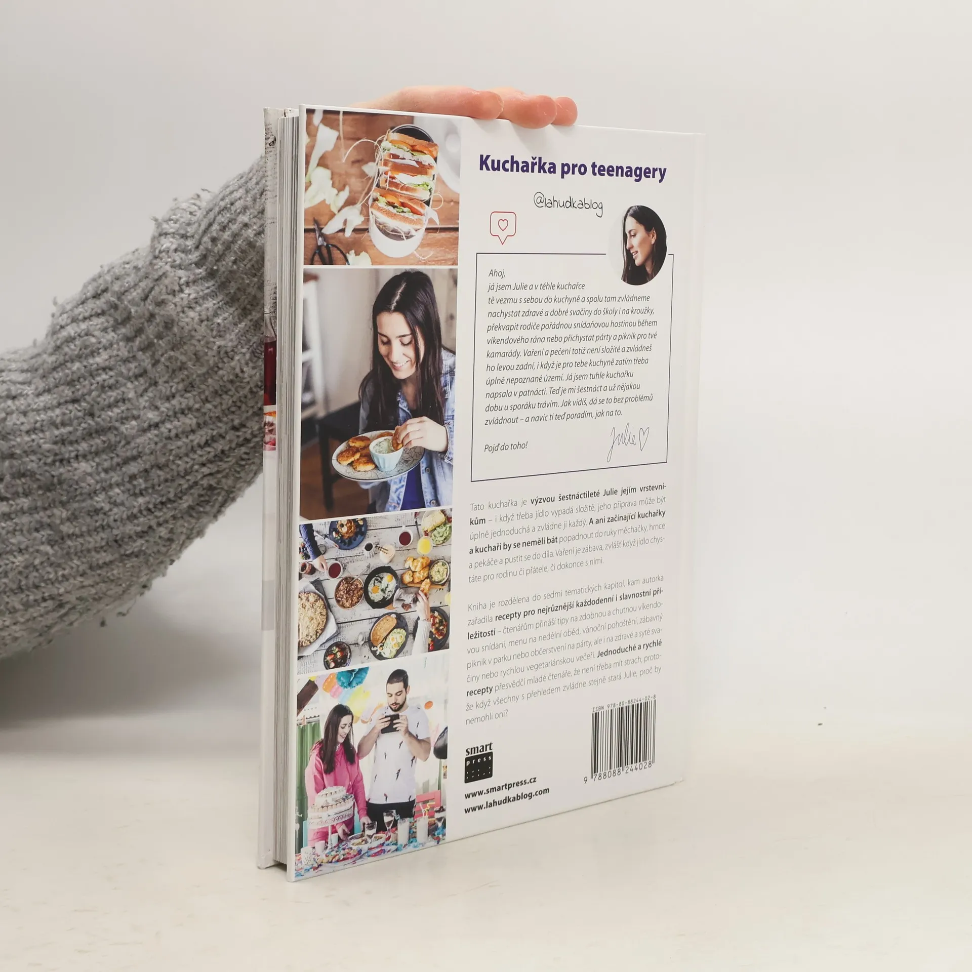 Tato kniha může být báječným dárkem ke Dni dětí, za vysvědčení či k Vánocům. Kuchařka pro teenagery je výzvou šestnáctileté Julie jejím vrstevníkům – i když třeba jídlo vypadá složitě, jeho příprava může být úplně jednoduchá a zvládne ji každý. A ani začínající kuchařky a kuchaři by se neměli bát popadnout do ruky měchačky, hrnce a pekáče a pustit se do díla. Vaření je zábava, zvlášť když jídlo chystáte pro rodinu či přátele, či dokonce s nimi. Kniha je rozdělena do sedmi tematických kapitol, kam autorka zařadila recepty pro nejrůznější každodenní i slavnostní příležitosti – čtenářům přináší tipy na zdobnou a chutnou víkendovou snídani, menu na nedělní oběd, vánoční pohoštění, zábavný piknik v parku nebo občerstvení na párty, ale i na zdravé a syté svačiny nebo rychlou vegetariánskou večeři. Jednoduché a rychlé recepty přesvědčí mladé čtenáře, že není třeba mít strach, protože když všechny s přehledem zvládne stejně stará Julie, proč by nemohli oni?