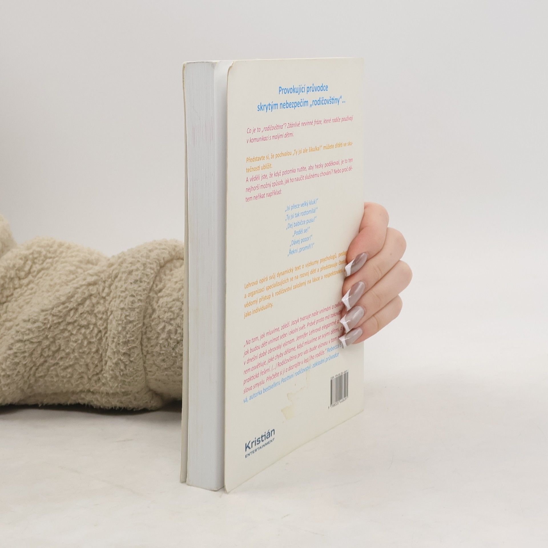 Co je to ,,rodičovština"? Zdánlivě nevinné fráze, které rodiče používají v komunikaci s malými dětmi. Představte si, že pochvalou ,,To se ti moc povedlo"! můžete dítěti ve skutečnosti ublížit. A věděli jste, že když potomka nutíte, aby hezky poděkoval, je to ten nejhorší možný způsob, jak ho naučit slušnému chování? Jennifer Lehrová je chytrá, vtipná a nebojácná autorka, která ,,převrátí vzhůru nohama všechny vaše zažité představy o rodičovství." ( Jennifer Jason Leighová). Lehrová opírá svůj dynamický text o výzkumy psychologů, pedagogů a organizací specializujících se na rozvoj dětí a představuje čtenářům vědomý přístup k rodičovství založený na lásce a respektování dítěte jako individuality.