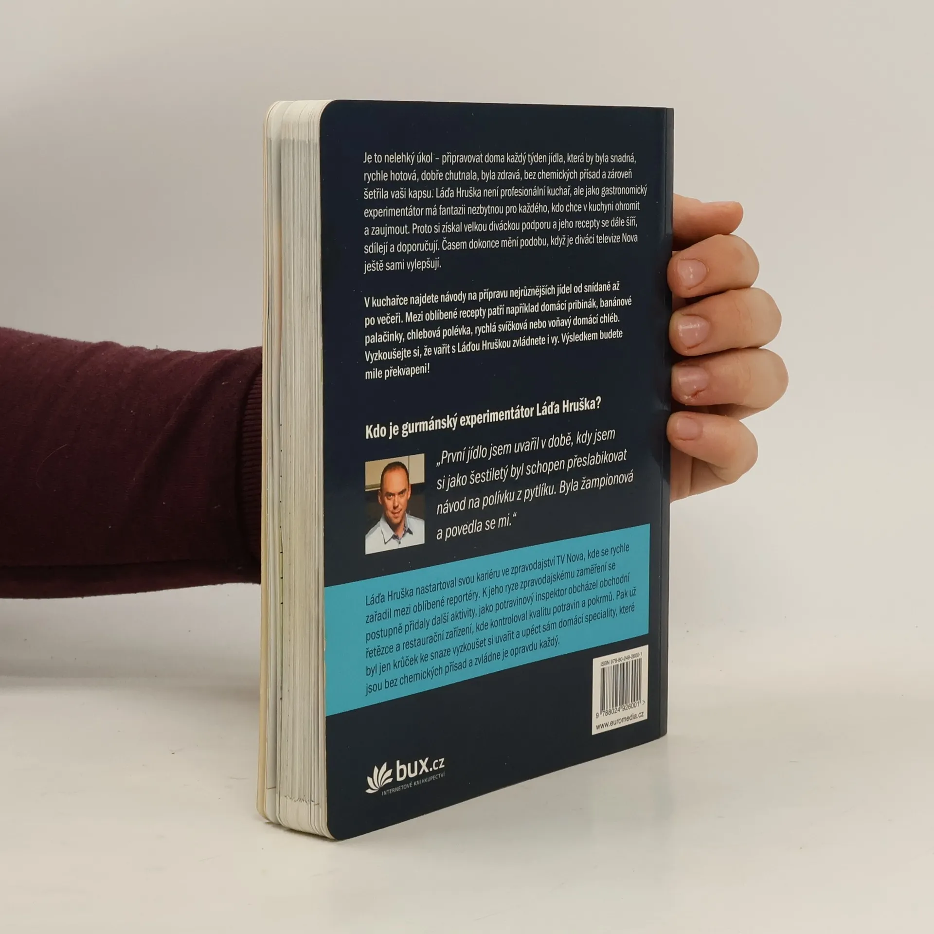 Populární potravinový inspektor a reportér TV NOVA Láďa Hruška se proslavil jako kuchař, který ukazuje, že vařit se dá levně a chutně. Sestavil sbírku unikátních a jednoduchých receptů na domácí pečivo, mléčné výrobky, polévky, hlavní jídla, dezerty a další dobroty za pár korun. Zkuste například domácí loupák s jahodovou marmeládou na snídani, pizzu z pomazánkového másla na oběd nebo nugátové croissanty ke kávě. Recepty zahrnují čerstvé pečivo pro celý den, dezerty a moučníky, dobroty k televizi, slaná i sladká hlavní jídla pro začátečníky i gurmány, mléčné výrobky, polévky a zmrzliny. Mezi recepty najdete Bábovku do hrnku, Banánové sušenky, Domácí chleba, Domácí jogurt, Fitness banánové palačinky, Kuřecí křídla jako z fastfoodu, Pizza z pomazánkového másla, Rychlou svíčkovou a mnoho dalších. Každý si zde najde inspiraci pro chutné a levné vaření, které potěší nejen chuťové buňky, ale i peněženku.
