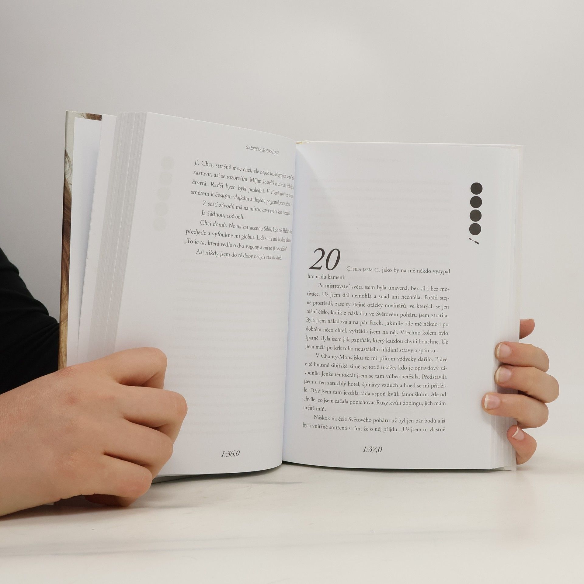 Zažila slávu, úspěchy, medaile. Ale taky spoustu okamžiků, o kterých dosud nikomu neřekla. O některých proto, že se bála, o dalších proto, že se styděla. Teď je Gabriela Koukalová poprvé odhaluje ve své biografii. Vychází sportovní i osobní zpověď nejlepší biatlonistky naší historie. Mistryně světa, olympijské medailistky, vítězky Světového poháru. Kniha je psaná autenticky v první osobě a odhaluje zákulisí tréninkové dřiny, nejdůležitějších závodů i mysli vrcholové sportovkyně v těch nejvypjatějších momentech. Gabriela jde ve svých pocitech na dřeň. Popisuje nejen velké výhry, ale i to, co se skrývá za nimi. Třeba desítky probrečených nocí, spory s rodiči a trenéry, ne vždy ideální atmosféra v týmu nebo těžká nemoc, kterou před světem dlouho tajila… Součástí knihy jsou i dosud nezveřejněné fotografie.