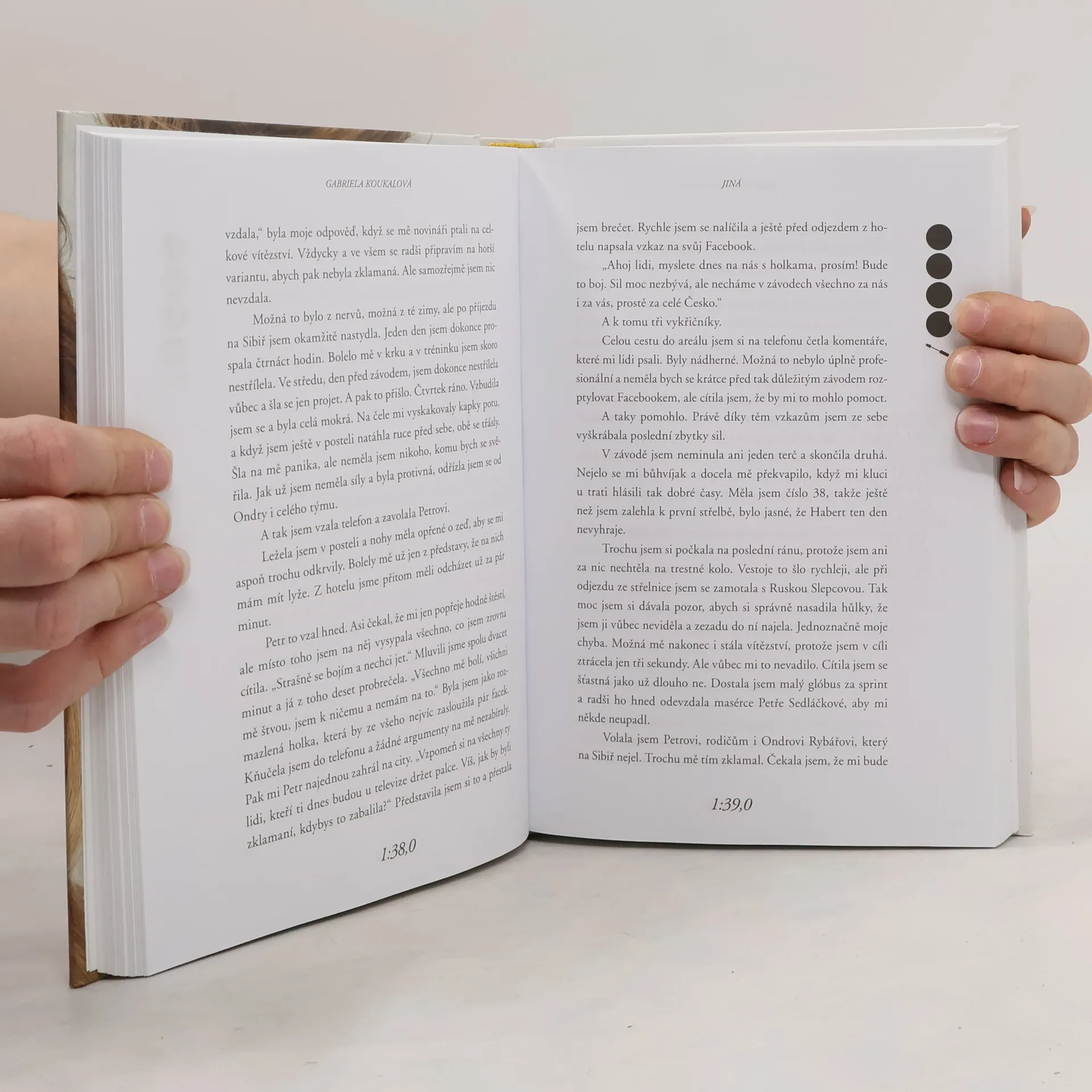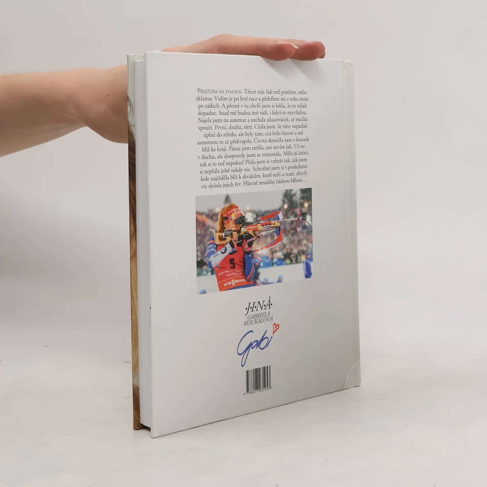 Zažila slávu, úspěchy, medaile. Ale taky spoustu okamžiků, o kterých dosud nikomu neřekla. O některých proto, že se bála, o dalších proto, že se styděla. Teď je Gabriela Koukalová poprvé odhaluje ve své biografii. Vychází sportovní i osobní zpověď nejlepší biatlonistky naší historie. Mistryně světa, olympijské medailistky, vítězky Světového poháru. Kniha je psaná autenticky v první osobě a odhaluje zákulisí tréninkové dřiny, nejdůležitějších závodů i mysli vrcholové sportovkyně v těch nejvypjatějších momentech. Gabriela jde ve svých pocitech na dřeň. Popisuje nejen velké výhry, ale i to, co se skrývá za nimi. Třeba desítky probrečených nocí, spory s rodiči a trenéry, ne vždy ideální atmosféra v týmu nebo těžká nemoc, kterou před světem dlouho tajila… Součástí knihy jsou i dosud nezveřejněné fotografie.