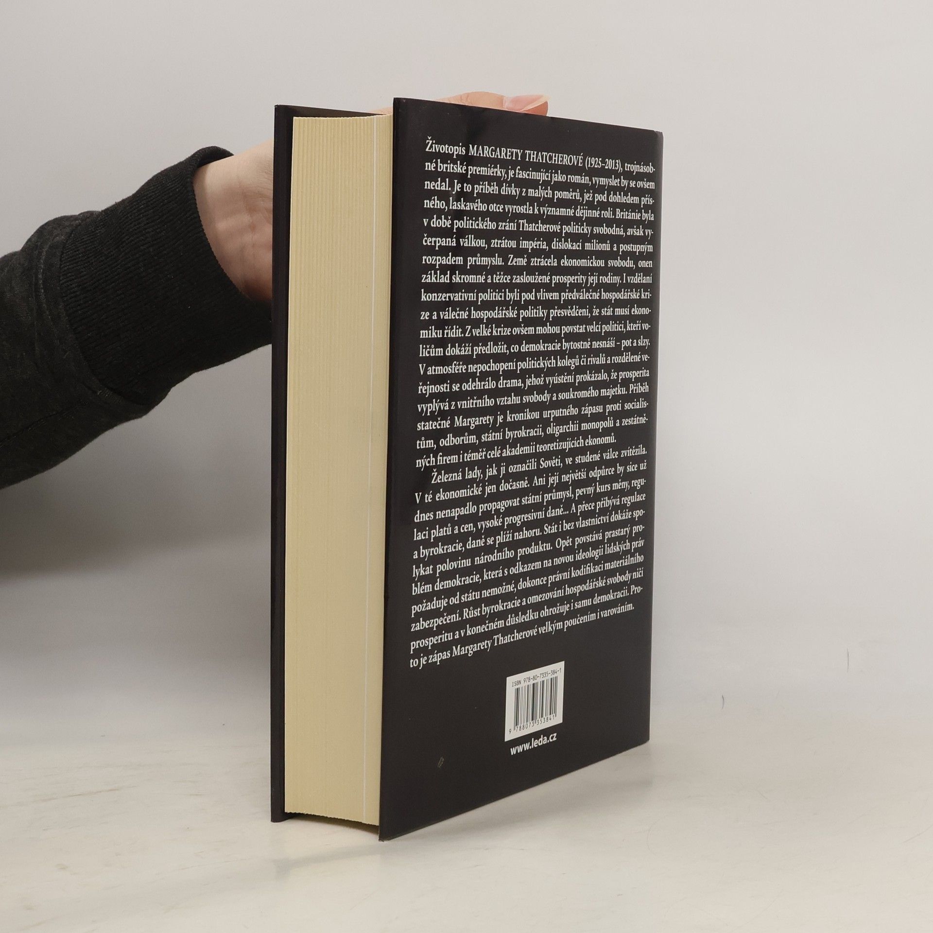 Životopis Margarety Thatcherové (1925–2013), trojnásobné britské premiérky, je fascinujícím příběhem dívky z malých poměrů, která se pod dohledem přísného, avšak laskavého otce vypracovala k významné historické roli. V době jejího politického zrání byla Británie svobodná, ale vyčerpaná válkou a ztrátou impéria, což vedlo k postupnému úpadku průmyslu a ekonomické svobody. Vzdělaní konzervativní politici byli ovlivněni předválečnou krizí a věřili, že stát musí řídit ekonomiku. Z krize však mohou povstat velcí politici, kteří voličům předloží, co demokracie nesnáší – pot a slzy. V atmosféře nepochopení a rozdělené veřejnosti se odehrálo drama, které ukázalo, že prosperita vychází z vnitřního vztahu svobody a soukromého majetku. Margareta se statečně postavila socialistům, odborům a státní byrokracii. Sověti ji označili za „Železnou lady“, která ve studené válce zvítězila. I když dnes už nikdo nepropaguje státní průmysl, regulace a byrokracie se opět zvyšují, ohrožující ekonomickou svobodu a tím i demokracii. Zápas Margarety Thatcherové je proto důležitým poučením a varováním pro současnost.