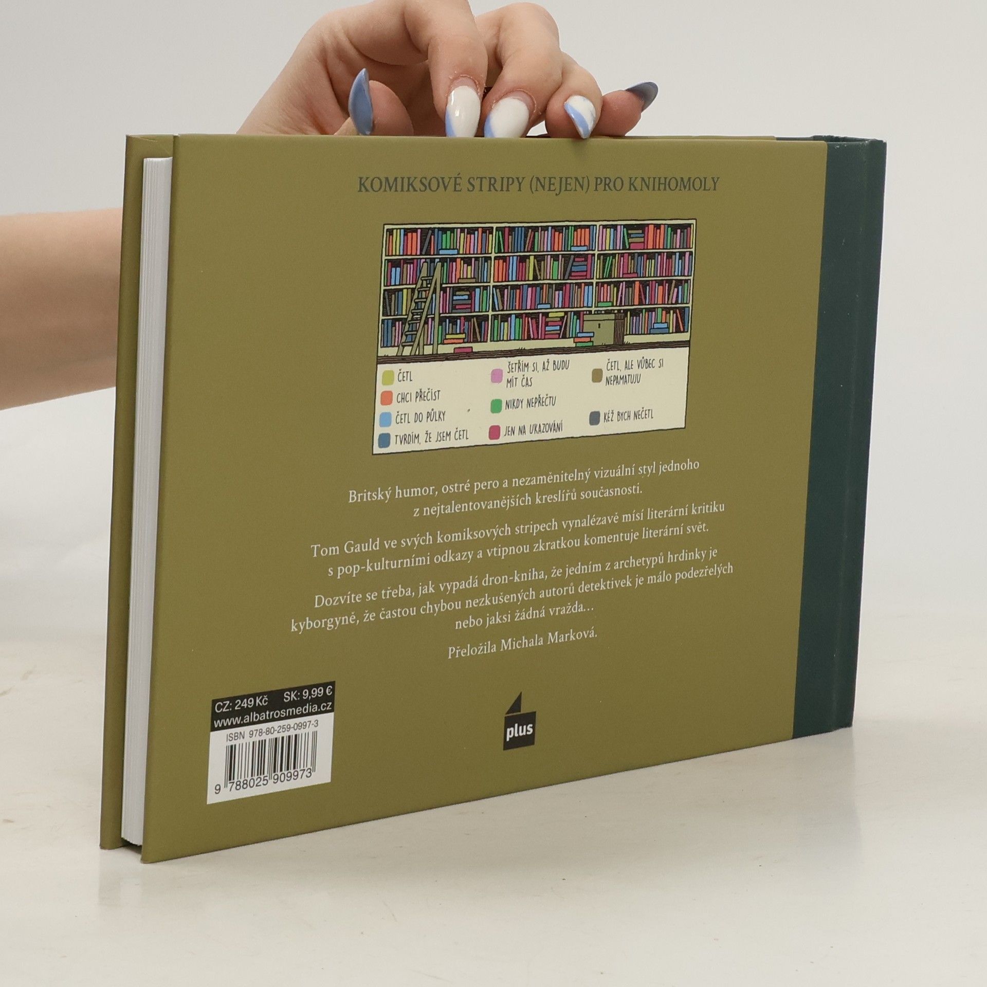 Britský humor, ostré pero a nezaměnitelný vizuální styl jednoho z nejtalentovanějších kreslířů současnosti. Týden co týden kreslí Tom Gauld stripy pro britský deník The Guardian. Vynalézavě v nich mísí literární kritiku s pop-kulturními odkazy a vtipnou zkratkou komentuje literární svět. Dozvíte se třeba, jak vypadá dron-kniha, že jedním z archetypů hrdinky je kyborgyně, že častý omyl nezkušených autorů detektivek je málo podezřelých nebo jaksi žádná vražda… Můžete si také udělat kvíz: ROMÁNY SE PŘEKLÁDAJÍ POMOCÍ… černé magie, minirobotů, tvrdé práce, osmózy? Tyto komiksové stripy pro vás ovšem přeložila Michala Marková! Ilustrátor a komiksový kreslíř Tom Gauld se narodil v roce 1976 a vyrostl ve skotském hrabství Aberdeen. Pravidelně přispívá svými komiksovými stripy do periodik The Guardian, The New York Times a The New Scientist. Žije s rodinou v Londýně.