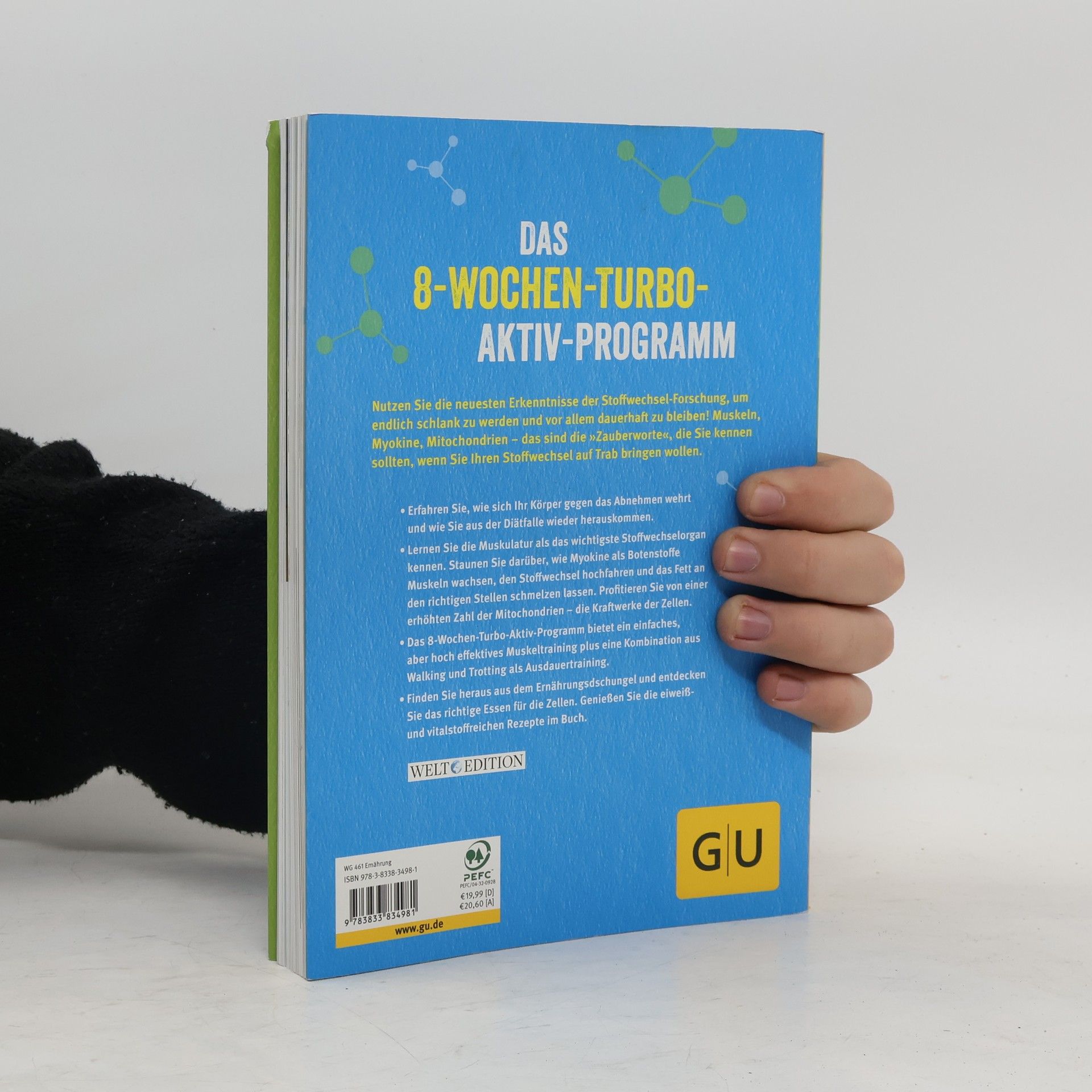 Nutzen Sie die Erkenntnisse der Stoffwechsel-Forschung, um schlank zu werden und dauerhaft zu bleiben. Mit gezieltem Muskeltraining wird der Turbo gezündet! Myokine, hormonähnliche Botenstoffe, unterstützen die Fettverbrennung, insbesondere an Problemzonen. Das abwechslungsreiche 8-Wochen-Turbo-Aktiv-Programm setzt dies effektiv um. Die Übungen sind so gestaltet, dass auch Übergewichtige und Ungeübte leicht einsteigen können. Ein begleitendes Ernährungsprogramm rundet das Konzept ab und bietet eine Lösung für alle, die trotz zahlreicher Diäten nicht abnehmen konnten, da diese den Stoffwechsel aus dem Takt gebracht haben. Der entscheidende Unterschied zu herkömmlichen Diäten: Um erfolgreich und nachhaltig abzunehmen, sollten Sie mit Ihrem Körper arbeiten, nicht gegen ihn. Diäten senken den Stoffwechsel und reduzieren wichtige Muskelmasse. Der Körper kann überflüssige Pfunde selbst abwerfen, wenn der Stoffwechsel richtig angeregt wird. Regelmäßige Bewegung und eine auf den Biorhythmus abgestimmte Ernährung fördern die Fettverbrennung. Die Kombination aus Ausdauer- und Krafttraining erhöht den Grundumsatz, sodass der Körper effektiv Fett verbrennt. Bringen Sie Ihren Körper in nur acht Wochen auf Hochtouren!