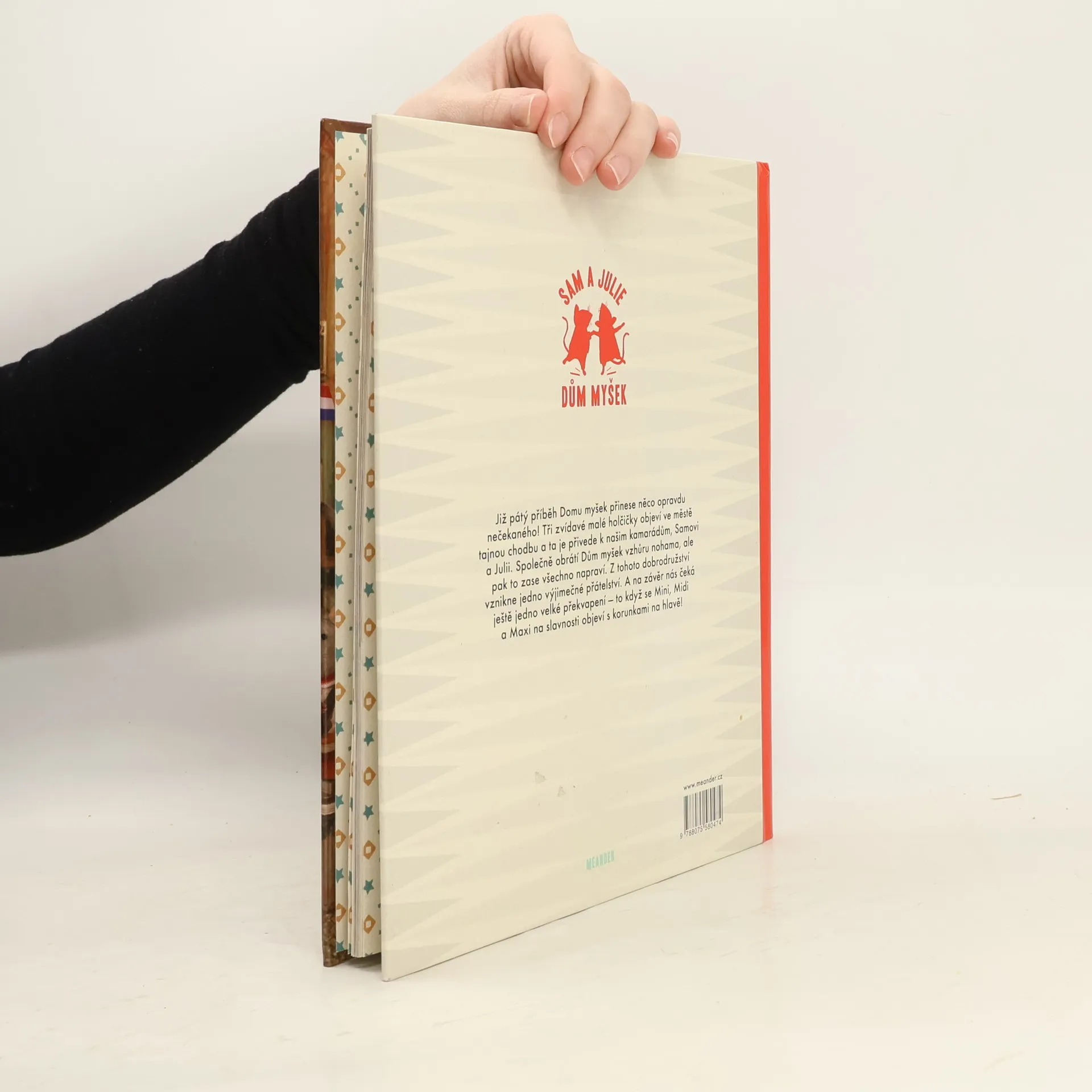 Již pátý příběh Domu myšek přinese něco opravdu nečekaného! Tři zvídavé malé holčičky objeví ve městě tajnou chodbu a ta je přivede k našim kamarádům, Samovi a Julii. Společně obrátí Dům myšek vzhůru nohama, ale pak to zase všechno napraví. Z tohoto dobrodružství vznikne jedno výjimečné přátelství. A na závěr nás čeká ještě jedno velké překvapení – to když se Mini, Midi a Maxi na slavnosti objeví s korunkami na hlavě! Mini nakrčí nosík a začichá. „Cítím jablkový koláč,“ řekne. Julie ukazuje nahoru. „Za těmihle dveřmi je pekařství. Půjdeme se tam podívat?“ Všech pět dětí vyběhne po schodech. Julie buší na dveře, ale nikdo neotvírá. Zabouchá silněji. Buch-buch- -buch, ale dveře zůstanou zavřené. „Možná musíme zazvonit,“ řekne Maxi. Midi zatáhne za zvonek. Cilililililink! Potom Mini vezme za kliku a dveře se rozletí dokořán. „Ó, tady to ale krásně voní!“ řeknou Mini, Midi a Maxi sborem. „Mini! Pozor na ta vajíčka!“ zaječí Julie. Sam leknutím narazí do stolu. Bum! Teď spadl i hrnek s mouku. Jémine, to je ale spoušť!