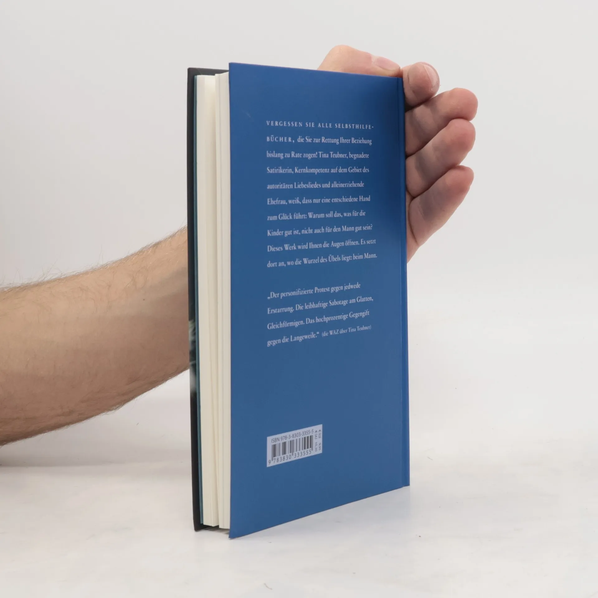 Vergessen Sie alle Selbsthilfebücher, die Sie zur Rettung Ihrer Beziehung bislang zu Rate zogen! Tina Teubner, begnadete Satirikerin, Kernkompetenz auf dem Gebiet des autoritären Liebesliedes und alleinerziehende Ehefrau, weiß, dass nur eine entschiedene Hand zum Glück führt: Warum soll das, was für die Kinder gut ist, nicht auch für den Mann gut sein? Dieses Werk wird Ihnen die Augen öffnen. Es setzt dort an, wo die Wurzel des Übels liegt: beim Mann.