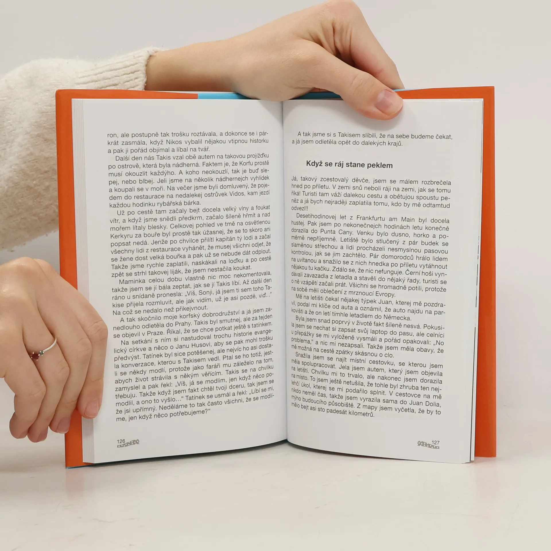 Svěží a vtipné vyprávění čerstvé maturantky Sonji nás zavede do řady míst: do Německa, Švýcarska, Anglie a Skotska, kam se vypravila, aby se naučila jazyk a poznala svět. Se stejným cílem, ale už jako zaměstnankyně cestovní kanceláře pak do Tuniska, Egypta, na Kanárské ostrovy, na Korfu, do Dominikánské republiky. Státy, místa i města jsou důležitá, ale nejdůležitější jsou lidé, vzájemná setkání, poznávání se, porozumění i neporozumění mezi lidmi odlišných kultur a mentalit. Na svých cestách jich potkala celou řadu a seznamuje nás s nimi s humorem, vhledem a pochopením. Při svém dobrodružném a bezstarostném putování se občas dostala i do situací, kdy se její andělé strážní pořádně zapotili…