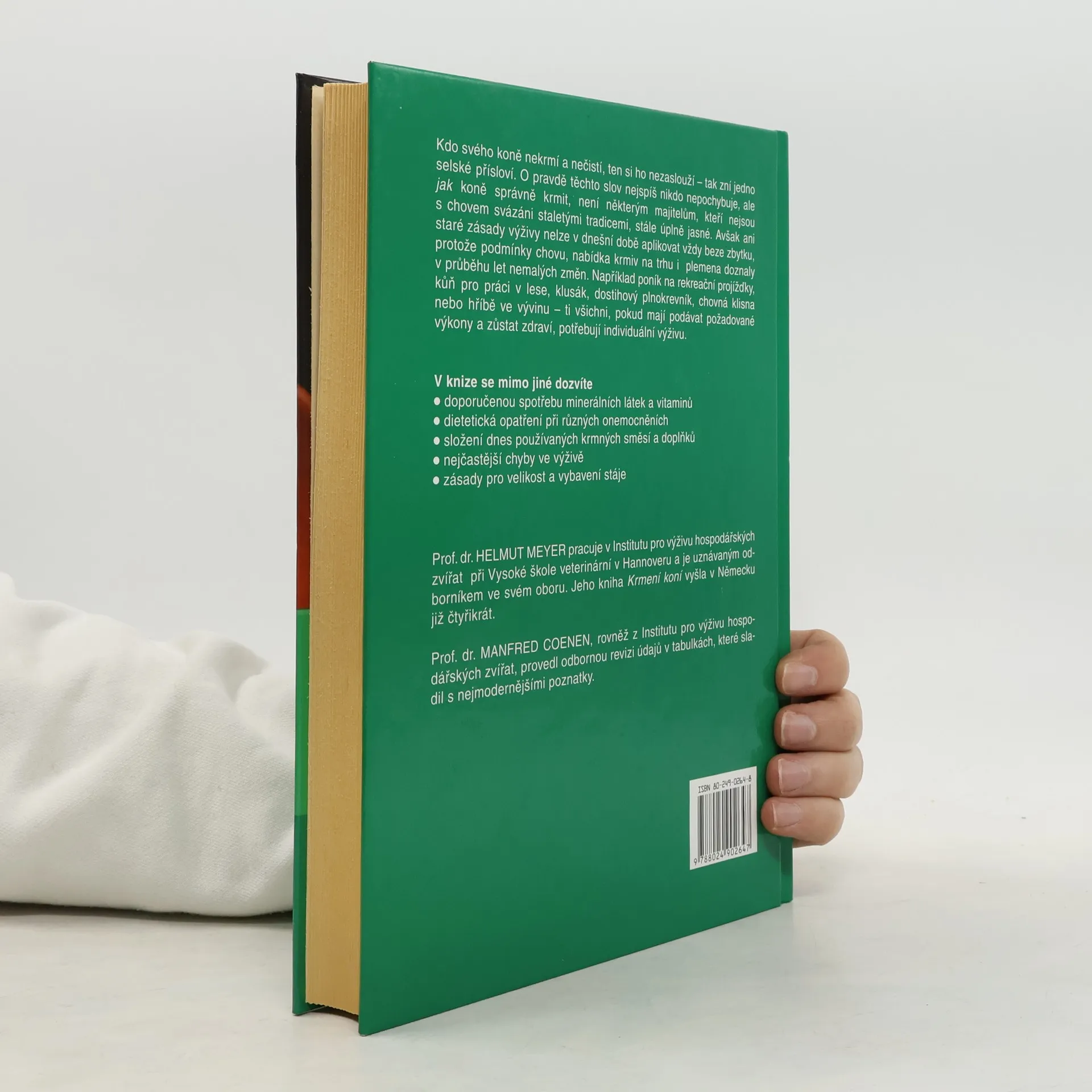 Kdo svého koně nekrmí a nečistí, ten si ho nezaslouží - tak zní jedno selské přísloví. O pravdě těchto slov nejspíš nikdo nepochybuje, ale jak koně správně krmit, není některým majitelům, kteří nejsou s chovem svázáni staletými tradicemi, stále úplně jasné. Avšak ani staré zásady výživy nelze v dnešní době aplikovat vždy beze zbytku, protože podmínky chovu, nabídka krmiv na trhu i plemena doznaly v průběhu let nemalých změn. Například poník na rekreační projížďky, kůň pro práci v lese, klusák, dostihový plnokrevník, chovná klisna nebo hříbě ve vývinu - ti všichni, pokud mají podávat požadované výkony a zůstat zdraví, potřebují individuální výživu. V knize se mimo jiné dozvíte - doporučenou spotřebu minerálních látek a vitaminů - dietetická opatření při různých onemocněních - složení dnes používaných krmných směsí a doplňků - nejčastější chyby ve výživě - zásady pro velikost a vybavení stáje