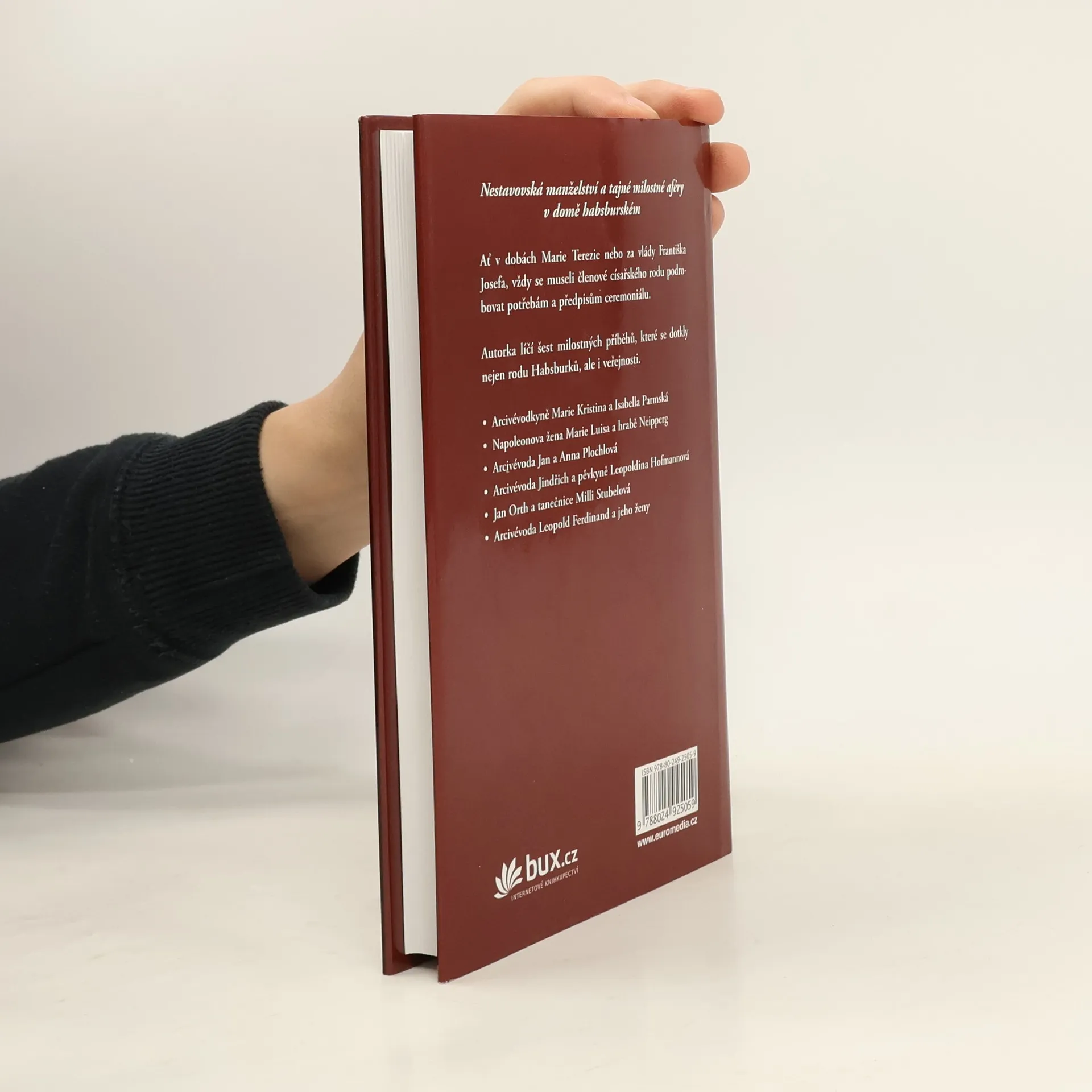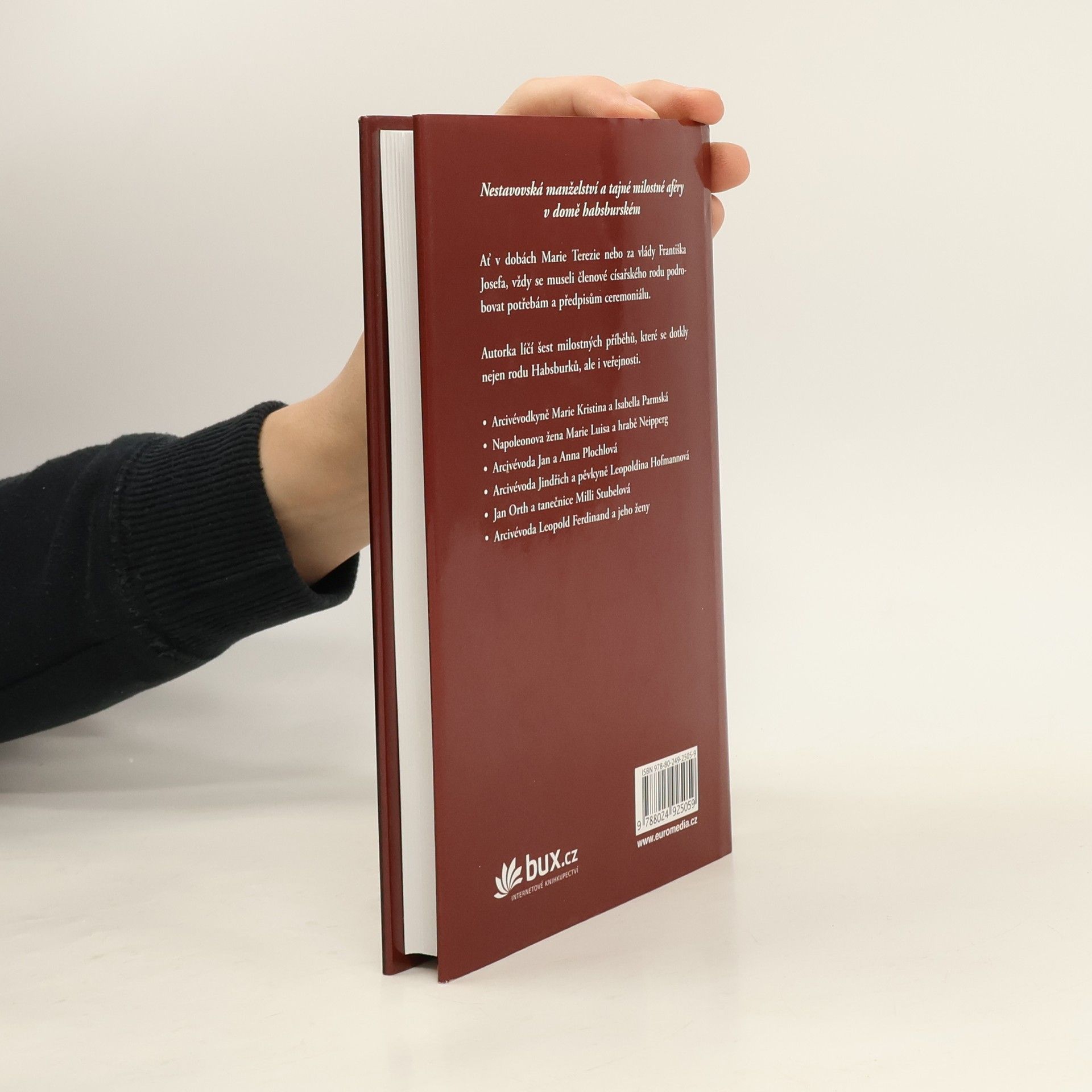 Ať v dobách Marie Terezie nebo za vlády Františka Josefa, vždy se museli členové císařského rodu podrobovat potřebám a předpisům ceremoniálu. Autorka líčí šest milostných příběhů, které se dotkly nejen rodu Habsburků, ale i veřejnosti. - Arcivévodkyně Marie Kristina a Isabella Parmská - Napoleonova žena Marie Luisa a hrabě Neipperg - Arcivévoda Jan a Anna Plochlová - Arcivévoda Jindřich a pěvkyně Leopoldina Hofmannová - Jan Orth a tanečnice Milli Stubelová - Arcivévoda Leopold Ferdinand a jeho ženy