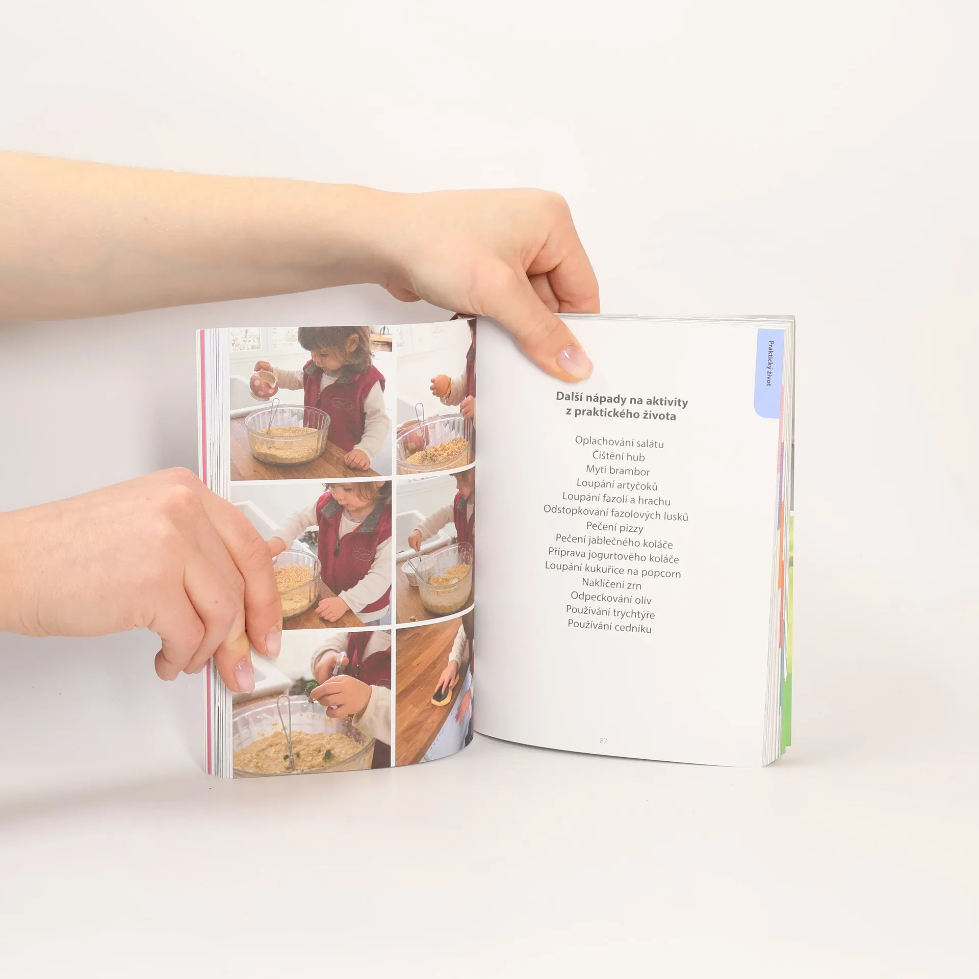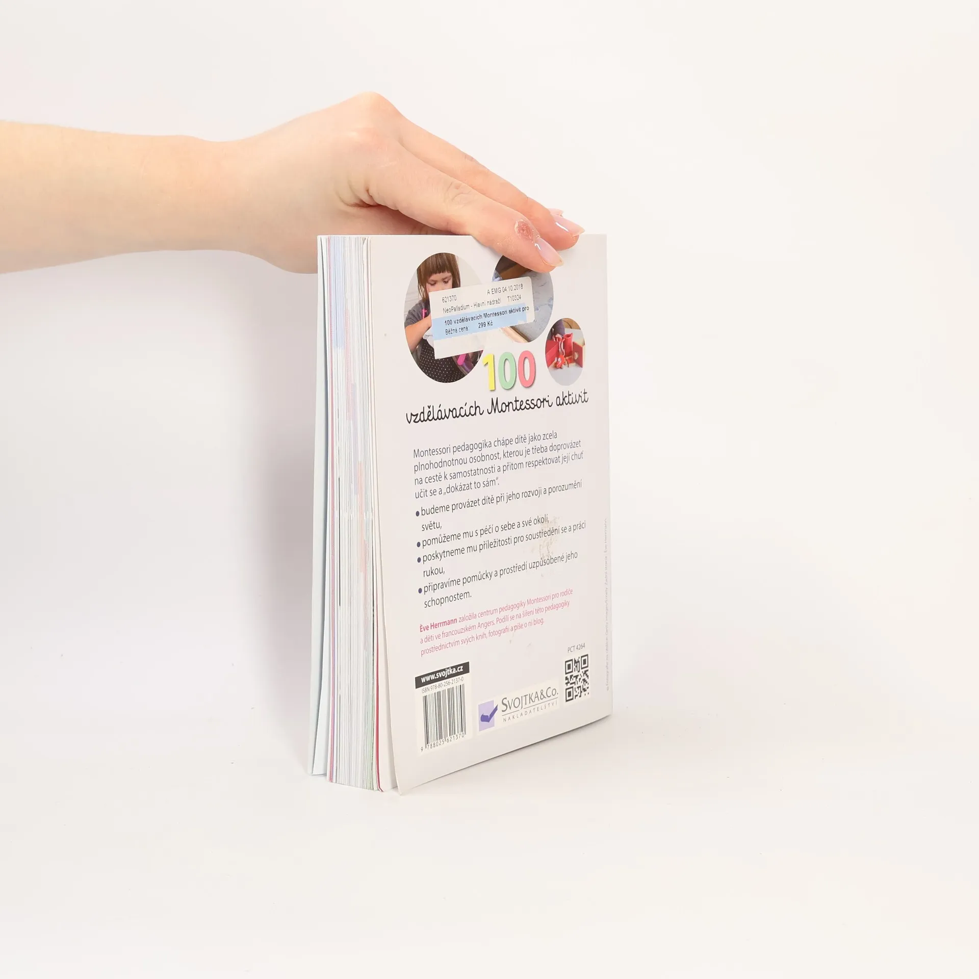 Objevujte s dětmi svět! Pomocí jednoduchých aktivit, které lze přizpůsobit konkrétním potřebám dítěte, se batole naučí vše o sobě i okolním světě. Tato kniha nabízí 100 aktivit, vycházejících z principů pedagogiky Montessori a určených dětem od 18 měsíců. Prostřednictvím jednoduchých úkolů se děti přirozenou formou naučí praktické dovednosti jako oblékání, hygienické návyky a jednoduchou pomoc v domácnosti. Vedle těchto každodenních činností si děti procvičí i smyslové vnímání, začnou rozvíjet jemnou motoriku a seznámí se s okolním světem. Tyto aktivity jim pomáhají objevovat a pozorovat svět a uspokojovat jejich nekonečnou zvídavost. Postupujte tak, jak dítě samo chce, přizpůsobujte je situaci i rytmu, který vyhovuje dítěti. Objevujte svět společně se svými dětmi!