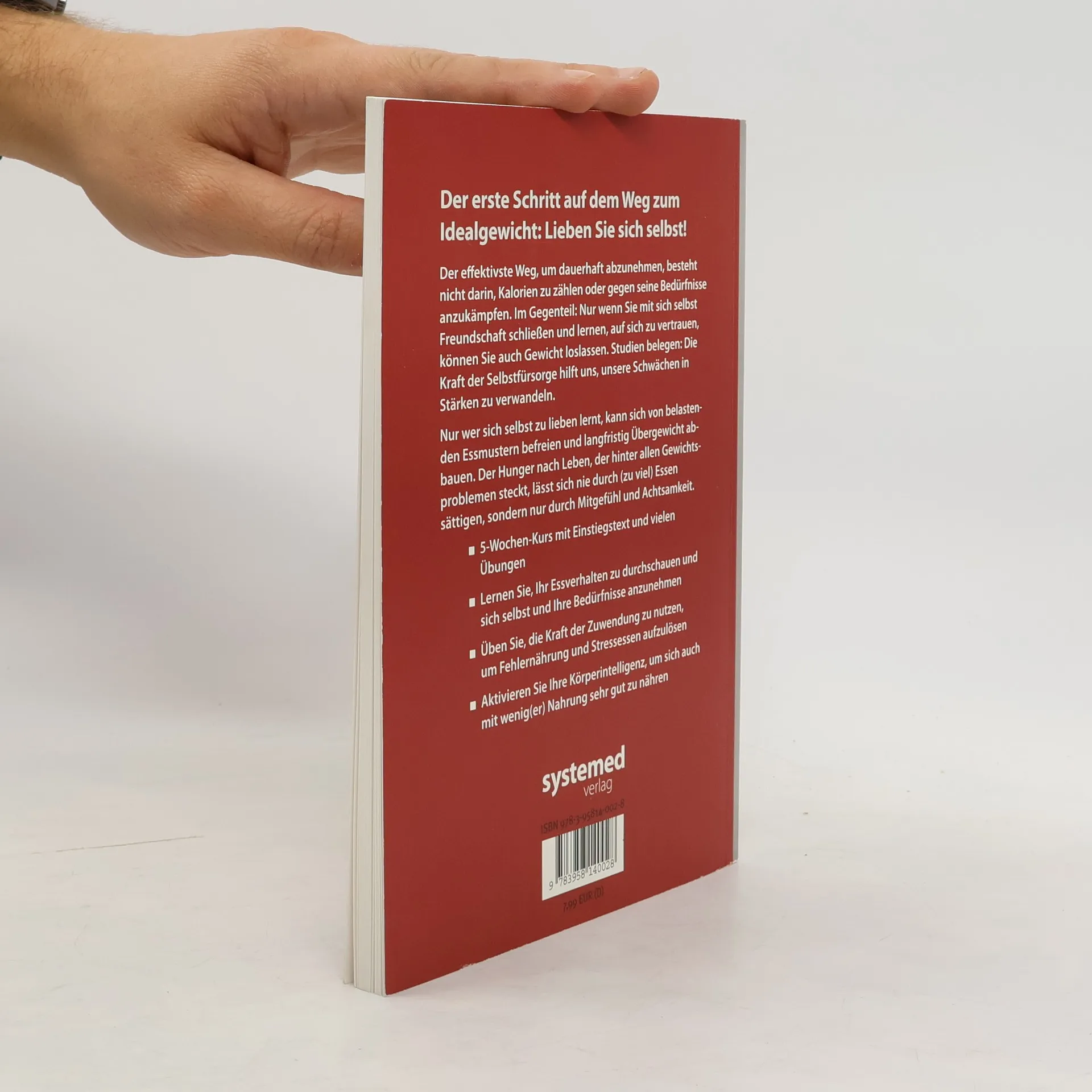 Der effektivste Weg, um dauerhaft abzunehmen, besteht nicht darin, Kalorien zu zählen oder gegen seine Bedürfnisse anzukämpfen. Im Gegenteil: Nur wenn Sie mit sich selbst Freundschaft schließen und lernen, der Intelligenz Ihres Körpers zu vertrauen, werden Sie auch auf der Waage erfolgreich sein. Studien belegen: Die Kraft der Selbst-Fürsorge hilft uns, unsere Schwächen in Stärken zu verwandeln. Nur wer sich selbst zu lieben lernt, kann sich von belastenden Essmustern befreien und langfristig Übergewicht abbauen. Der Hunger nach Leben, der hinter allen Gewichtsproblemen steckt, lässt sich nie durch (zu viel) Essen sättigen, sondern nur durch Mitgefühl und Achtsamkeit. - 5-Wochen-Kurs mit Einstiegstest und vielen Übungen. - Lernen Sie, Ihr Essverhalten zu durchschauen und sich selbst und Ihre Bedürfnisse anzunehmen. - Üben Sie, die Kraft der Zuwendung zu nutzen, um Fehlernährung und Stressessen aufzulösen. - Aktivieren Sie Ihre Körperintelligenz, um sich auch mit wenig(er) Nahrung sehr gut zu nähren