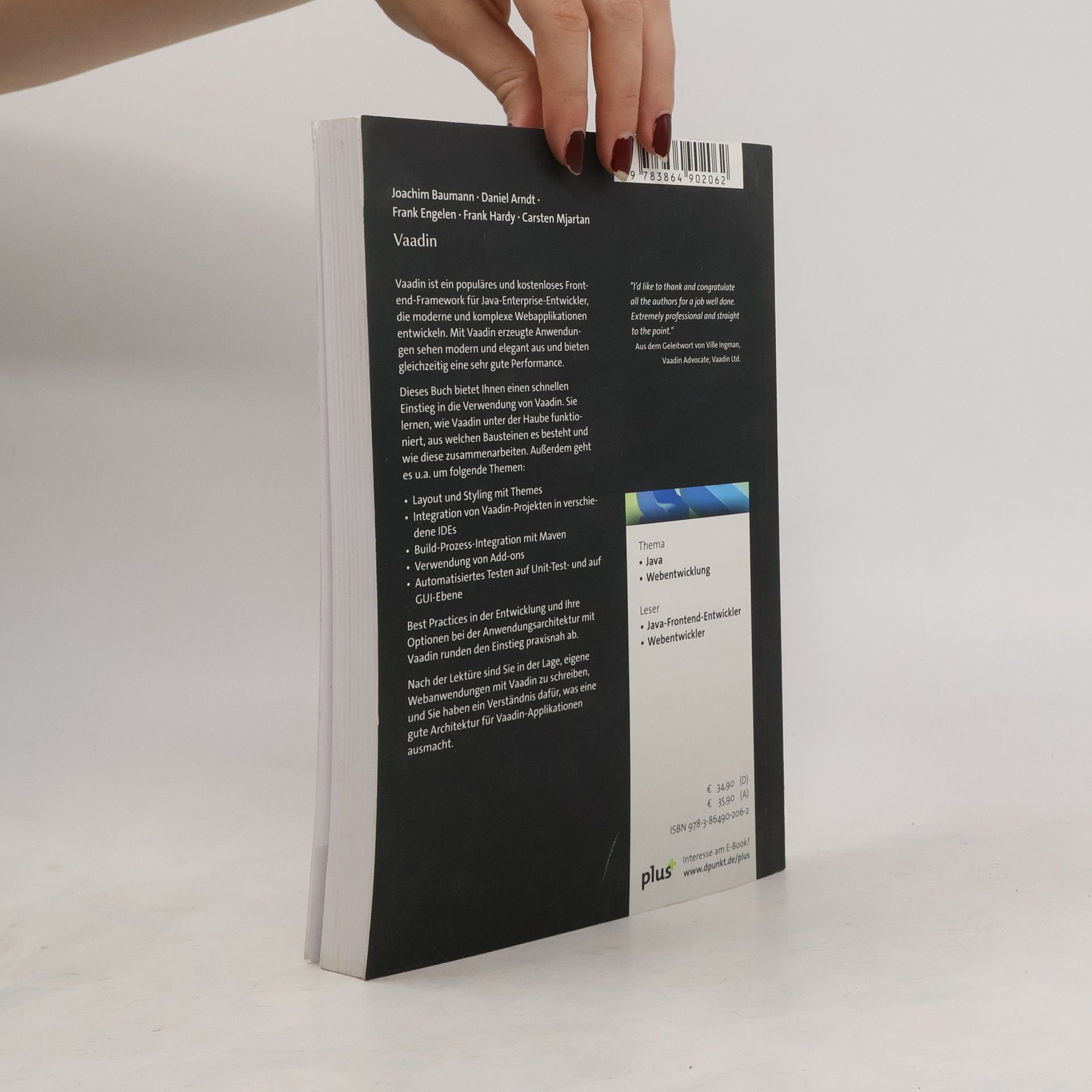 Vaadin ist ein populäres und kostenloses Frontend- Framework für Java-Enterprise-Entwickler, die moderne und komplexe Webapplikationen entwickeln. Mit Vaadin erzeugte Anwendungen sehen modern und elegant aus und bieten gleichzeitig eine sehr gute Performance. Dieses Buch bietet Ihnen einen schnellen Einstieg in die Verwendung von Vaadin. Sie lernen, wie Vaadin unter der Haube funktioniert, aus welchen Bausteinen es besteht und wie diese zusammenarbeiten. Außerdem geht es u. a. um folgende Themen: - Layout und Styling mit Themes - Integration von Vaadin-Projekten in verschiedene IDEs - Build-Prozess-Integration mit Maven - Verwendung von Add-ons - Automatisiertes Testen auf Unit-Test- und auf GUI-Ebene Best Practices in der Entwicklung und Ihre Optionen bei der Anwendungsarchitektur mit Vaadin runden den Einstieg praxisnah ab. Nach der Lektüre sind Sie in der Lage, eigene Webanwendungen mit Vaadin zu schreiben, und Sie haben ein Verständnis dafür, was eine gute Architektur für Vaadin-Applikationen ausmacht. ”I’d like to thank and congratulate all the authors for a job well done. Extremely professional and straight to the point.“ Aus dem Geleitwort von Ville Ingman, Vaadin Advocate, Vaadin Ltd.