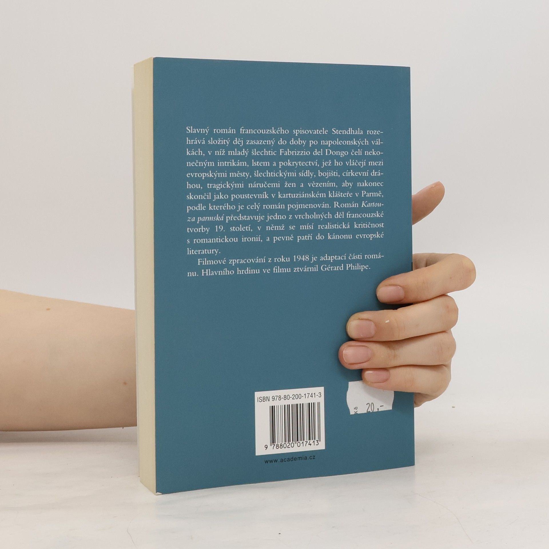 Slavný román francouzského spisovatele Stendhala rozehrává složitý děj zasazený do doby po Napoleonských válkách, v níž mladý šlechtic Fabrizzio del Dongo čelí nekonečným intrikám, lstem a pokrytectví, jež ho vláčejí mezi evropskými městy, šlechtickými sídly, bojišti, církevní dráhou, tragickými náručemi žen a vězením, aby nakonec skončil jako poustevník v kartuziánském klášteře v Parmě, podle kterého je celý román pojmenován. Román Kartouza parmská představuje jedno z vrcholných děl francouzské tvorby 19. století, v němž se mísí realistická kritičnost s romantickou ironií, a pevně patří do kánonu evropské literatury. Filmové zpracování z roku 1948 je adaptací části románu. Hlavního hrdinu ve filmu ztvárnil Gérard Philipe.