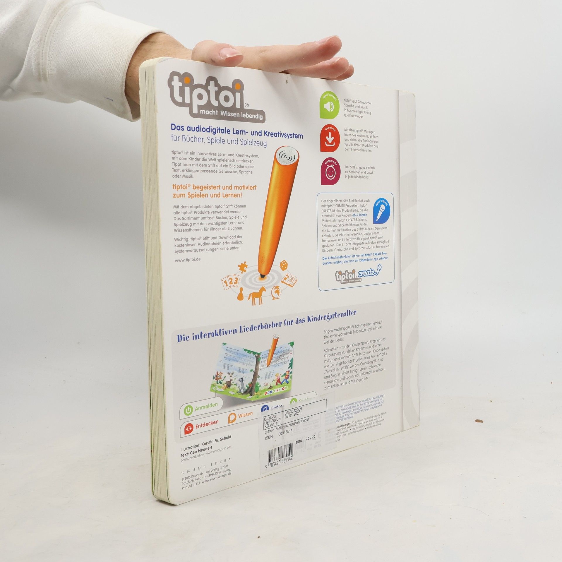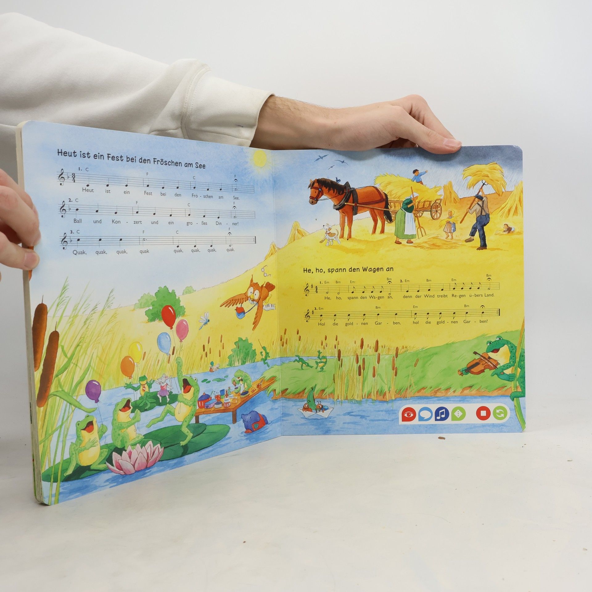 Singen und Musizieren ist das ideale Thema für tiptoi®. Mit dem Stift können Kinder 18 bekannte und beliebte Lieder komplett oder strophenweise abspielen oder die Playbackversion zum Mitsingen auswählen. Lustige Spiele und eine animative Klaviatur sind weitere Mitmachelemente. Erklärt werden viele Begriffe wie Note, Tonleiter oder Kanon. Alle Lieder sind mit Notensatz und Gitarrenakkorden abgedruckt, einem Hauskonzert steht also nichts mehr im Wege.