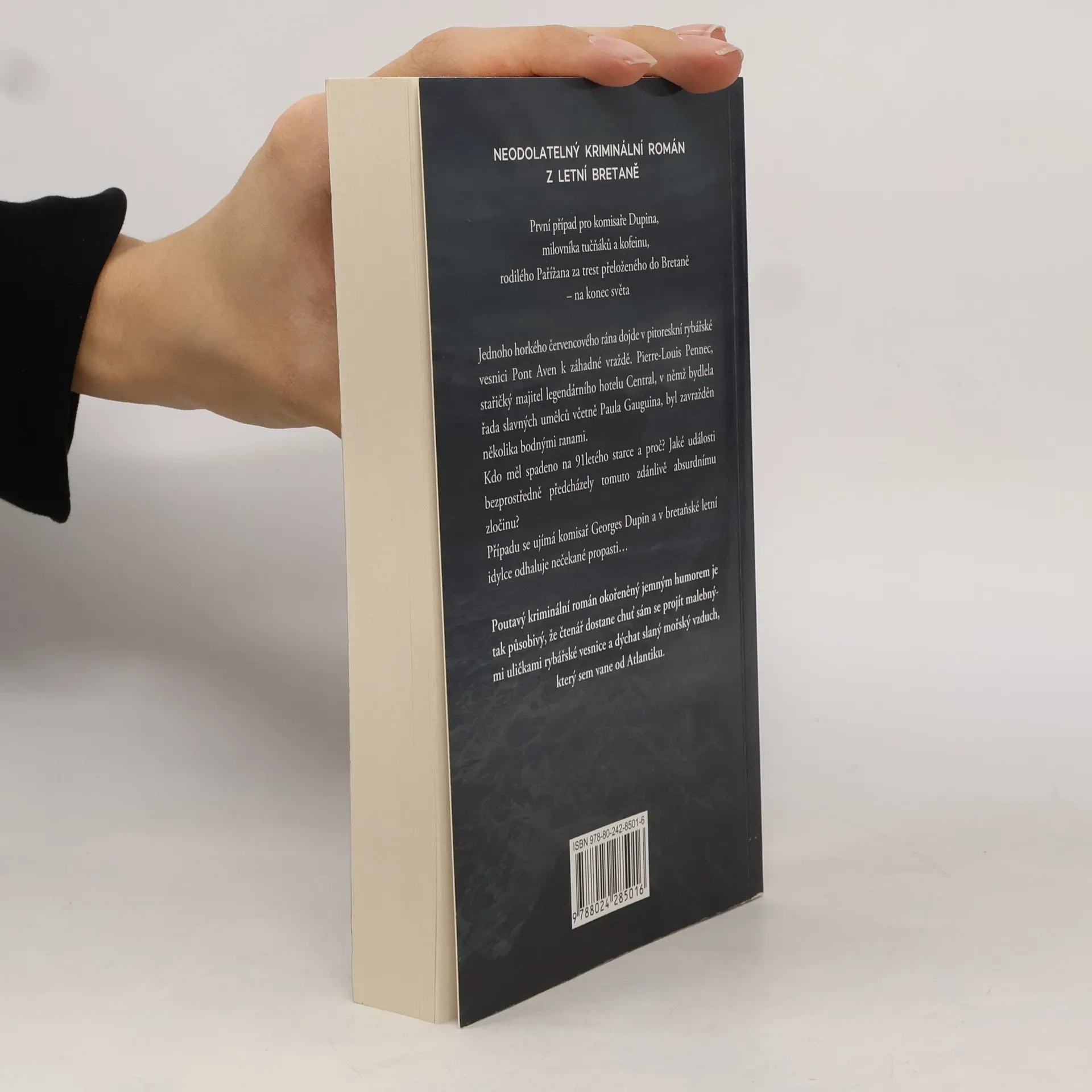 První případ pro komisaře Dupina, milovníka tučňáků a kofeinu, rodilého Pařížana za trest přeloženého do Bretaně – na konec světa. V malebné pobřežní vesničce je jednoho horkého červencového rána nalezen zavražděný stařičký majitel slavného hotelu. Komisař Georges Dupin se v bretaňské letní idylce záhy dostává na stopu podivuhodného tajemství..