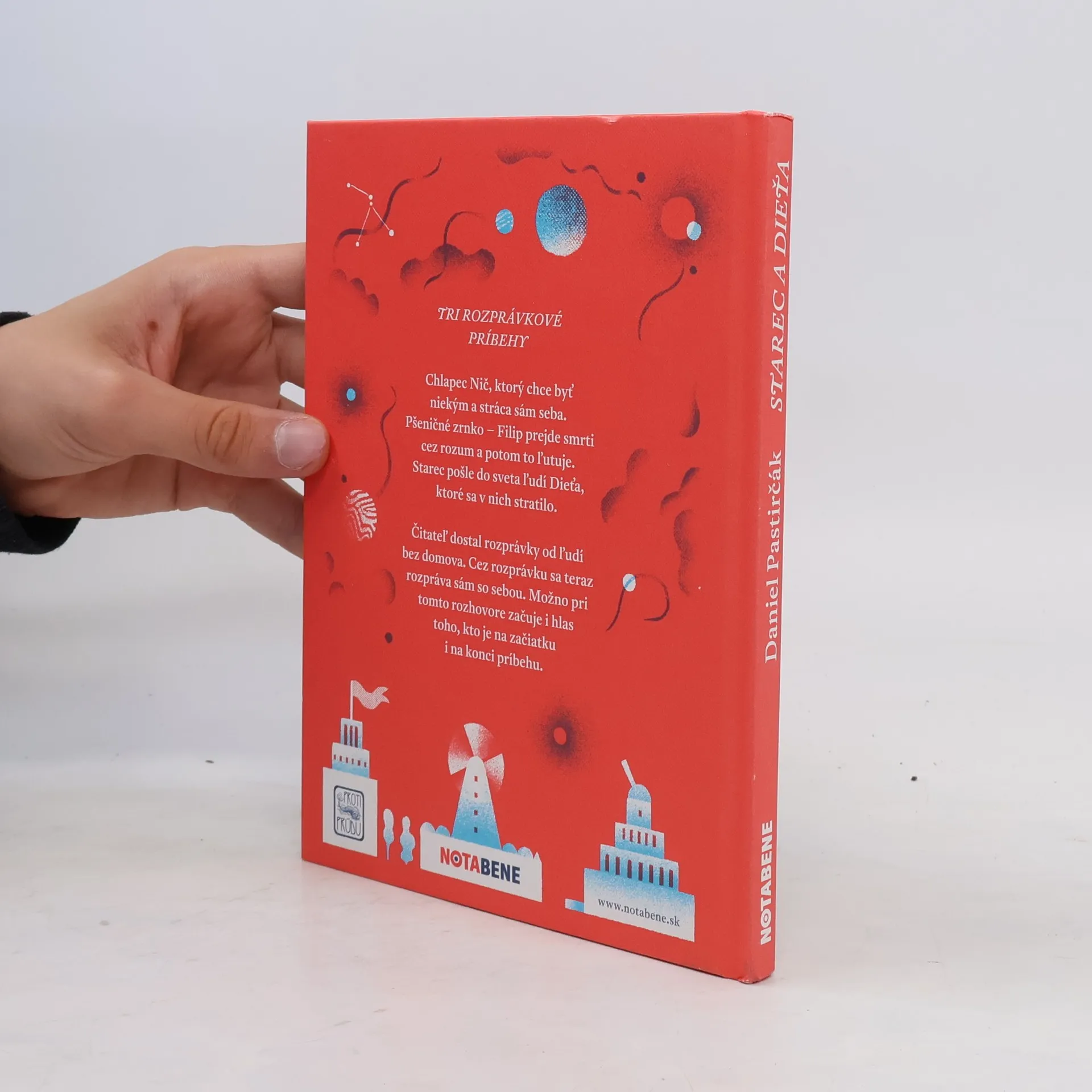 Kniha Daniela Pastirčáka a ilustrátorky Daniely Olejníkovej ponúka tri rozprávkové príbehy: Nič - Chlapec Nič, ktorý chce byť niekým a stráca sám seba. O zrnku - Pšeničné zrnko prejde smrti cez rozum a potom to ľutuje. Starec a dieťa - Starec pošle do sveta ľudí Dieťa, ktoré sa v nich stratilo.