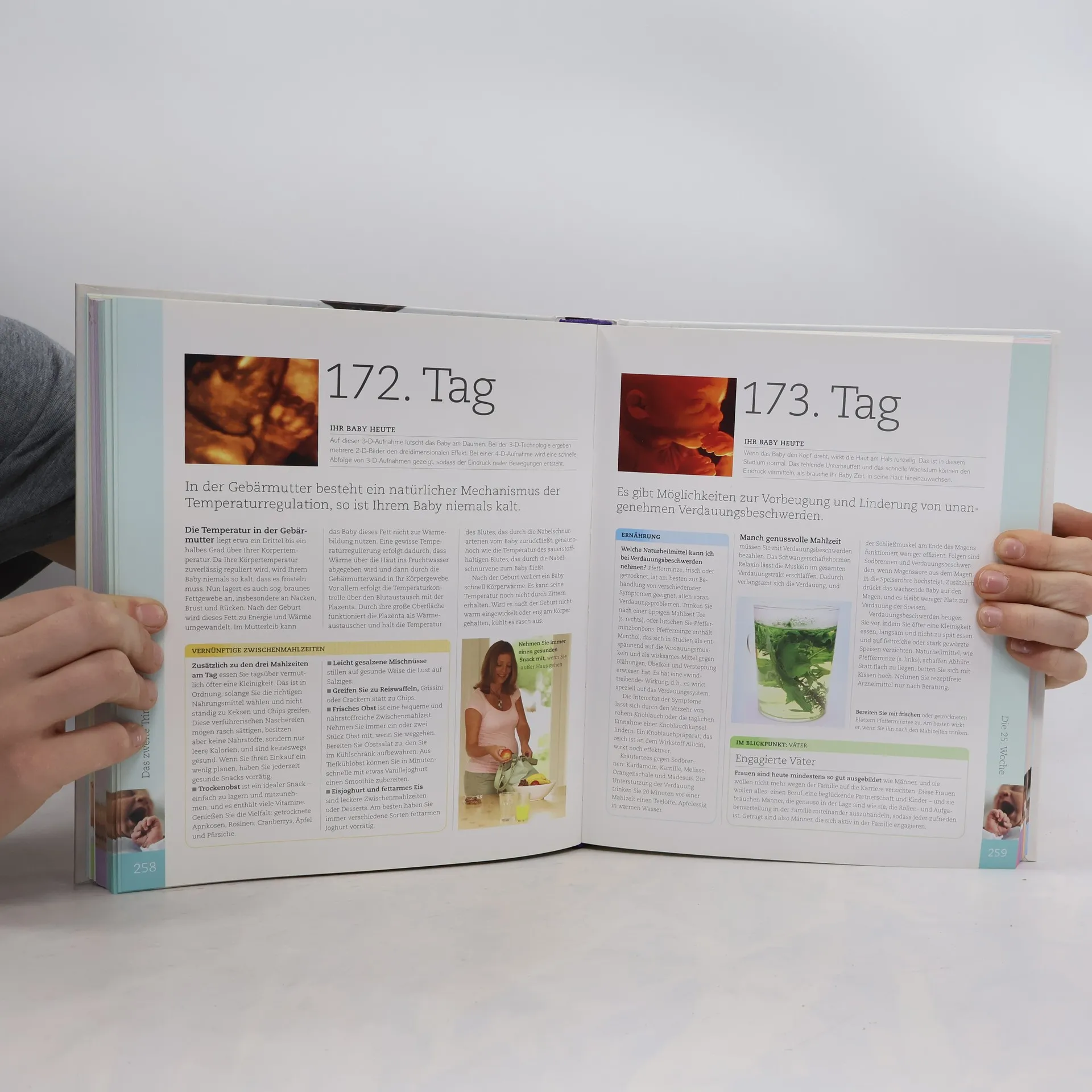 Dieser einfühlsame und fundierte Ratgeber begleitet Sie Tag für Tag durch die aufregende Zeit der Schwangerschaft bis zur Geburt. Ein erfahrenes Expertenteam aus Gynäkologen, Kinderärzten, Hebammen und Eltern informiert ausführlich und verständlich über die täglichen Veränderungen bei Mutter und Kind. Sie erhalten wichtige und wertvolle Tipps zu Vorsorgeuntersuchungen, Ernährung, Sport, Geburt und den ersten zwei Wochen mit dem Neugeborenen. Besonders spannend für Neugierige: Tag für Tag dokumentieren faszinierende Fotos und aufwendige Computergrafiken die Entwicklung und das Wachstum des Kindes in der Gebärmutter. So wächst die Vorfreude auf Ihr Baby täglich! Mit mehr als 1.000 Fotos und Grafiken.
