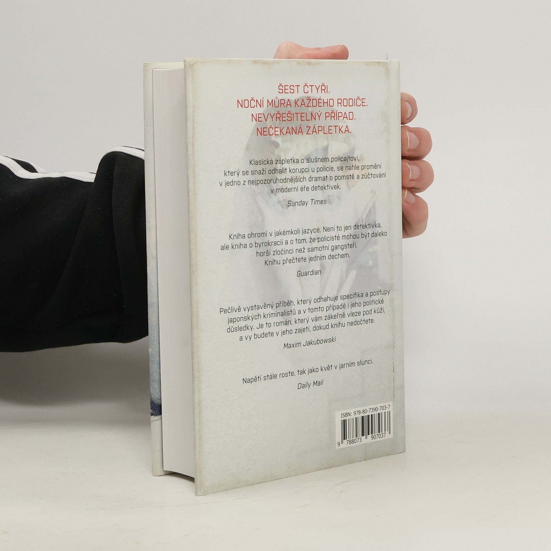 Zapomenutý případ, který otřásl japonskou policií Noční můra každého rodiče. Případ, který nevyřešil žádný detektiv. Zvraty, které čtenář neočekává. Pět dní během ledna 1989 poslouchali rodiče sedmileté tokijské školačky požadavky jejího únosce. Nikdy nezjistí jeho totožnost. Nikdy už svou dceru neuvidí. Dalších čtrnáct let japonská veřejnost poslouchá omluvy policejních složek. Na tohle zpackané vyšetřování nejde zapomenout. Říká se mu „Šest čtyřek“. Lidé jim nikdy neodpustili. Ale na konci roku 2002 se během pár dní všechno změní. Tiskový mluvčí policejního oddělení náhodou najde ve starých záznamech cosi, co zaseje semínko pochybnosti. Vůbec netuší, co odhalil. Kdyby věděl, co najde, nikdy by se do těch starých složek nedíval...