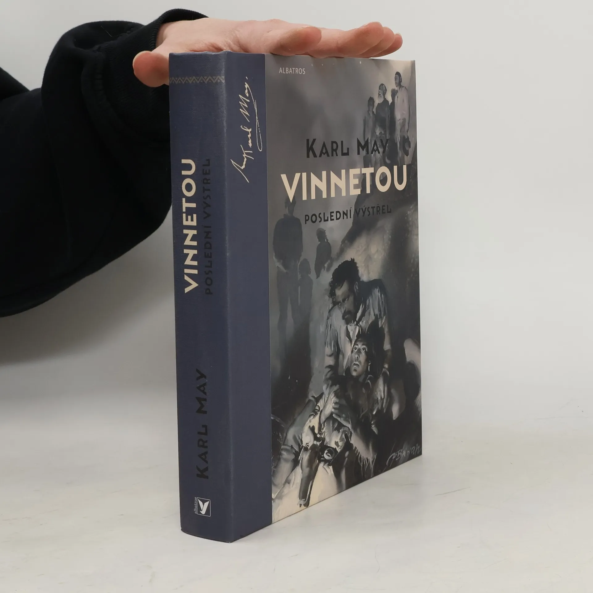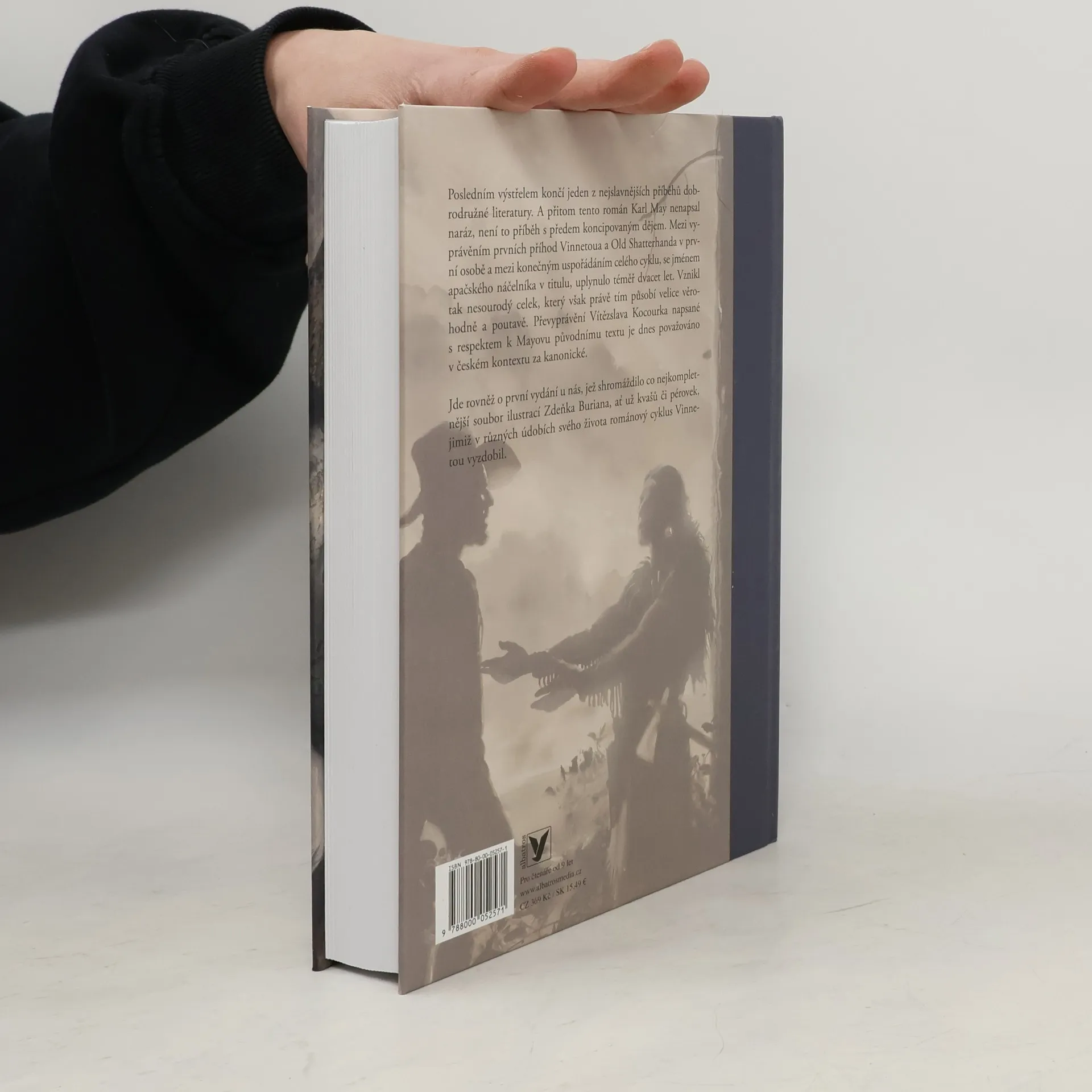 Posledním výstřelem končí jeden z nejslavnějších příběhů dobrodružné literatury. A přitom tento román Karl May nenapsal naráz, není to příběh s předem koncipovaným dějem. Mezi vyprávěním prvních příhod Vinnetoua a Old Shatterhanda v první osobě a mezi konečným uspořádáním celého cyklu, se jménem apačského náčelníka v titulu, uplynulo téměř dvacet let. Vznikl tak nesourodý celek, který však právě tím působí velice věrohodně a poutavě. Převyprávění Vítězslava Kocourka napsané s respektem k Mayovu původnímu textu je dnes považováno v českém kontextu za kanonické. Jde rovněž o první vydání u nás, jež shromáždilo co nejkompletnější soubor ilustrací Zdeňka Buriana, ať už kvašů či pérovek, jimiž v různých údobích svého života románový cyklus Vinnetou vyzdobil.