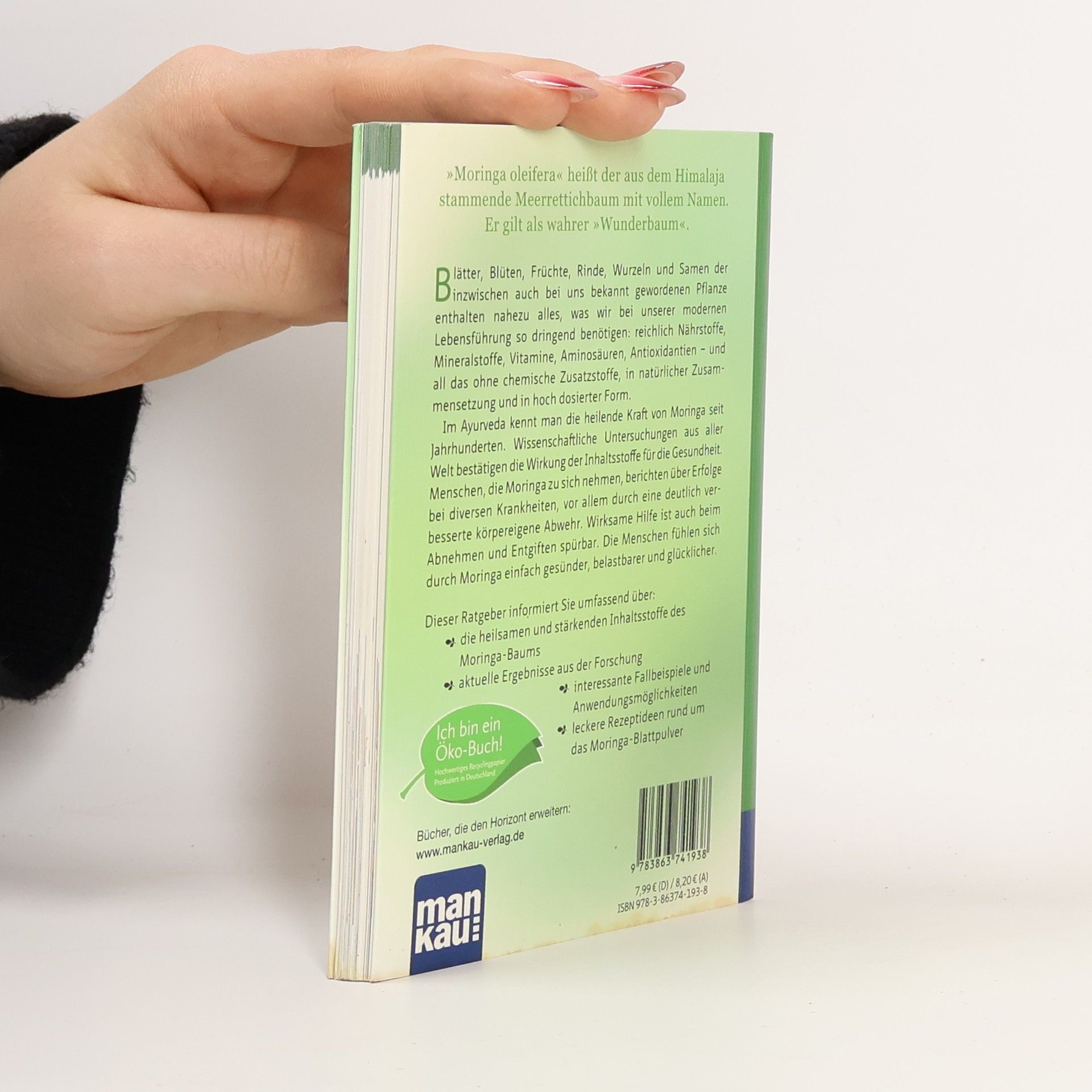 „Moringa oleifera“ heißt der aus dem Himalaja stammende Meerrettichbaum mit vollem Namen. Er gilt als wahrer „Wunderbaum“. Blätter, Blüten, Früchte, Rinde, Wurzeln und Samen der inzwischen auch bei uns bekannt gewordenen Pflanze enthalten nahezu alles, was wir bei unserer modernen Lebensführung so dringend benötigen: reichlich Nährstoffe, Mineralstoffe, Vitamine, Aminosäuren, Antioxidantien – und all das ohne chemische Zusatzstoffe, in natürlicher Zusammensetzung und in hoch dosierter Form. Im Ayurveda kennt man die heilende Kraft von Moringa seit Jahrhunderten. Wissenschaftliche Untersuchungen aus aller Welt bestätigen die Wirkung der Inhaltsstoffe für die Gesundheit. Menschen, die Moringa zu sich nehmen, berichten über Erfolge bei diversen Krankheiten, vor allem durch eine deutlich verbesserte körpereigene Abwehr. Wirksame Hilfe ist auch beim Abnehmen und Entgiften spürbar. Die Menschen fühlen sich durch Moringa einfach gesünder, belastbarer und glücklicher. Der praktische Taschenratgeber informiert Sie umfassend über: ● die heilsamen und stärkenden Inhaltsstoffe des Moringa-Baums ● aktuelle Ergebnisse aus der Forschung ● interessante Fallbeispiele und Anwendungsmöglichkeiten ● leckere Rezeptideen rund um das Moringa-Blattpulver