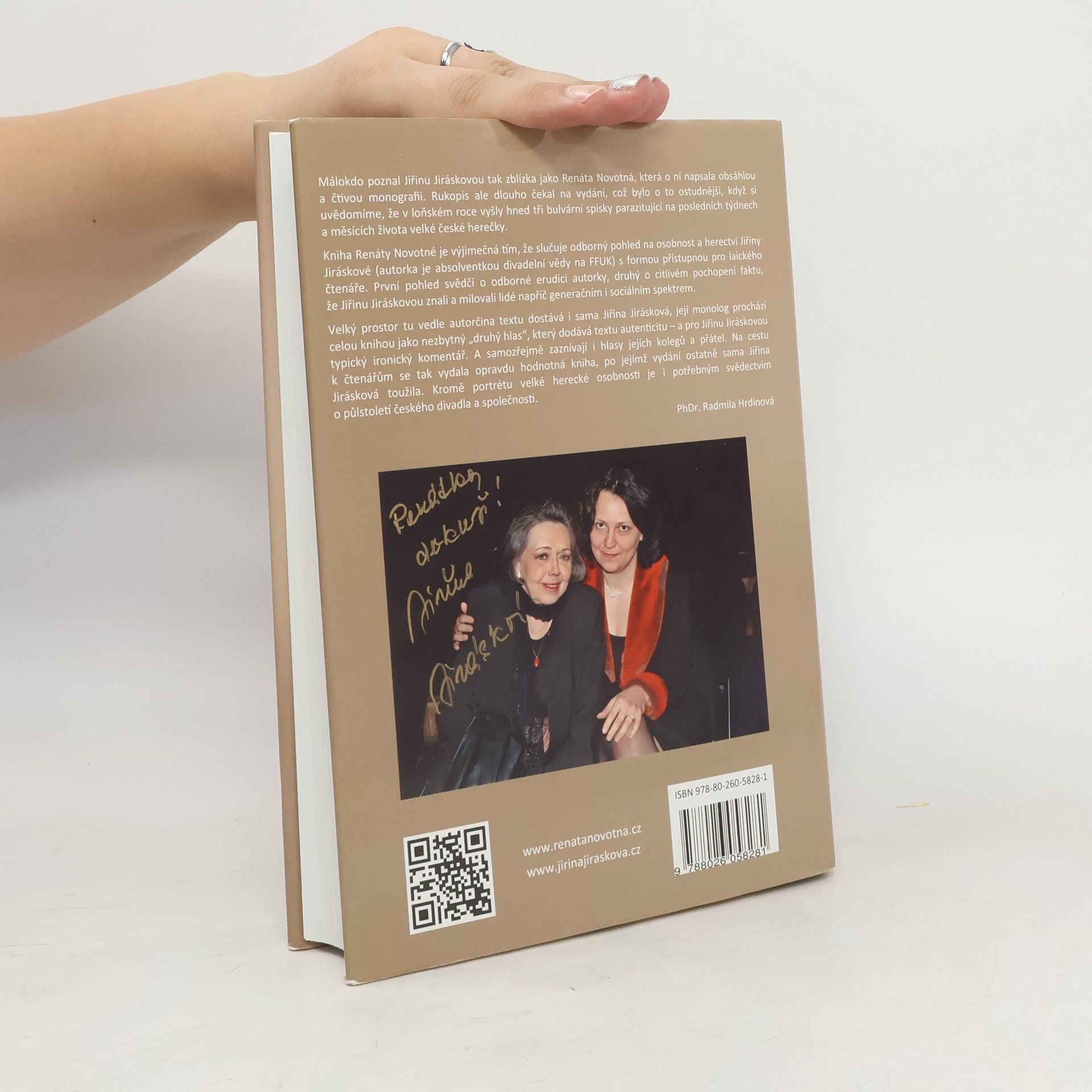 Unikátní monografie o jedné z největších českých hereček detailně mapuje život Jiřiny Jiráskové. Čtenář se zde dozví nejen o její profesní dráze jako herečky a ředitelky Divadla na Vinohradech, ale také o jejím soukromém životě, včetně dětství, dospívání a vztahů. Autorka Renáta Novotná, která měla k Jiráskové blízko díky dvacetiletému vztahu, čerpala z bohatého materiálu, aby vytvořila výjimečné dílo. Její osobní náklonnost, pracovní zkušenost jako asistentka Jiráskové a odborné zaměření na divadelní vědu jí umožnily zprostředkovat mnohé úhly pohledu na tuto osobnost. Text obsahuje i vzpomínky Jiřiny Jiráskové, které odhalují její životní přístup, ironii a humor, ale také reflektují těžké chvíle na sklonku jejího života. Kniha zahrnuje rozhovory s kolegy, jako jsou Otakar Brousek a Jiří Menzel, unikátní písemnosti z jejího soukromého archivu a rozsáhlou fotografickou přílohu, z níž mnohé snímky nebyly dosud zveřejněny. Tato monografie představuje precizně vykreslený portrét jedné z nejvýznamnějších osobností českého poválečného divadla.