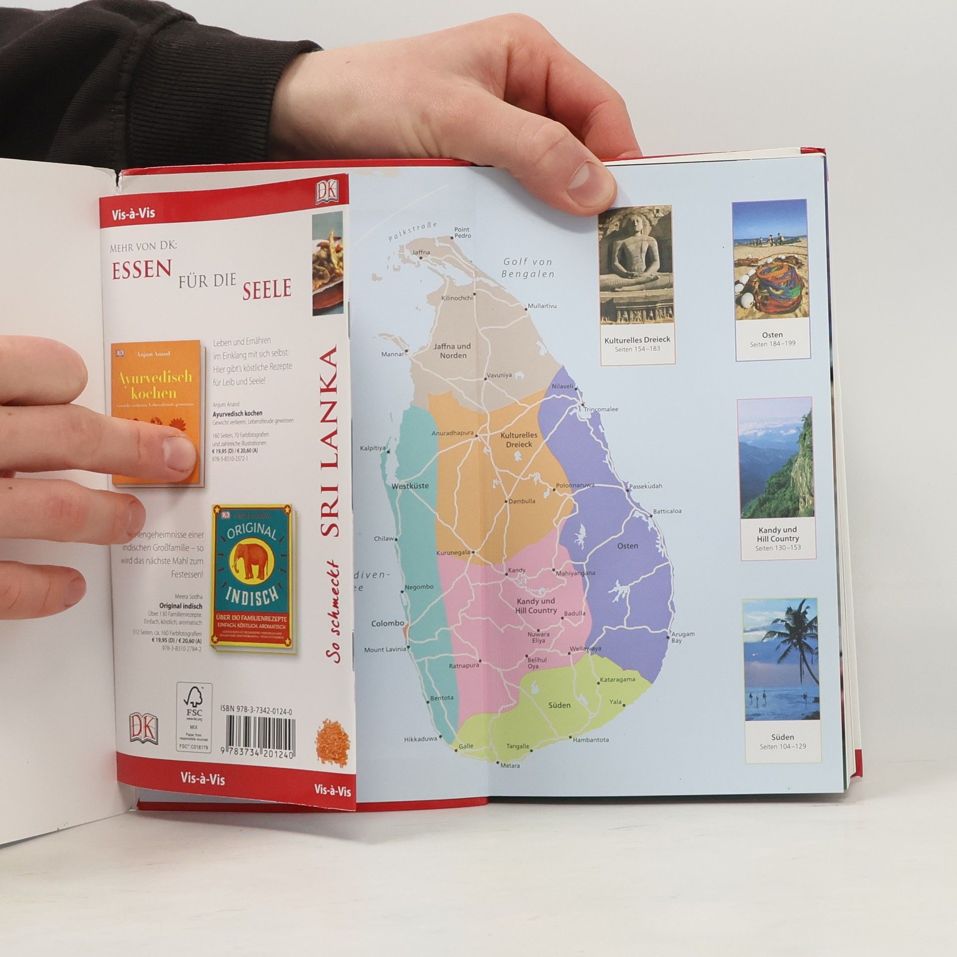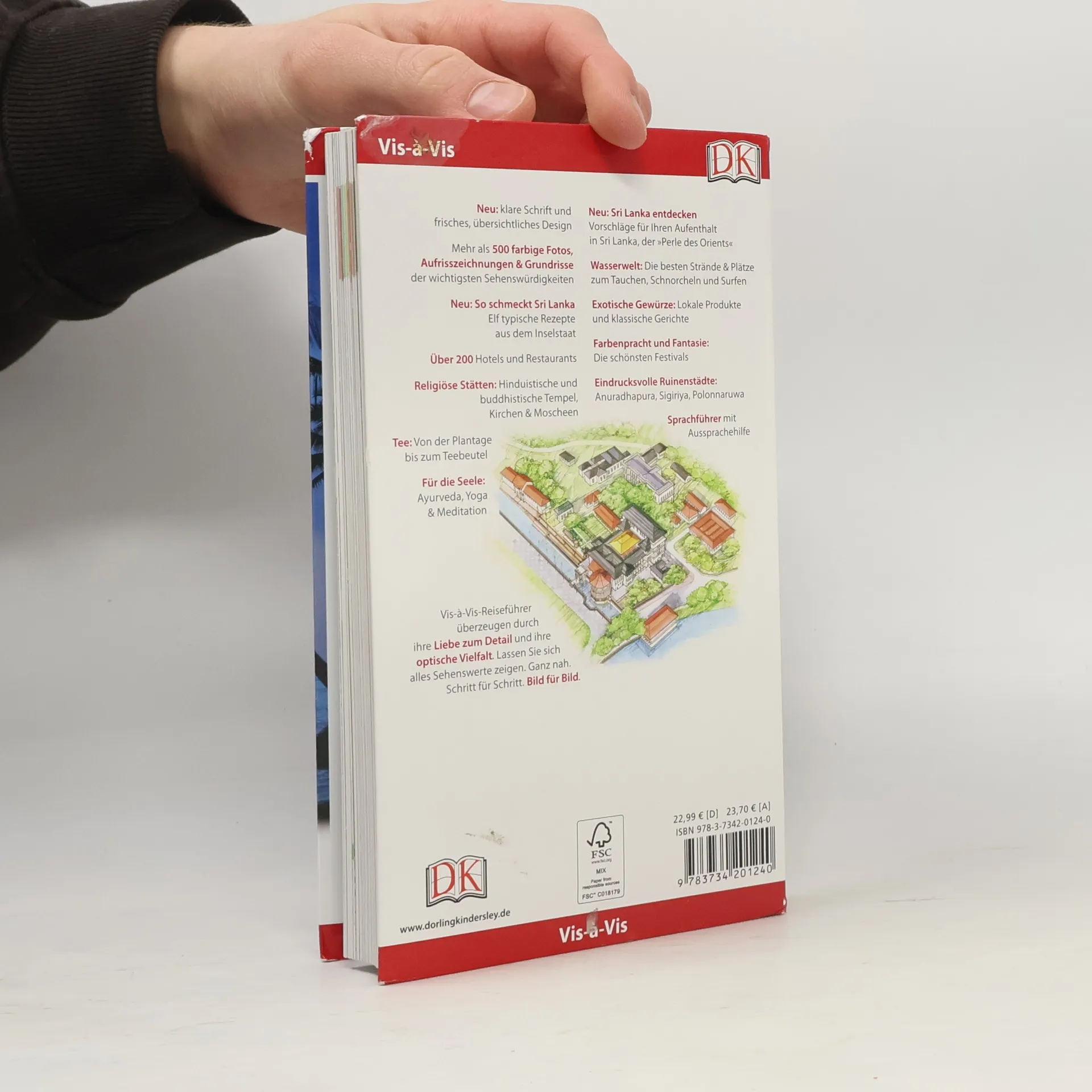 Erleben Sie das vielfältige und gastfreundliche Sri Lanka, das auch die „Perle des Orients“ genannt wird: Ob Wassersporturlaub mit Tauchen und Surfen oder Kulturtrip mit spannenden Besichtigungen religiöser und historischer Stätten - in Sri Lanka können Sie unglaublich viel unternehmen und entdecken! Im Vis-à-Vis Sri Lanka finden Sie für jedes Vorhaben alle Informationen, die Sie benötigen: vom Ayurveda-Resort im Norden über das Strandhotel mit herrlichem Meerblick an der Westküste bis zum traditionellen Restaurant im Osten. Dank detailliertem Stadtplan finden Sie sich in der Hauptstadt Colombo mühelos zurecht. Exotische Gewürze, farbenprächtige Festivals und buddhistische Mudras werden ausführlich beschrieben. Außerdem präsentiert Ihnen der Reiseführer besondere Tipps und Hintergründe zu Kunsthandwerk, Schmuck und Tee. Dazu gibt es ein Mini-Kochbuch zum Herausnehmen mit typischen Gerichten der Region. Die hervorragenden Abbildungen - exakte Schnittzeichnungen, dreidimensionale Grundrisse, Übersichtskarten und Stadtpläne - erleichtern Ihnen die Orientierung vor Ort. Umfangreiche Porträts zu Restaurants, Shopping, Nachtleben und Unterhaltung runden den Reiseführer ab.