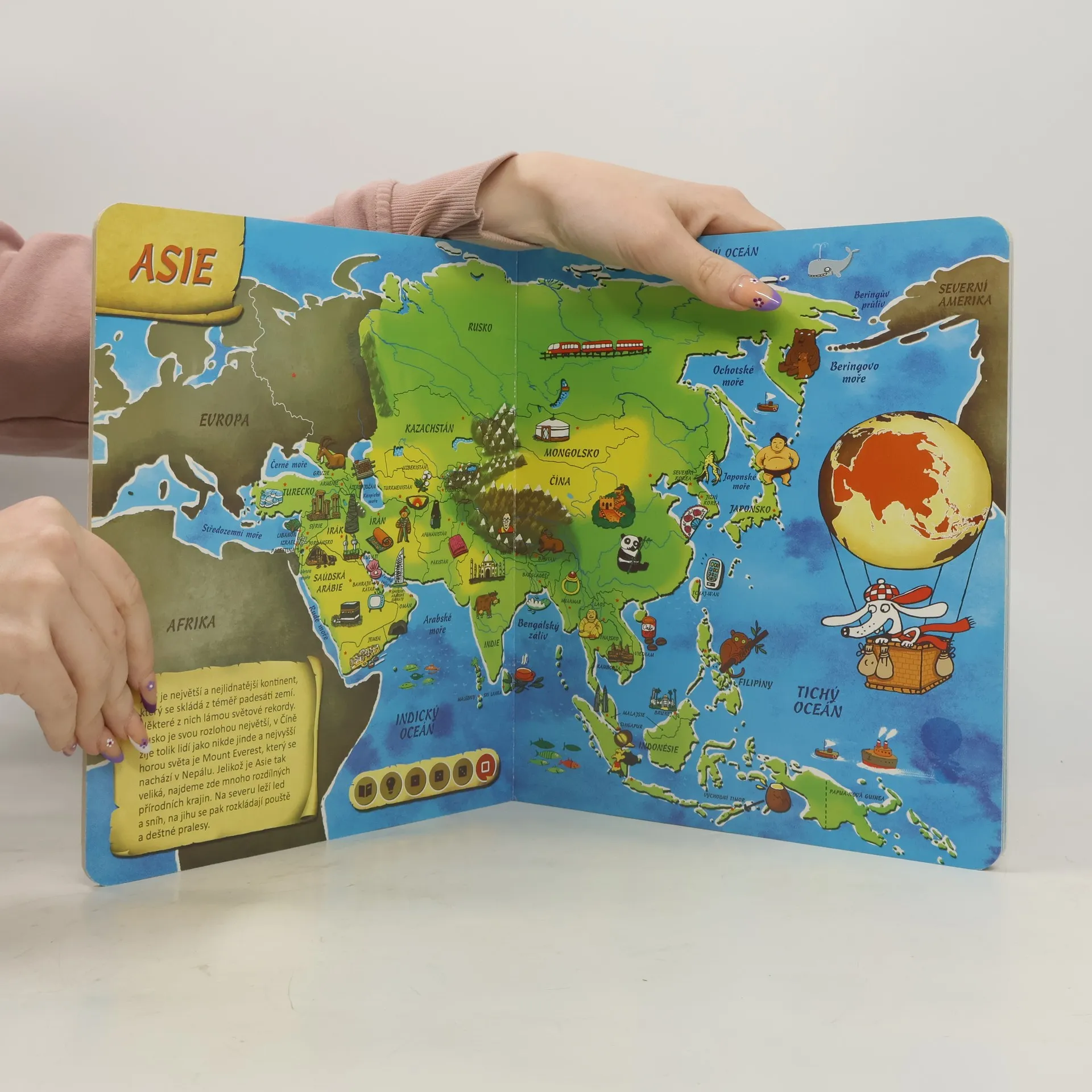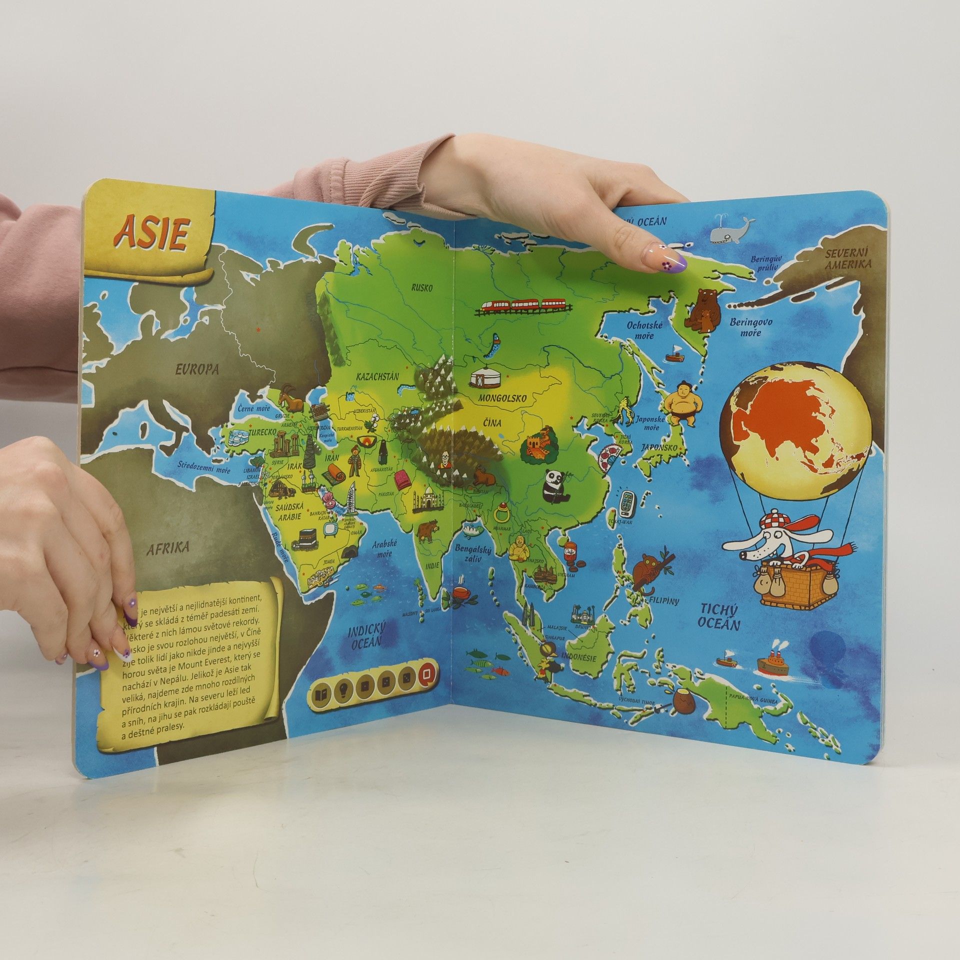 Tato kniha obsahuje osm různých map. Na jednotlivých stranách se seznámíte se všemi kontinenty, poznáte země na naší planetě a zjistíte, kde tyto země leží. Nechybí zde ani oceány, moře, velké řeky a pohoří, které jsou nedílnou součástí naší planety. Obrázky na mapách vám ukáží, jaká zvířata, stavby či jiné zajímavosti můžete v jednotlivých zemích najít. Kniha je namluvena známým českým hercem Otakarem Brouskem ml. Kniha obsahuje přes 1800 zvuků a textů.