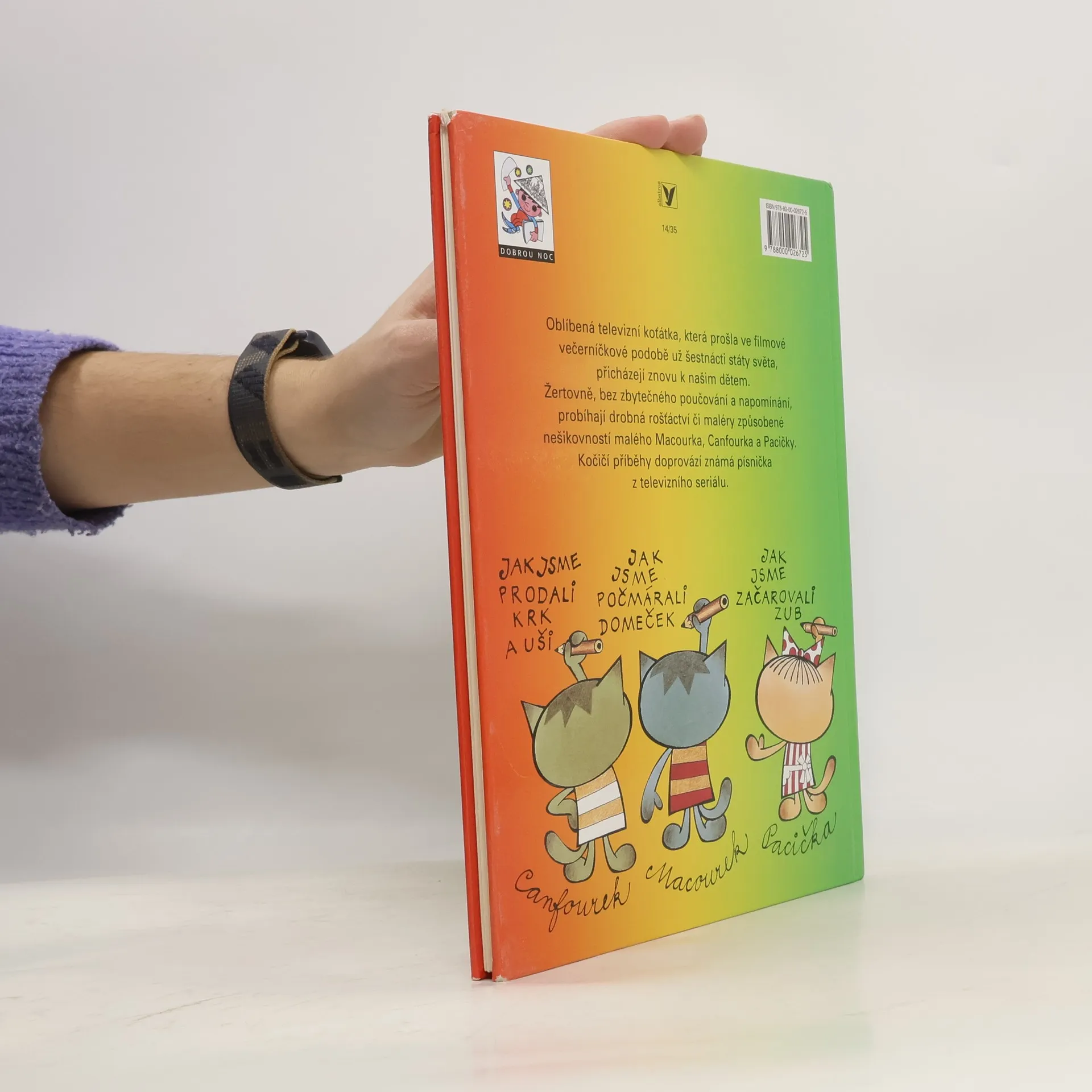 Dobrodružství kočičích kluků Macourka, Canfourka, kočičky Pacičky a jejich rošťáckého kamaráda Kočičáka už děti znají z televizních večerníčků. V knižní podobě vycházejí počtvrté a nad jejich lumpárnami se pobaví jistě i mnozí rodiče. Navíc v knížce najdete i oblíbenou písničku, která večerníček doprovází.