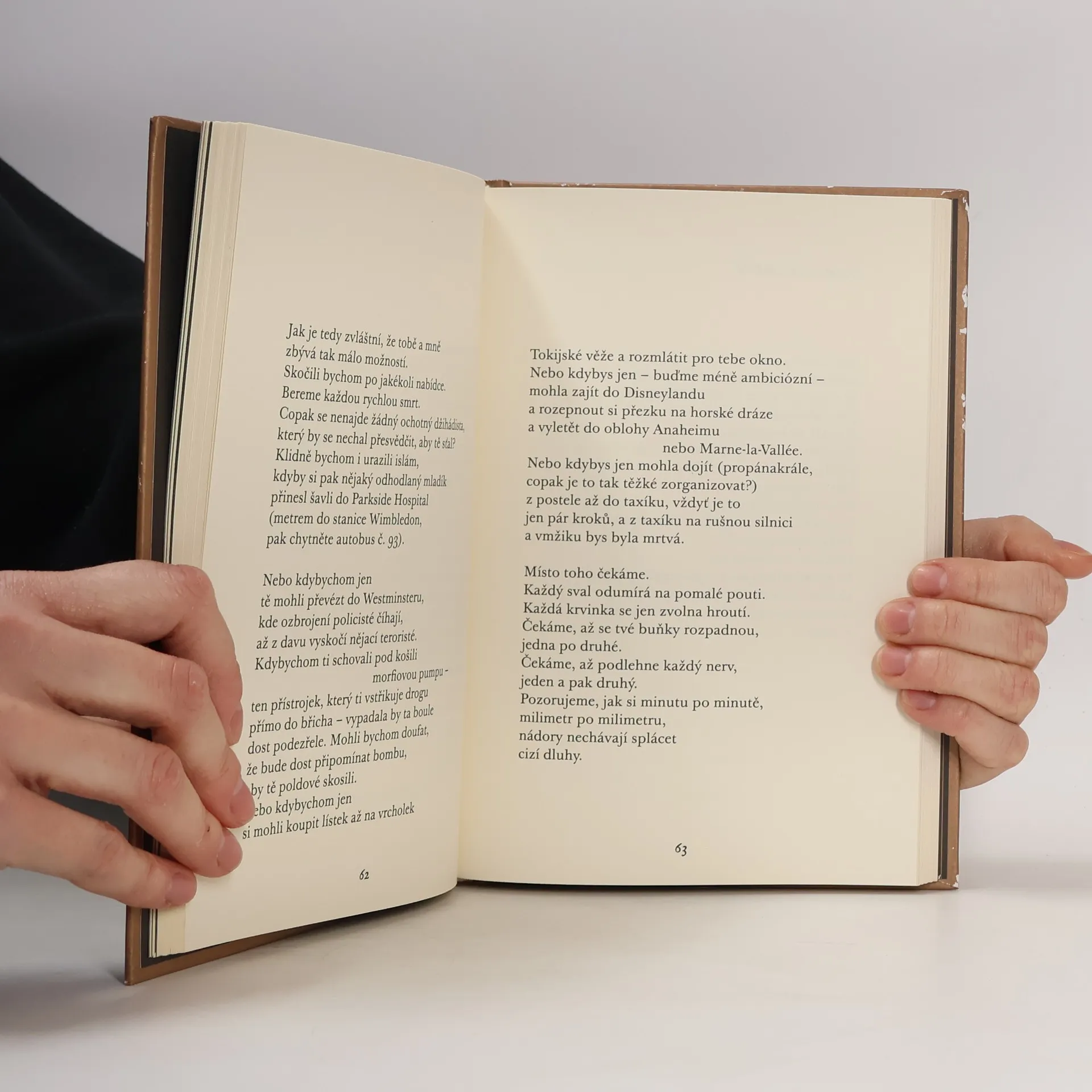 Michel Faber je bytostný prozaik, básním se věnoval jen okrajově a sám vtipkoval, že tímhle tempem bude mít dost materiálu na první sbírku někdy ve svých devadesáti letech. Pak ale po dvaceti letech manželství Faberova žena Eva onemocněla nevyléčitelnou rakovinou kostní dřeně (mnohočetným myelomem, abychom byli přesní) a Faber se vrátil ke své původní profesi, totiž ošetřovatelství. A právě v pokoji londýnské nemocnice, kde Eva strávila poslední měsíce svého života, vznikly první básně z předkládaného cyklu (je jich nakonec něco přes 70, na cca 140 tiskových stranách.) Tematicky se básně omezují na průběh nemoci, Evinu smrt a Faberův žal. Je to poezie nekompromisně upřímná, emocionálně intenzivní, místy protkaná šibeničním humorem. Drtivá většina básní je psaná volným veršem a rýmovaná sporadicky, což je paradoxně její výhoda: je mnohem přístupnější, než poezie obvykle bývá, a účinek je bezprostřednější. V těchto básních, jež ocenily i takové těžké literární váhy jako Ian McEwan, přišel Michel Faber na něco obecně sdělného: co to znamená najít životní lásku a pak ji takhle krutým způsobem ztratit. Dal hlas lidem, kteří o rakovině kvůli přetrvávajícímu tabu neumí mluvit, nemocným, kteří si své pocity nechávají pro sebe.