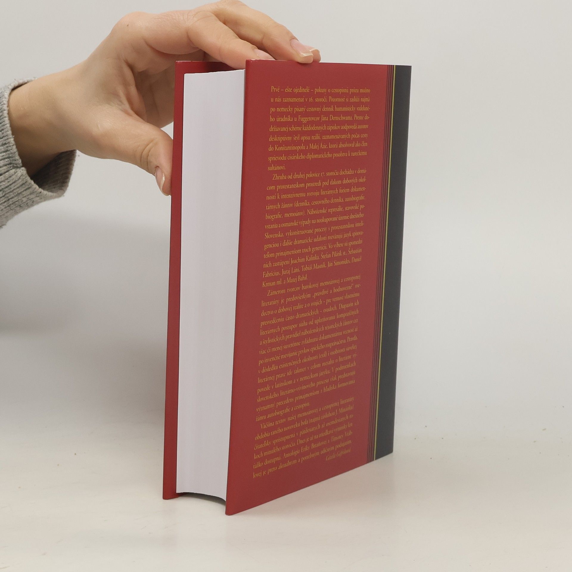 Editor: Erika Brtáňová a Timotea Vráblová Cestovanie v 16. a 18. storočí malo pre súvekého človeka viacero významov. Niekedy bolo poznávaním a dobrodružstvom spojeným so stretávaním sa s cudzími kultúrami. Tiež symbolicky znázorňovalo putovanie dočasným pozemským životom. Memoáre a cestopisy slovenských protestantov obsahujú obidve formy. Zápisky humanistického vzdelanca Jána Dernschwama, člena diplomatického sprievodu vyslaného panovníkom Ferdinandom I. k tureckému sultánovi Sulimanovi, približujú cudzie kraje a kultúru očami cestovateľa. Skúsenosti Štefana Pilárika st. zasa vychádzajú z vynúteného putovania, spojeného s útekom v období tureckých nájazdov. Tristný a primerane dobrodružný charakter majú aj cesty slovenských protestantov Štefana Fabrícia, Juraja Lániho, Jána Simonidesa, Tobiáša Masníka a Mateja Bahila. Ich cesta na galeje je dôsledkom prenasledovania protestantov v 17. – 18. storočí. Ich rozprávania obsiahli nielen ten vonkajší, ale aj vlastný vnútorný svet. Silnú výpovednú hodnotu majú aj memoárové zápisky Joachima Kalinku z Diária. Zachytávajú zložitý vnútorný proces, v ktorom sa človek vyrovnáva s psychickým nátlakom a týraním, a odhodlane sa usiluje voči nemu stáť.