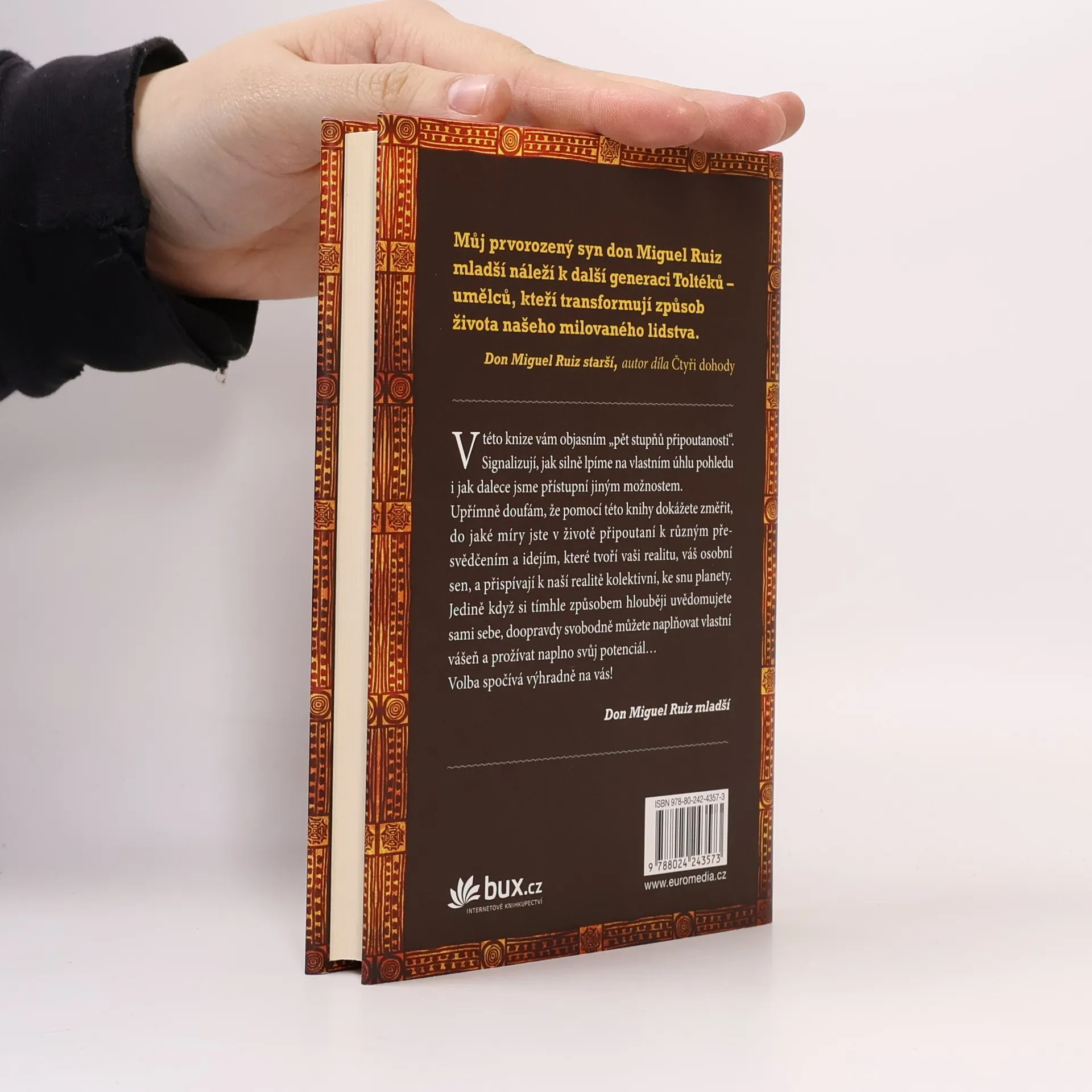 Don Miguel Ruiz mladší je syn slavného autora knih o šamanismu a spiritualitě (Čtyři dohody). Jeho dílo může změnit život milionům čtenářů, neboť díky němu porozumí, jak svým sklonem k určité náklonnosti si v životě vytváříme připoutanost a ta pak ovlivňuje veškerá naše rozhodnutí. Různé úrovně připoutanosti nás vlastně udržují v psychologické i duchovní pasti, ze které nemůžeme snadno uniknout. Autor velmi srozumitelným způsobem radí, jak se můžeme bdělým, pozorným přístupem takové připoutanosti postupně zbavovat, abychom dosáhli vnitřní svobody.