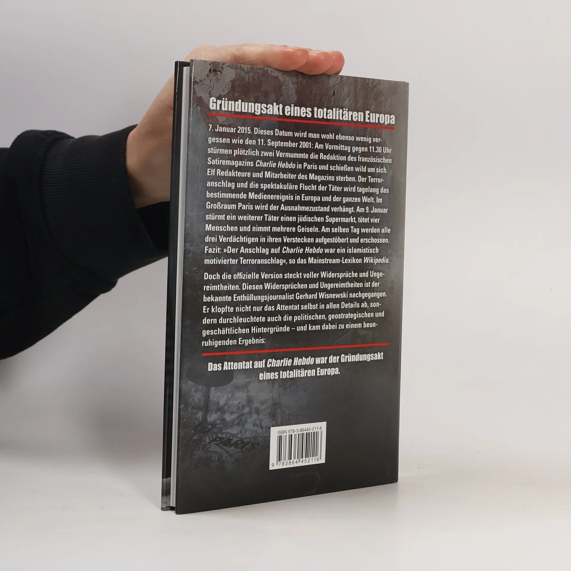 Am 7. Januar 2015 stürmen zwei Vermummte die Redaktion des französischen Satiremagazins Charlie Hebdo in Paris und eröffnen das Feuer, was zu elf Toten führt. Dieser Terroranschlag und die anschließende Flucht der Täter dominieren tagelang die Medienberichterstattung weltweit. Im Großraum Paris wird der Ausnahmezustand ausgerufen. Am 9. Januar überfällt ein weiterer Täter einen jüdischen Supermarkt, tötet vier Menschen und nimmt Geiseln. Alle Verdächtigen werden später erschossen. Offiziell wird der Anschlag als islamistisch motiviert eingestuft, doch es bleiben viele Fragen offen: Warum beging ein führender Ermittler Selbstmord? Warum ähnelten die Täter Angehörigen eines Sondereinsatzkommandos? Warum war die Polizei nicht vor Ort? Warum hatten die Täter einen Personalausweis dabei? Was motivierte sie zu einem Massaker, obwohl sie bereits im Fokus der Behörden standen? Türkische und andere hochrangige Persönlichkeiten äußerten Zweifel an der offiziellen Version und vermuteten ein Komplott. Der Journalist Gerhard Wisnewski untersucht die Widersprüche und Ungereimtheiten des Falls und beleuchtet die politischen und geschäftlichen Hintergründe. Sein Ergebnis ist alarmierend: Der Anschlag auf Charlie Hebdo war der Gründungsakt eines totalitären Europa.