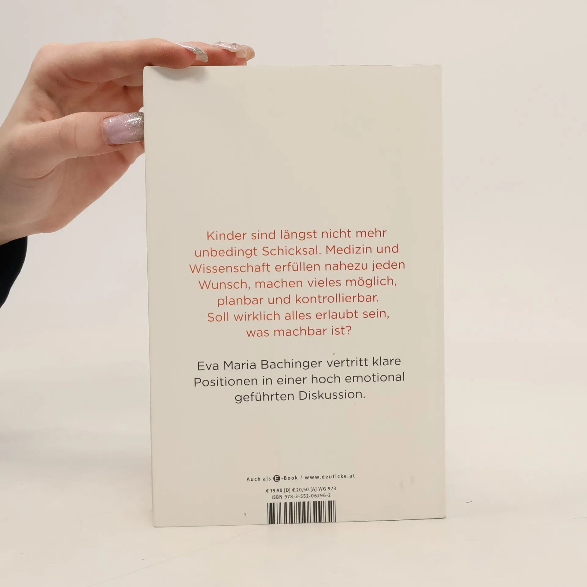 Kinder sind längst nicht mehr unbedingt Schicksal. Medizin und Wissenschaft erfüllen nahezu jeden Wunsch nach Schwangerschaft, machen alles möglich, planbar und kontrollierbar. Wer sich sehnlichst ein eigenes Kind wünscht, dem kann heute einfach geholfen werden. Und zwar ganz egal, in welcher Lebens- und Beziehungssituation. Eva Maria Bachinger plädiert in ihrem Buch dafür, dass wir die Fragen zu Ethik und Moral rund um Reproduktionsmedizin und Präimplantationsdiagnostik ehrlich diskutieren, bevor Gesetze liberalisiert und Tabus gebrochen werden.