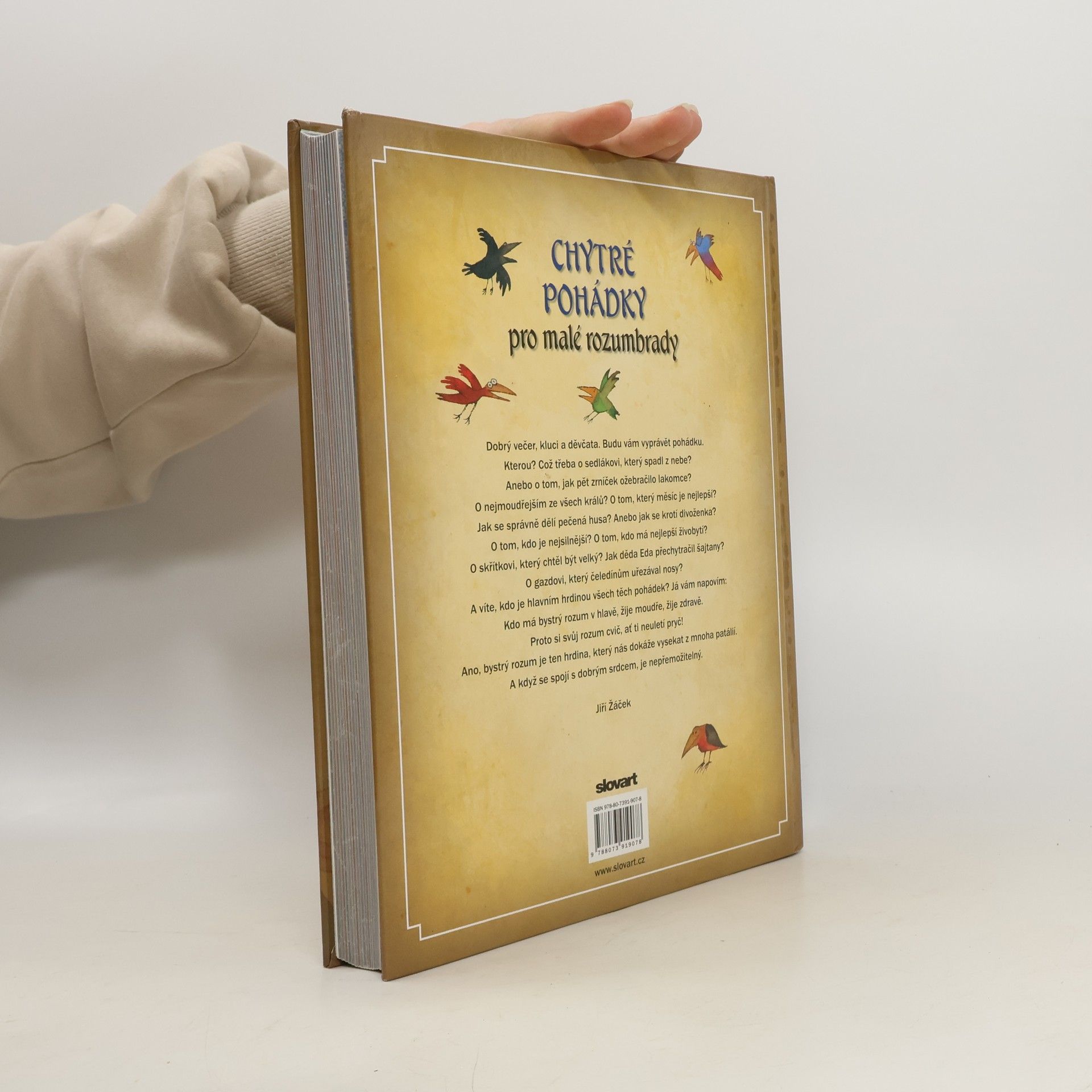 Kromě fantastických pohádek, kde se to hemží nadpřirozenými bytostmi a čaruje se ostošest, existují i pohádky, ve kterých se nevyskytují pohádkové obludy, kde nevítězí mocné kouzlo či hrubá síla, ale navrch má rozum, moudrost a vtip. Hrdiny chytrých pohádek bývají lidé zdánlivě obyčejní, kteří se v životních zkouškách téměř vždy osvědčí jako lidé naopak neobyčejní, moudří a stateční. Posilují naše sebevědomí a připomínají nám, že k vítězství nad lží a nelidskostí nepotřebujeme čaromocný meč ani pohádkového dědečka, stačí mít kuráž, bystrý rozum a dobré srdce. Není to sympatický vzkaz dávných pohádkářů dnešním rozumbradům a rozumbradkám? Kniha chytrých pohádek plných humorných situací a vtipných nápadů je třetí ze série velkých pohádkových sbírek v převyprávění Jiřího Žáčka a s ilustracemi Adolfa Borna.