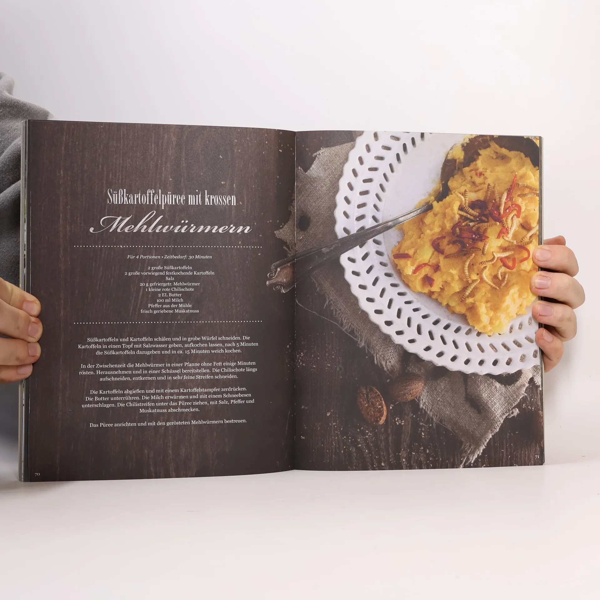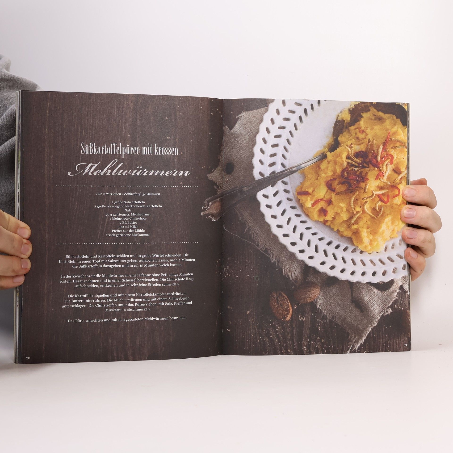 Frittierte Heuschrecken mit Chili, geröstete Mehlwürmer auf Kräuterbett, Grillen mit Honig und Sesam, feine Buffalowurm-Pralinen: Das sind nur einige „Kostproben“ aus diesem Buch, die zeigen, dass Insekten überraschend gut schmecken – nussig, würzig, einfach lecker! Nicht umsonst gelten sie in vielen Ländern der Welt als Delikatesse und stehen bei über zwei Milliarden Menschen auf dem Speiseplan. Und auch in Europa ist man gerade dabei, das Potenzial von Speise-Insekten, die man im Internet und in ausgesuchten Feinkostläden kaufen kann, zu entdecken. Denn sie sind reich an Proteinen, Vitaminen und Ballaststoffen und was ihre Aufzucht betrifft, besonders klimafreundlich.