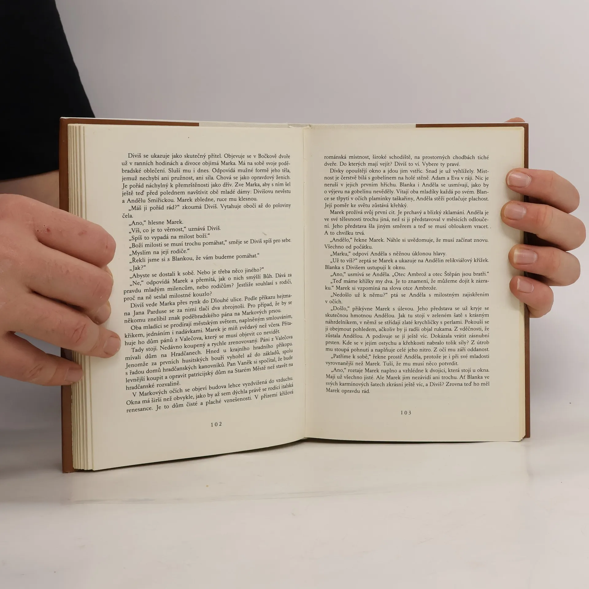Autor sáhl pro námět až do 15. století, do nejisté a rozporné doby, kdy po rozbití husitského hnutí začíná Jiřík z Poděbrad usilovat o sjednocení Českého království, o vytvoření pevného státního útvaru. Zachycuje první počátky Poděbradova státnického díla, vykresluje "husitskéhokrále" jako cílevědomého a uvážlivého diplomata, avšak hlavní pozornost popřává dvojici zamilovaných lidí z jeho dvora: kupeckému synku Markovi z Týnce a dceři významného českého šlechtice Anděle Smiřické, jejichž vztah i osud jako by zrcadlily rozpory a tíži tehdejší doby.