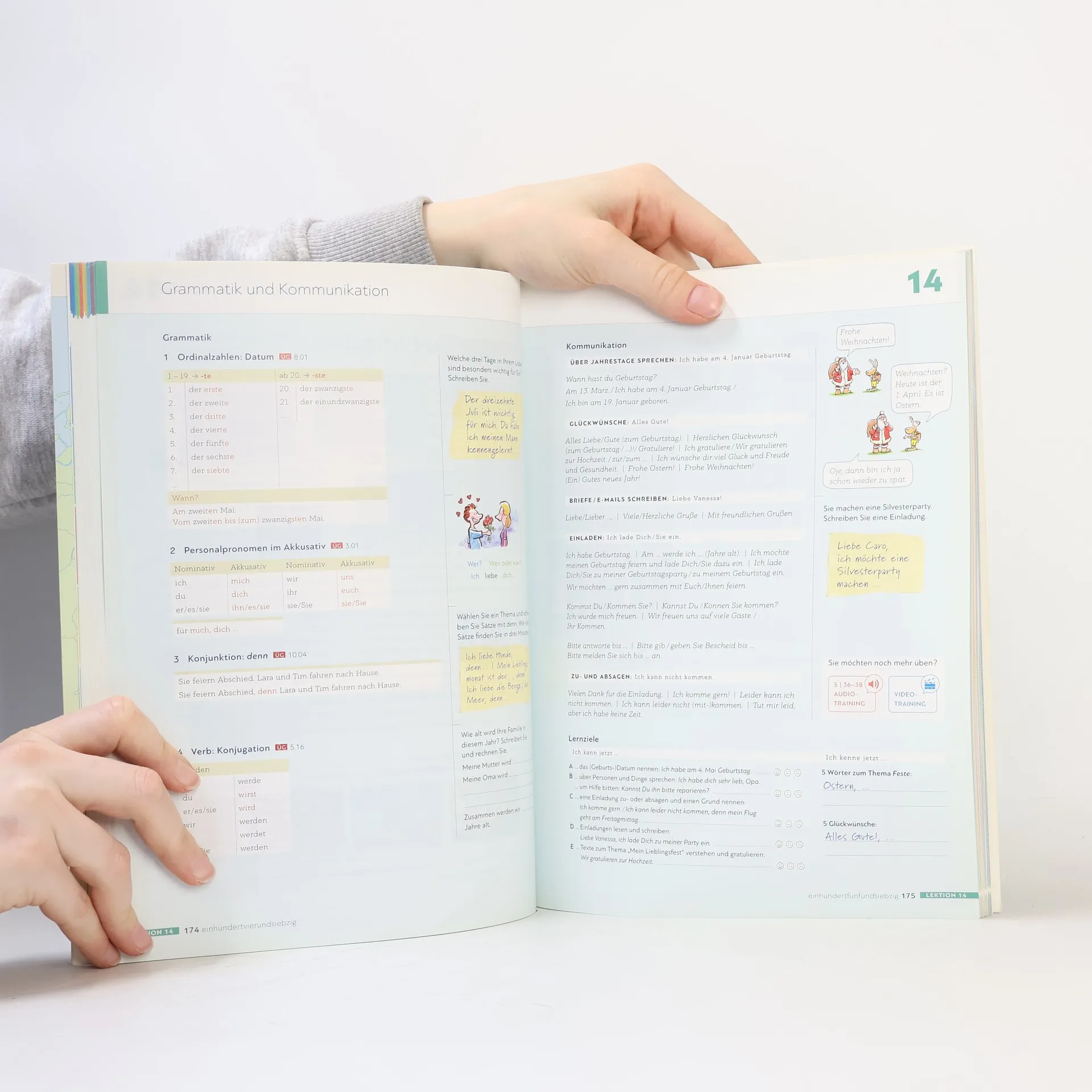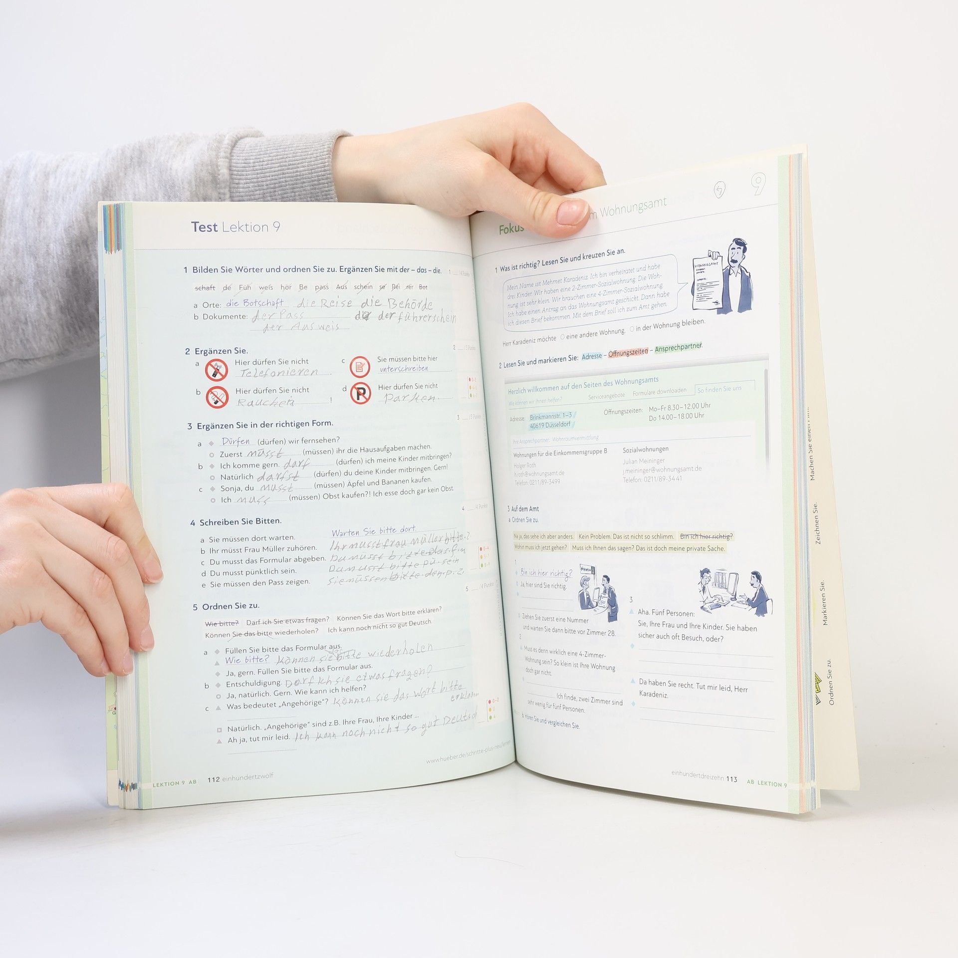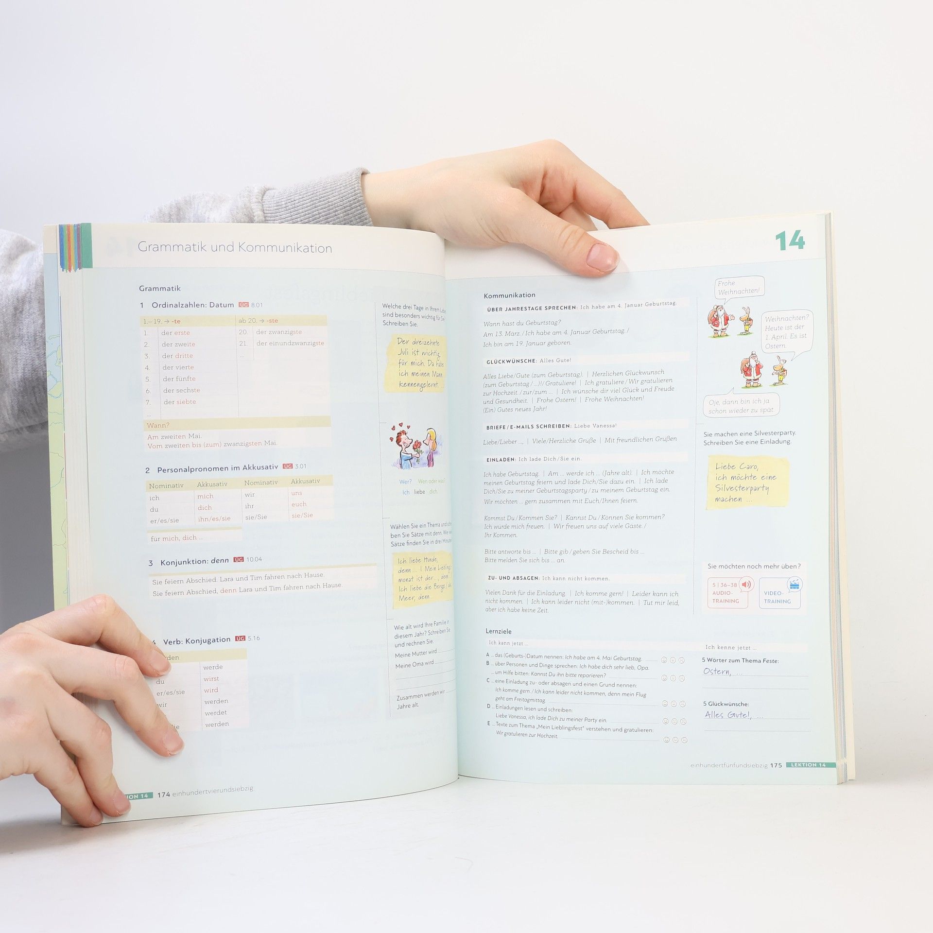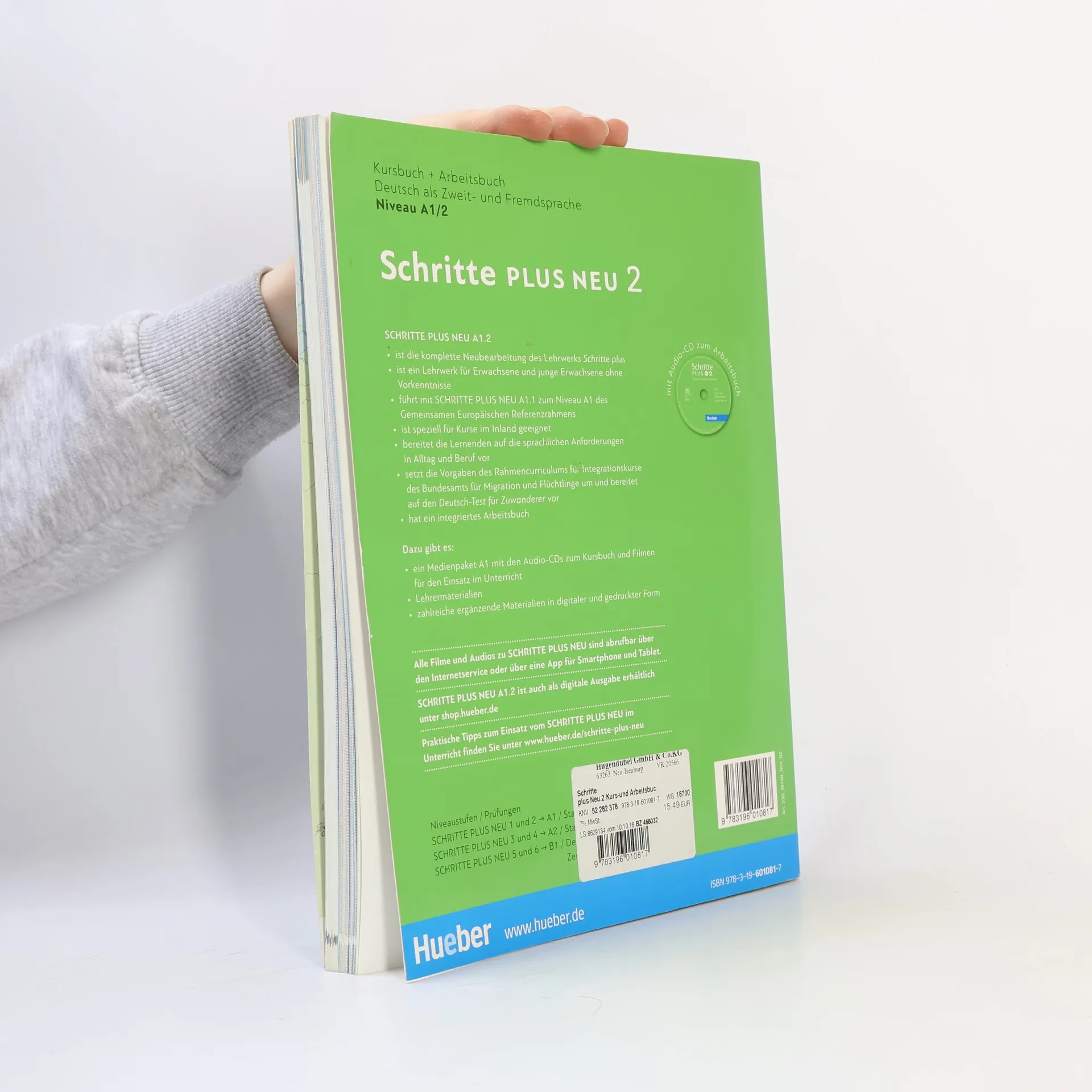 Zielniveau A1.2 - wahlweise als Halb- oder Vollband erhältlich - alle Lektionen folgen einem klaren Aufbau für hohe Lerntransparenz - neue Foto-Hörgeschichten als Einstieg in jede Lektion - interessante Texte und vielfältige Landeskunde - induktive Grammatik fördert Bewusstmachung und Verständnis - Vorbereitung auf den Berufsalltag durch verstärkten Berufsbezug - Stärkung der Lernerautonomie durch eine Doppelseite zu Grammatik und Redemitteln mit Übungen und Lernhilfen am Ende jeder Lektion - Transparenz durch Lernziele mit der Möglichkeit zur Selbsteinschätzung - flexible Ergänzung der Lektionsinhalte durch die „Zwischendurch mal …-Seiten“