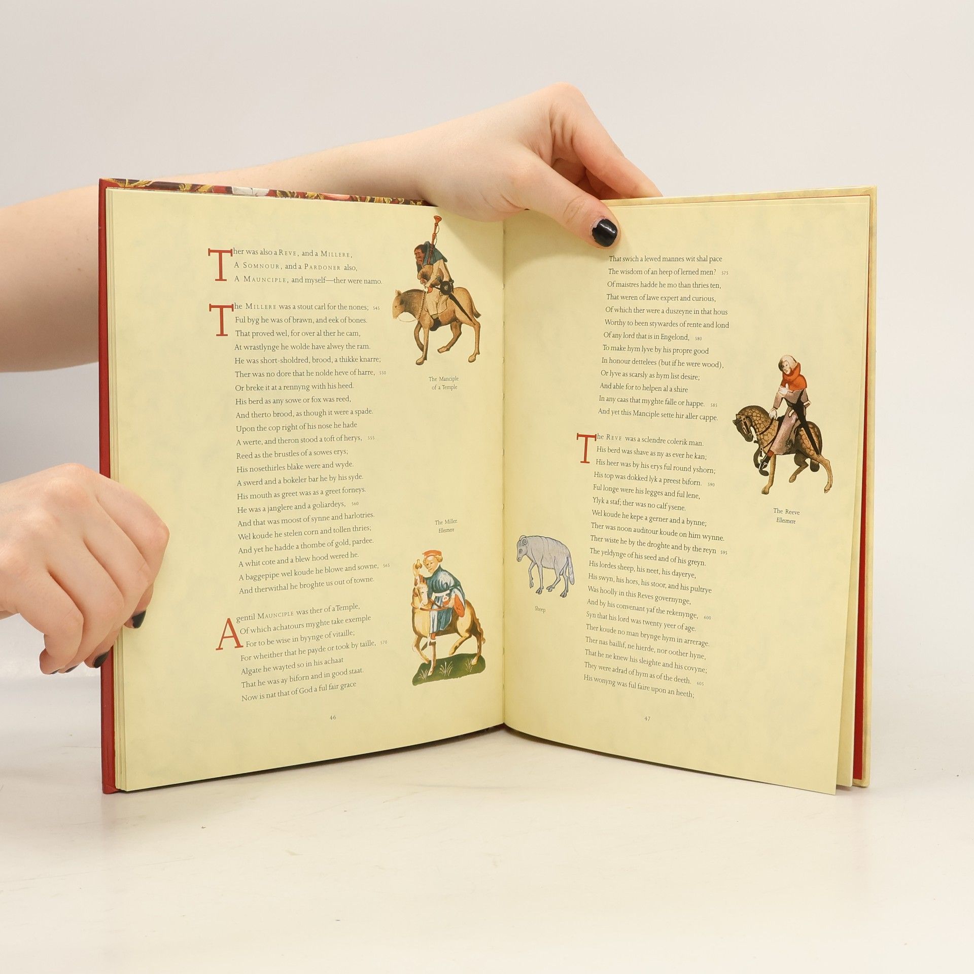 The procession that crosses Chaucer's pages is as full of life and as richly textured as a medieval tapestry. The Knight, the Miller, the Friar, the Squire, the Prioress, the Wife of Bath, and others who make up the cast of characters -- including Chaucer himself -- are real people, with human emotions and weaknesses. When it is remembered that Chaucer wrote in English at a time when Latin was the standard literary language across western Europe, the magnitude of his achievement is even more remarkable. But Chaucer's genius needs no historical introduction; it bursts forth from every page of The Canterbury Tales. If we trust the General Prologue, Chaucer intended that each pilgrim should tell two tales on the way to Canterbury and two tales on the way back. He never finished his enormous project and even the completed tales were not finally revised. Scholars are uncertain about the order of the tales. As the printing press had yet to be invented when Chaucer wrote his works, The Canterbury Tales has been passed down in several handwritten manuscripts.