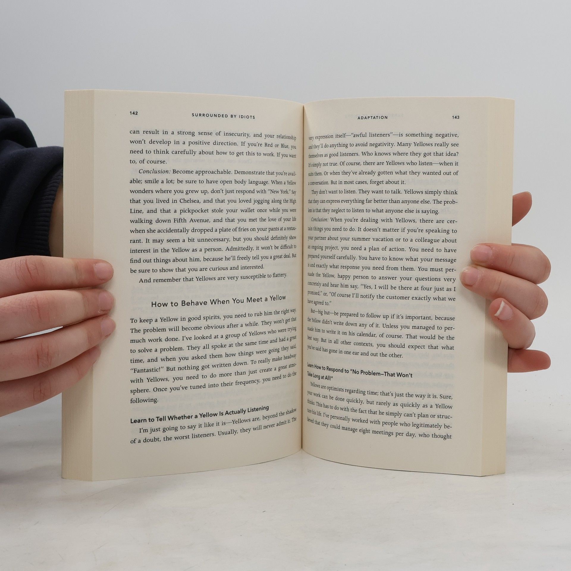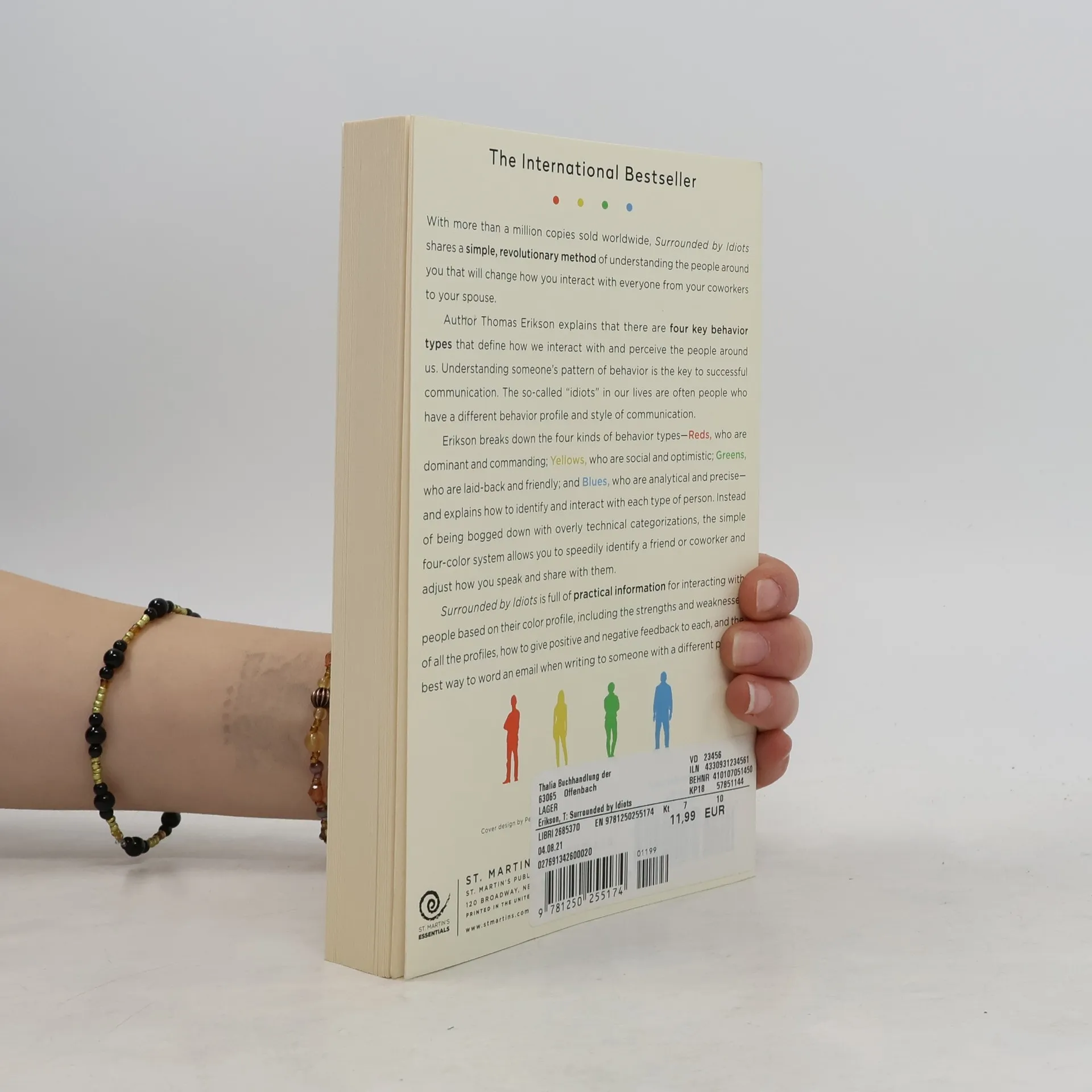 A runaway bestseller in Sweden that has sold more than a million copies worldwide, Surrounded by Idiots shares a groundbreaking new method of understanding the people around you that will change how you interact with everyone from your coworkers to your spouse. Author Thomas Erikson explains that there are four key behavior types that define how we interact with and perceive the people around us. Understanding someone's pattern of behavior is the key to successful communication. Erikson breaks down the four kinds of behavior types--Reds who are dominant and commanding, Yellows who are social and optimistic, Greens who are laid back and friendly, and Blues who are analytical and precise--and explains how to identify and interact with each type of person. Instead of being bogged down with overly technical categorizations, the simple four color system allows you to speedily identify a friend or coworker and adjust how you speak and share with them. Surrounded by Idiots is full of practical information for interacting with people based on their color, including the strengths and weaknesses of all the profiles, how to give positive and negative feedback to each, and the best way to word an email when writing to someone with a different profile.