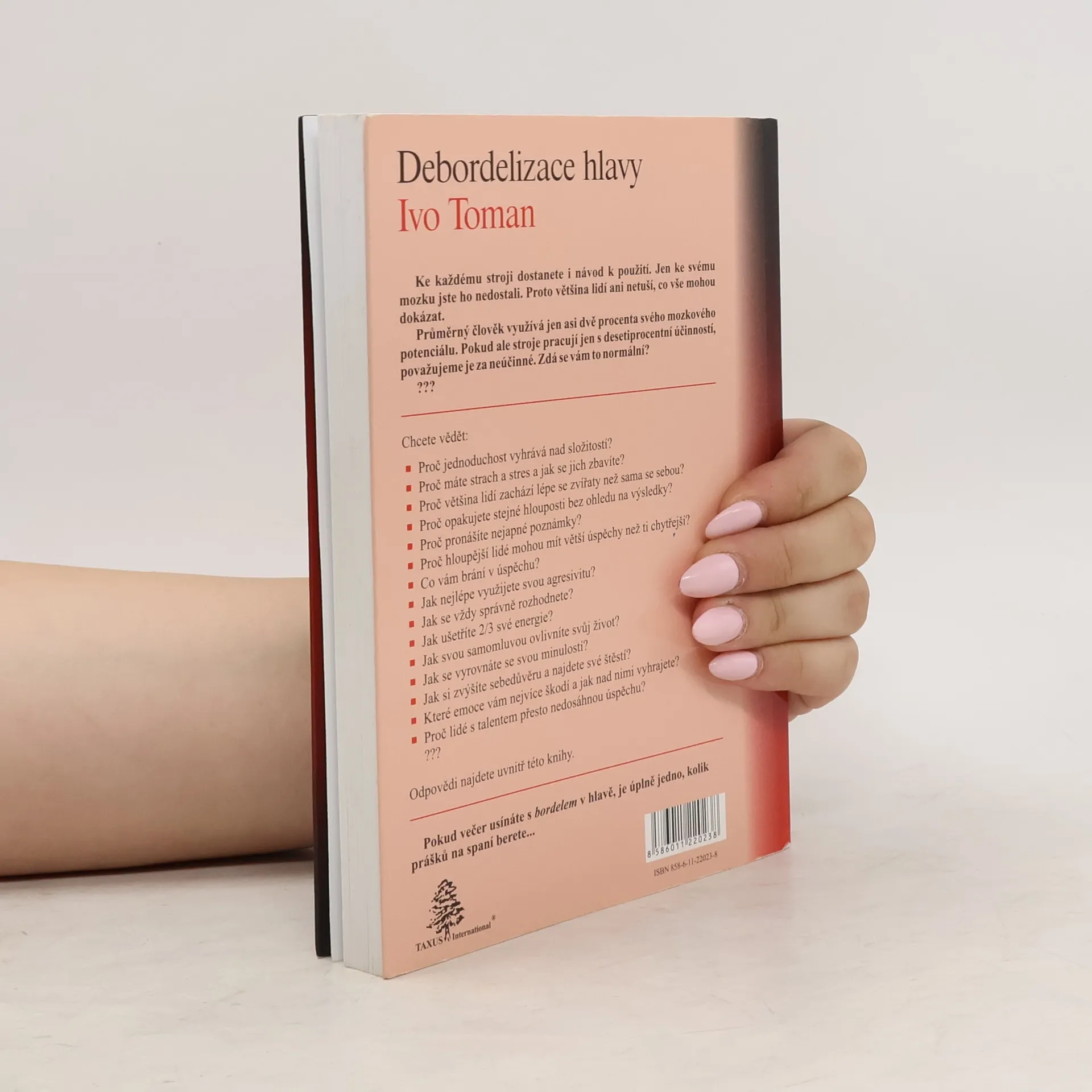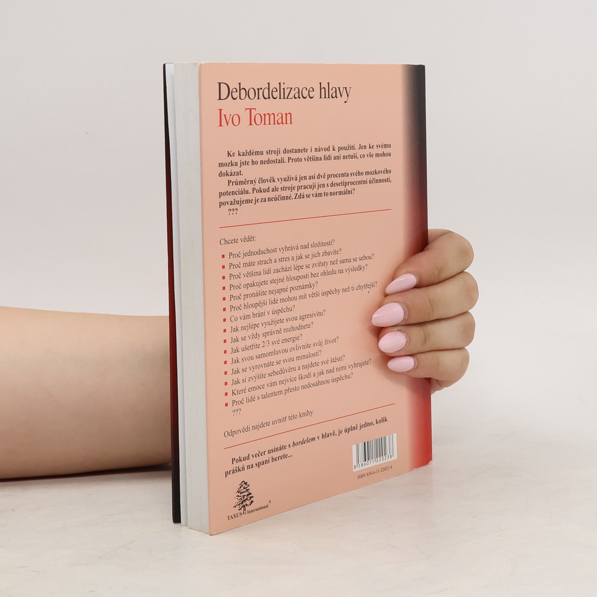 Ke každému stroji dostanete i návod k použití. Jen ke svému mozku jste ho nedostali. Proto většina lidí ani netuší, co vše mohou dokázat. Průměrný člověk využívá jen asi dvě procenta svého mozkového potenciálu. Pokud ale stroje pracují jen s desetiprocentní účinností, považujeme je za neúčinné. Zdá se vám to normální? Chcete vědět: ■ Proč jednoduchost vyhrává nad složitostí? ■ Proč máte strach a stres a jak se jich zbavíte? ■ Proč většina lidí zachází lépe se zvířaty než sama se sebou? ■ Proč opakujete stejné hlouposti bez ohledu na výsledky? ■ Proč pronášíte nejapné poznámky? ■ Proč hloupější lidé mohou mít větší úspěchy než ti chytřejší? ■ Co vám brání v úspěchu? ■ Jak nejlépe využijete svou agresivitu? ■ Jak se vždy správně rozhodnete? ■ Jak ušetříte 2/3 své energie? ■ Jak svou samomluvou ovlivníte svůj život? ■ Jak se vyrovnáte se svou minulostí? ■ Jak si zvýšíte sebedůvěru a najdete své štěstí? ■ Které emoce vám nejvíce škodí ajak nad nimi vyhrajete? ■ Proč lidé s talentem přesto nedosáhnou úspěchu? Odpovědi najdete uvnitř této knihy. Pokud večer usínáte s bordelem v hlavě, je úplně jedno, kolik prášků na spaní berete...