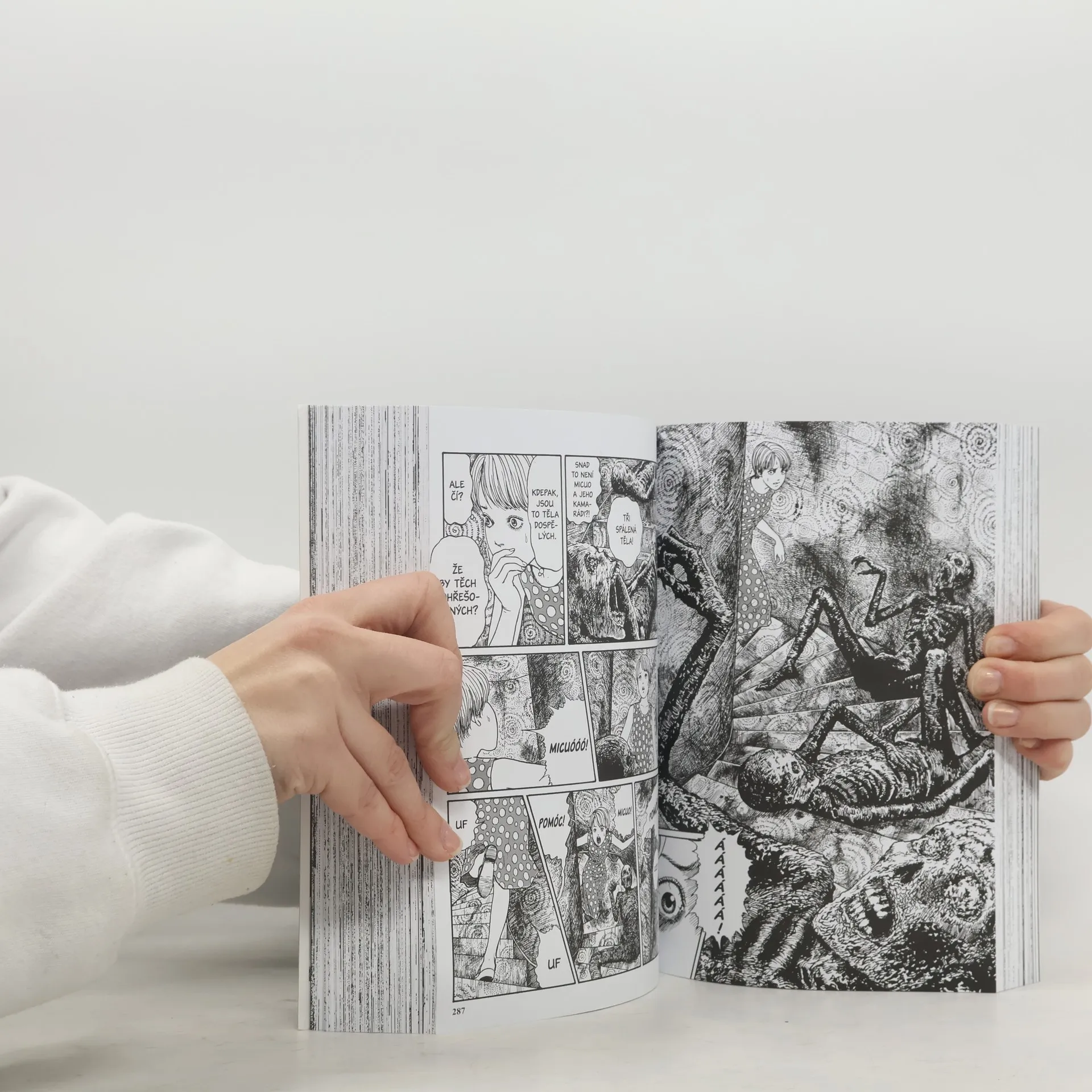 Jedno obyčejné japonské maloměsto zachvátila posedlost spirálami. Objevují se všude. V očích, vlasech, ve stěnách domů – a postupně kolem sebe všechno proměňují. Bojovat můžete s démony, přízraky, duchy… ale jak chcete bojovat s tvarem? Monumentální hororový příběh je provázanou sérií děsivých povídek na téma spirál. A budete žasnout, kam až s tím dokáže Džundži Itó, expert na temnotu a deformace těla, dojít. Nové, vylepšené vydání legendární mangy japonského mistra hororu – celé kompletně v jednom svazku a s bonusovou povídkou navíc!