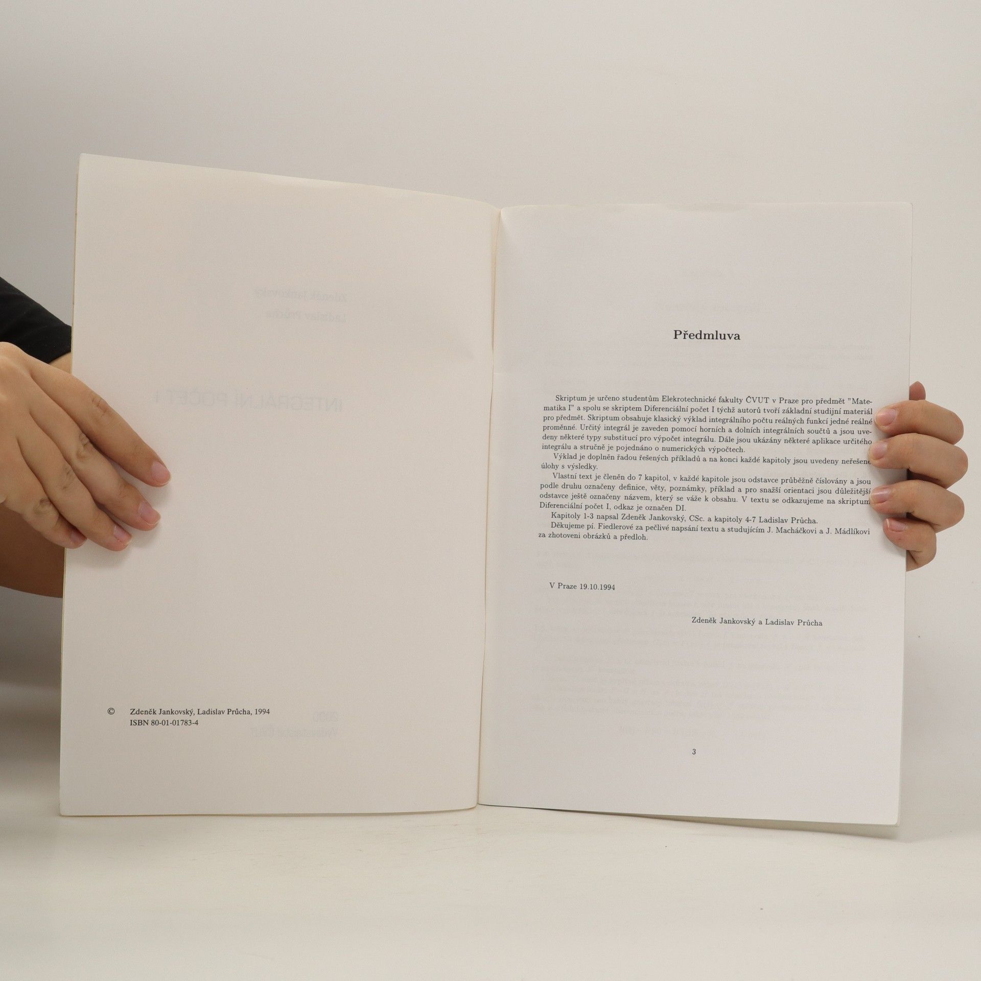Integrální počet I, Zdeněk Jankovský, Ladislav Průcha