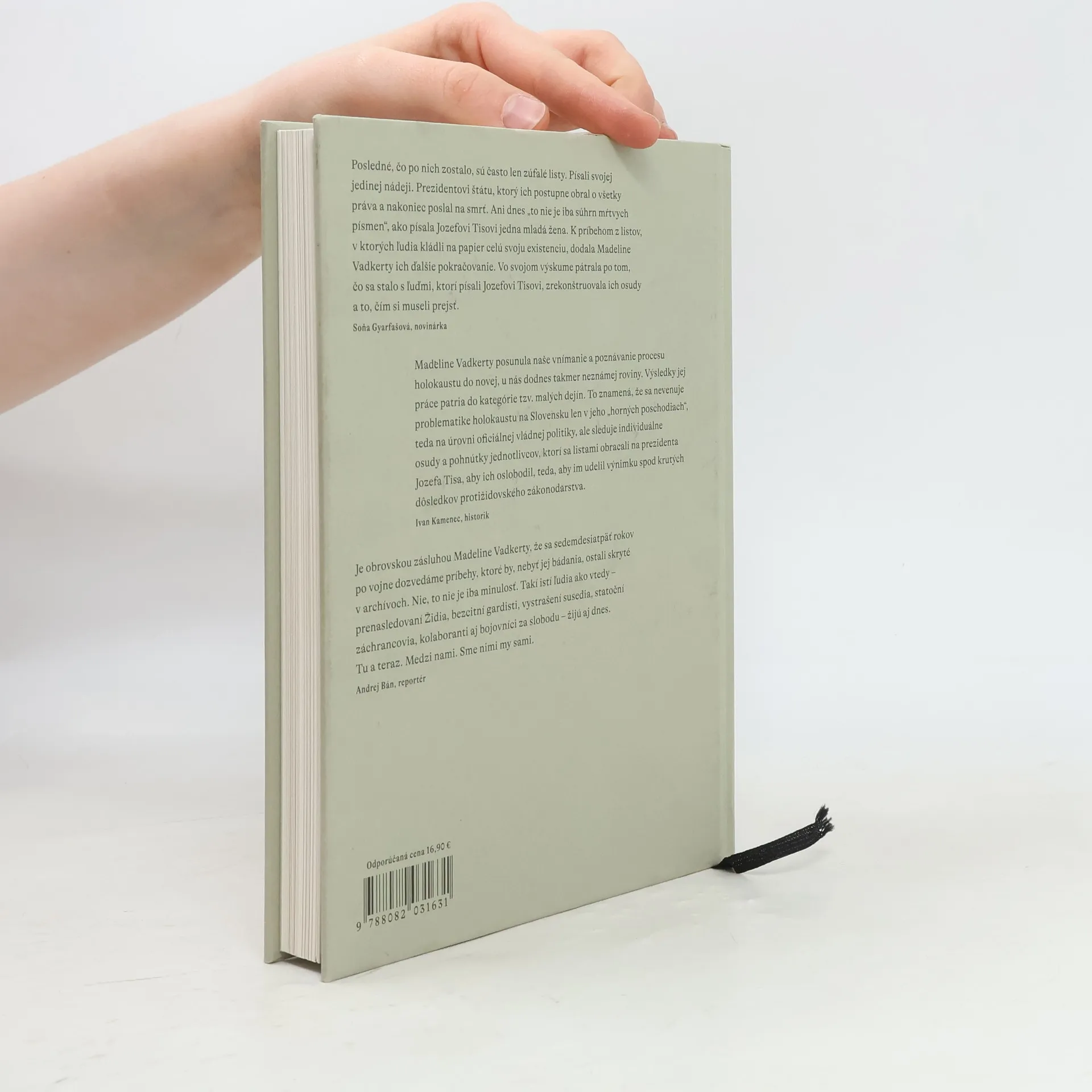 Listy Tisovi o židovskej otázke 1939 – 1944. Jediná nádej. Posledná záchrana. Dobrý otec. Aj takýmito slovami sa obracali mnohí slovenskí Židia vo svojich listoch na prezidenta vojnového Slovenského štátu Jozefa Tisa. Očakávali od neho záchranu, milosť, pomoc v ťažkých chvíľach, do ktorých sa dostali po vydaní rozsiahlych protižidovských zákonov. Američanka Madeline Vadkerty objavila v Slovenskom národnom archíve plné škatule takýchto listov a rozhodla sa pátrať po ďalších osudoch ich pisateľov. Tie osudy boli vo veľkej väčšine prípadov tragické. V knihe Slovutný pán prezident s podtitulom Listy Tisovi o židovskej otázke 1939 – 1944 nám ponúka trinásť silných dokumentárnych poviedok, ktoré otvárajú málo známe kapitoly holokaustu na Slovensku. Sprevádza nás však aj svojím výskumom, a tak sa celkom prirodzene stávame svedkami otvárania nezahojených bolestivých rán našej nedávnej histórie.