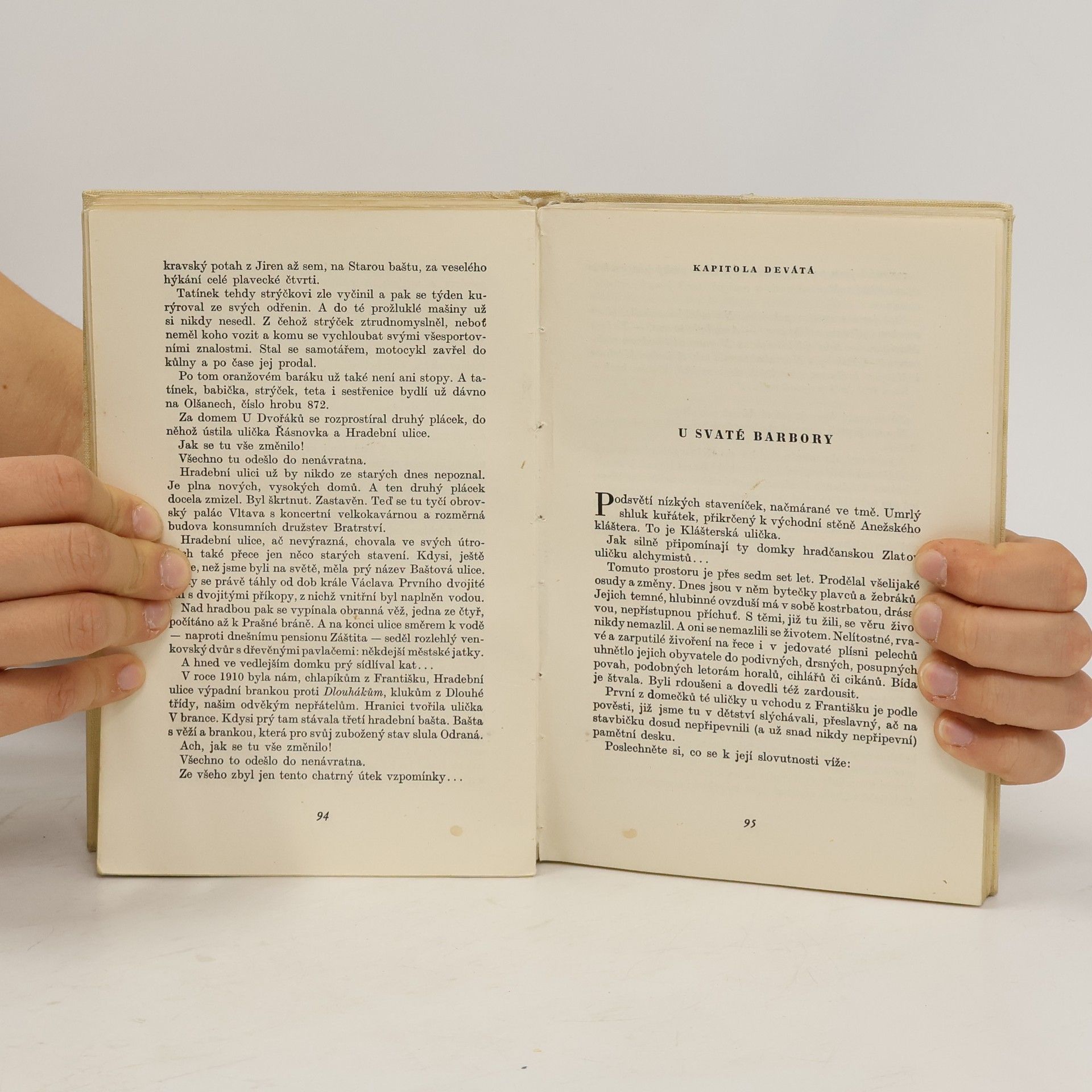 Historky a fota staropražské čtvrti Na Františku a okolí. Dílo naplněné láskou ke staré Praze a jejímu lidu, kniha spojující formu kulturně historické reportáže s lyrickými vzpomínkami na zážitky vlastního autorova dětství, prožitého v prvních letech našeho století v chudobné pražské čtvrti Na Františku. Včeličkova kniha je něco jako stará fotografie. Jejím vlastním tématem je nostalgie zaniklých míst, na něž se rozpomíná v příbězích z dětství, v popisech uliček, které byly zbořeny v různých dobách, ať už v době proslulé pražské asanace na přelomu 19. a 20. století, či později, v době druhé světové války. Ocitneme se na místech s pozoruhodnými názvy charakterizující křivolakost zákoutí jako Myší díra, před domy s ponurými názvy jako U černé ruky, u vltavského břehu, na němž ještě nebylo vybudováno nábřeží, jak je známe dnes, který ale v té době ještě spojoval s druhým břehem Vltavy řetězový most Františka Josefa I.. Představu dokreslují reprodukce dochovaných fotografií, které podtrhují dokumentární charakter knihy, zatímco onen poetický rozměr může pokračovat v našem snění o dávných časech.