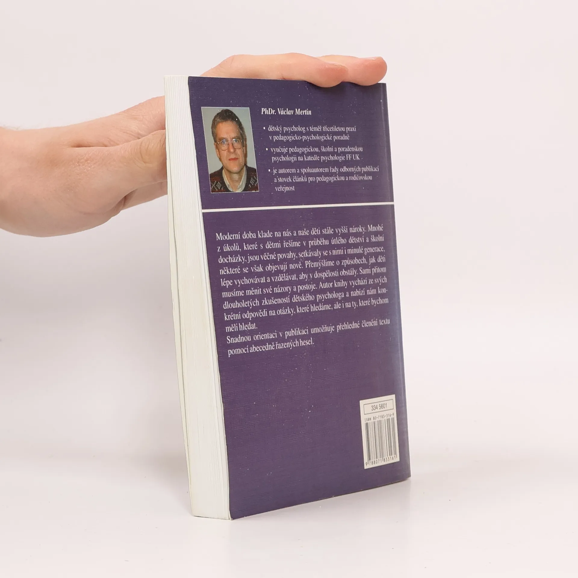 Moderní doba klade na nás a naše děti stále vyšší nároky. Mnohé z úkolů, které s dětmi řešíme v průběhu útlého dětství a školní docházky, jsou věčné povahy, setkávaly se s nimi minulé generace, některé se však objevují nově. Přemýšlíme o způsobech, jak děti lépe vychovávat a vzdělávat, aby v dospělosti obstály. Sami přitom musíme měnit své názory a postoje. Autor knihy vychází ze svých dlouholetých zkušeností dětského psychologa a nabízí nám konkrétní odpovědi na otázky, které hledáme, ale i na ty, které bychom měli hledat. Snadnou orientaci v publikaci umožňuje přehledné členění textu pomocí abecedně řazených hesel