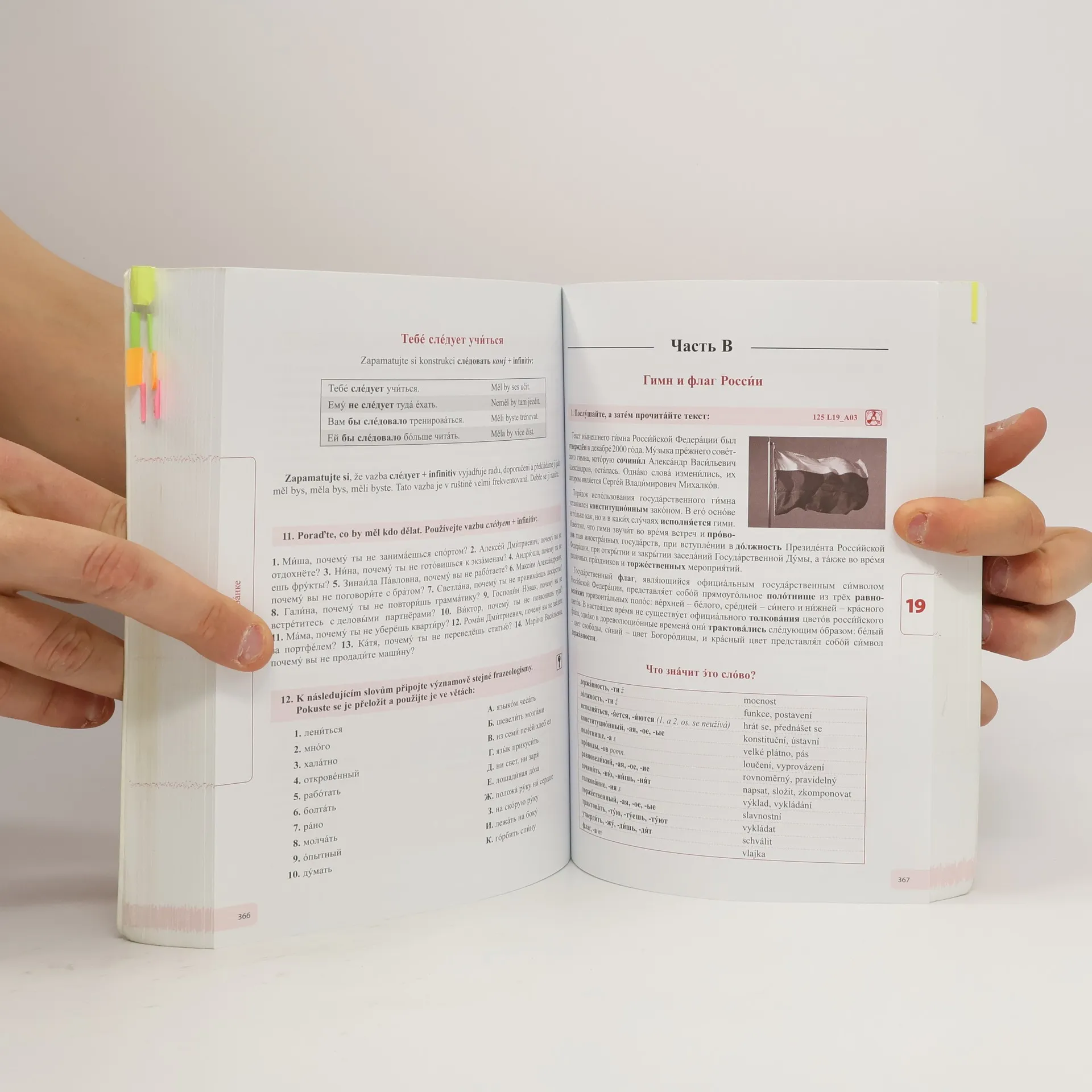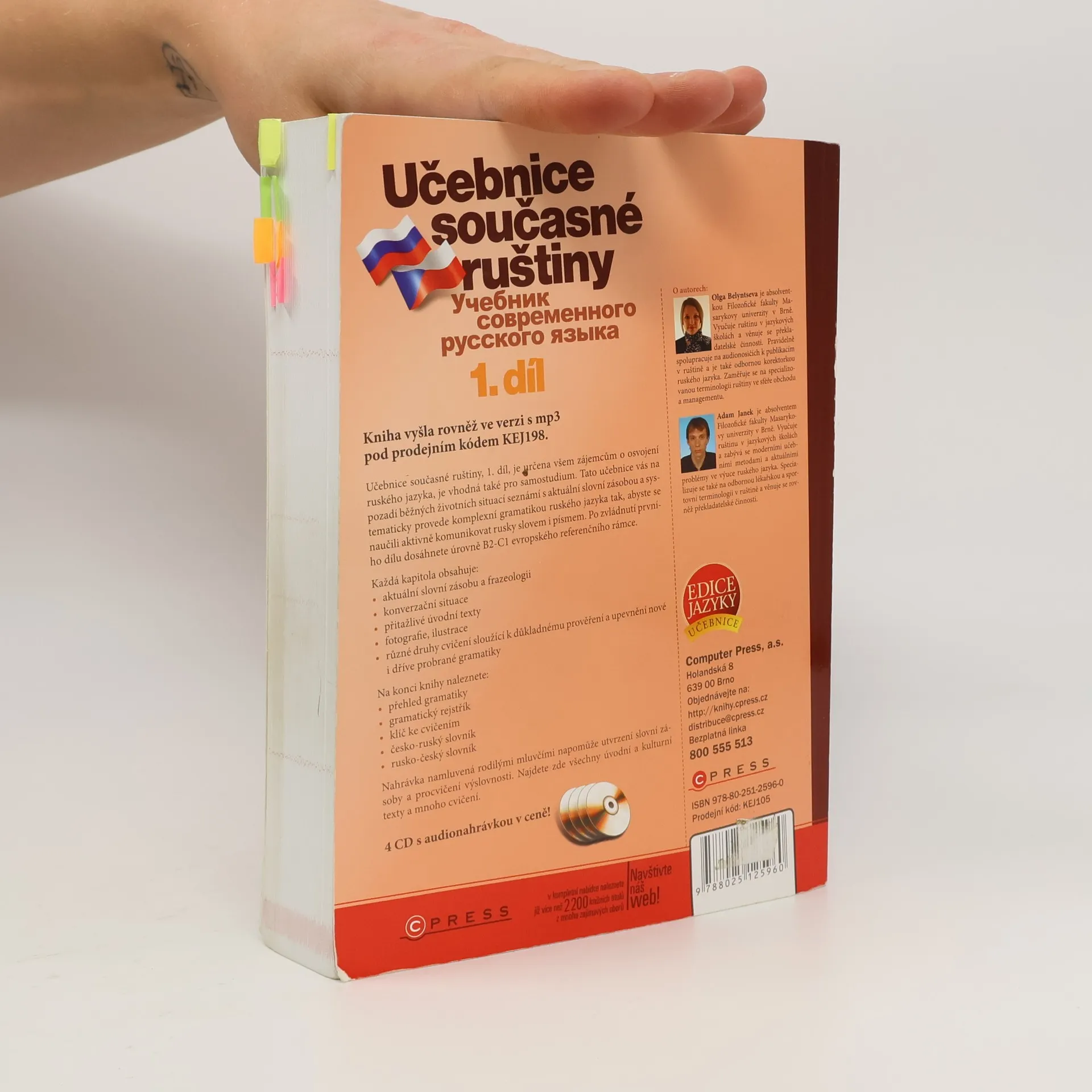 Učebnice současné ruštiny, 1. Tato učebnice vás na pozadí běžných životních situací seznámí s aktuální slovní zásobou a systematicky provede komplexní gramatikou ruského jazyka tak, abyste se naučili aktivně komunikovat rusky slovem i písmem. Po zvládnutí prvního dílu dosáhnete úrovně B2–C1 evropského referenčního rámce.Každá kapitola obsahuje:- aktuální slovní zásobu a frazeologii- konverzační situace- přitažlivé úvodní texty- fotografie, ilustrace- různé druhy cvičení sloužící k důkladnému prověření a upevnění nové i dříve probrané gramatikyNa konci knihy naleznete:- přehled gramatiky- gramatický rejstřík- klíč ke cvičením- česko-ruský slovník- rusko-český slovníkNahrávka namluvená rodilými mluvčími napomůže utvrzení slovní zásoby a procvičení výslovnosti. Najdete zde všechny úvodní a kulturní texty a mnoho cvičení.