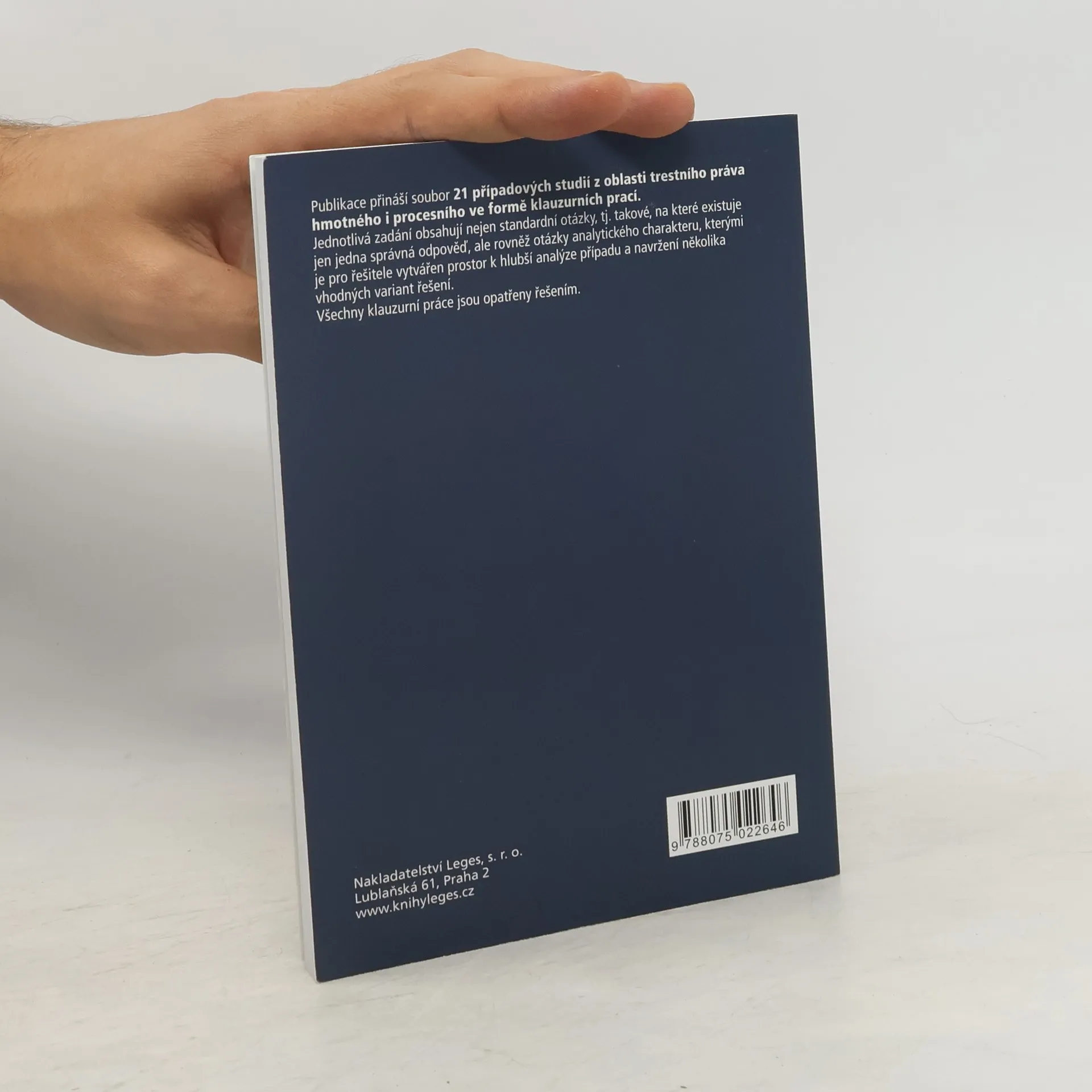 Publikace přináší soubor 21 případových studií z oblasti trestního práva hmotného i procesního ve formě klauzurních prací. Ve druhém vydání byly studie aktualizovány podle právní úpravy k 1. 1. 2023. Jednotlivá zadání obsahují nejen standardní otázky, na které existuje jen jedna správná odpověď, ale rovněž otázky analytického charakteru, kterými je pro řešitele vytvářen prostor k hlubší analýze případu a navržení několika vhodných variant řešení. Všechny klauzurní práce jsou opatřeny řešením. Publikace je určena především studentům právnických fakult, lze ji však využít i k přípravě na advokátní či justiční zkoušky.